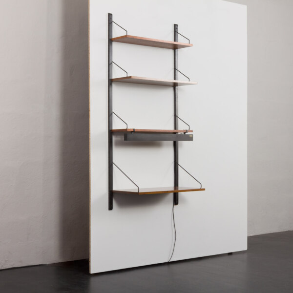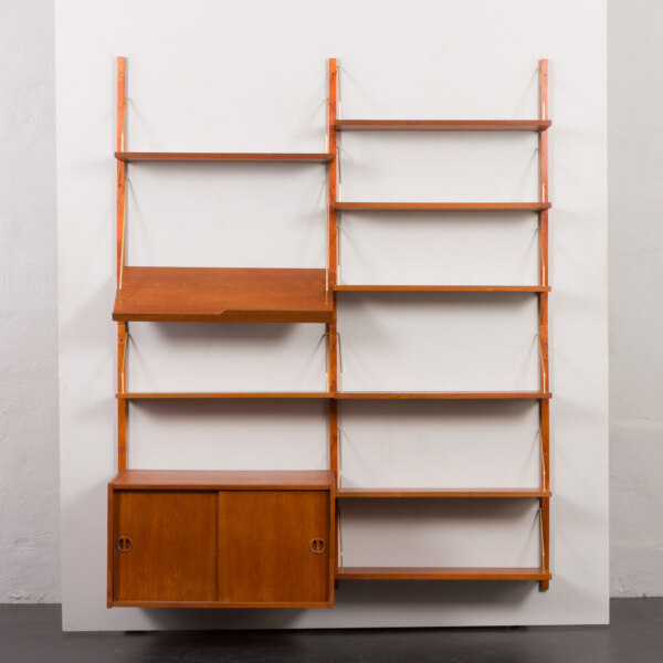 • Poul Cadovius teak home office wall unit with drop front desk and 3 shelves for Cado, Denmark  1960s