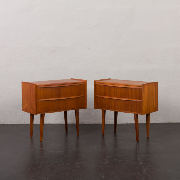 • Pair of Danish vintage teak nightstands with 2 drawers, 1960s