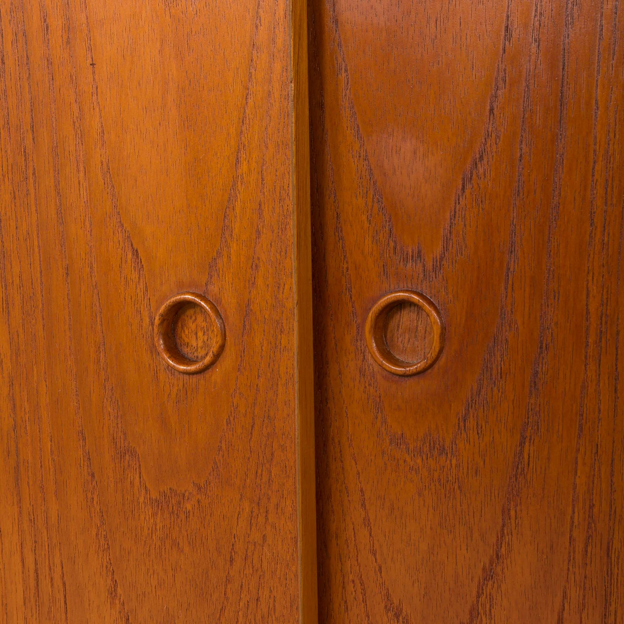 The unit is after a full renovation with a Danish Oil finish. All interiors are clean. Doors and drawers slide smoothly. The original manufacturer’s label is preserved.