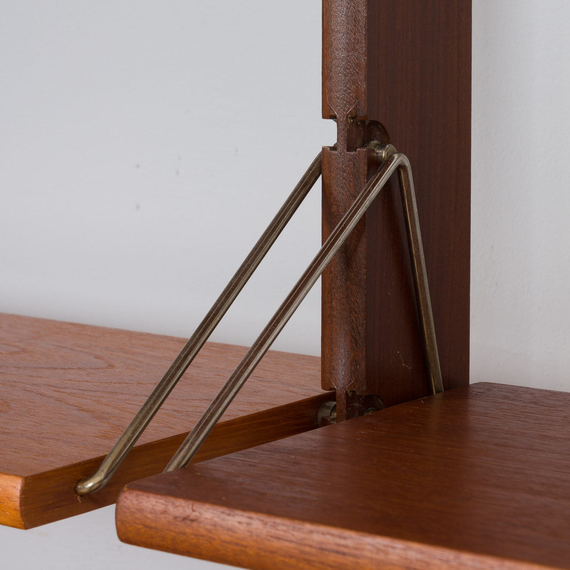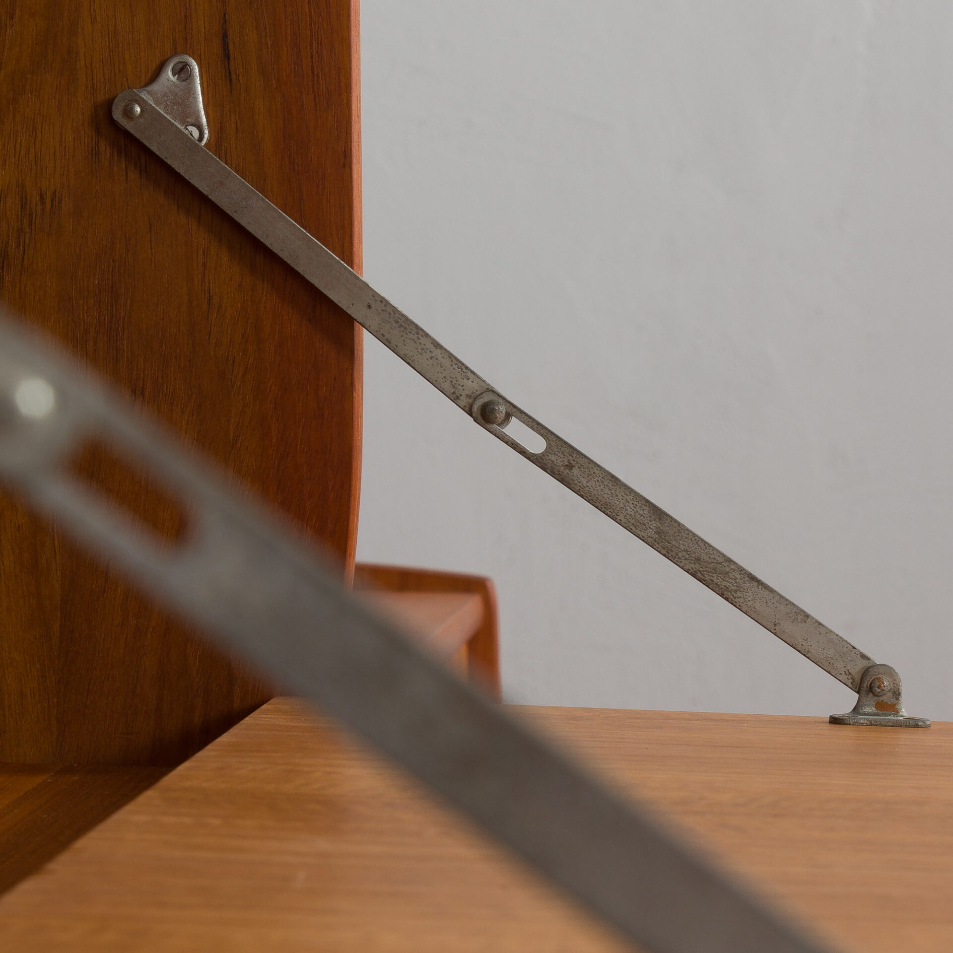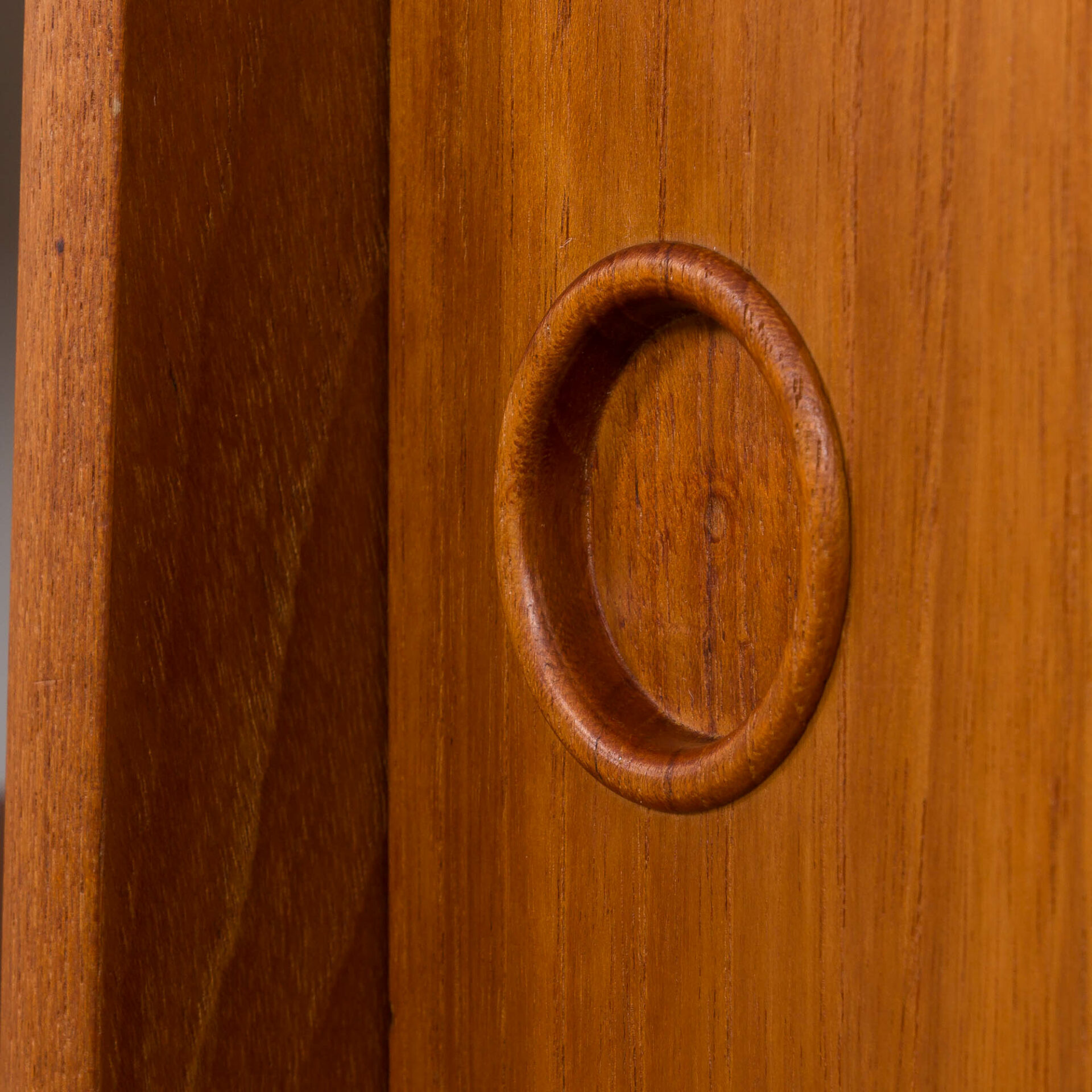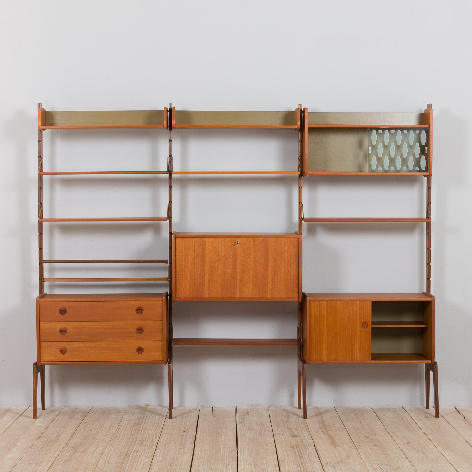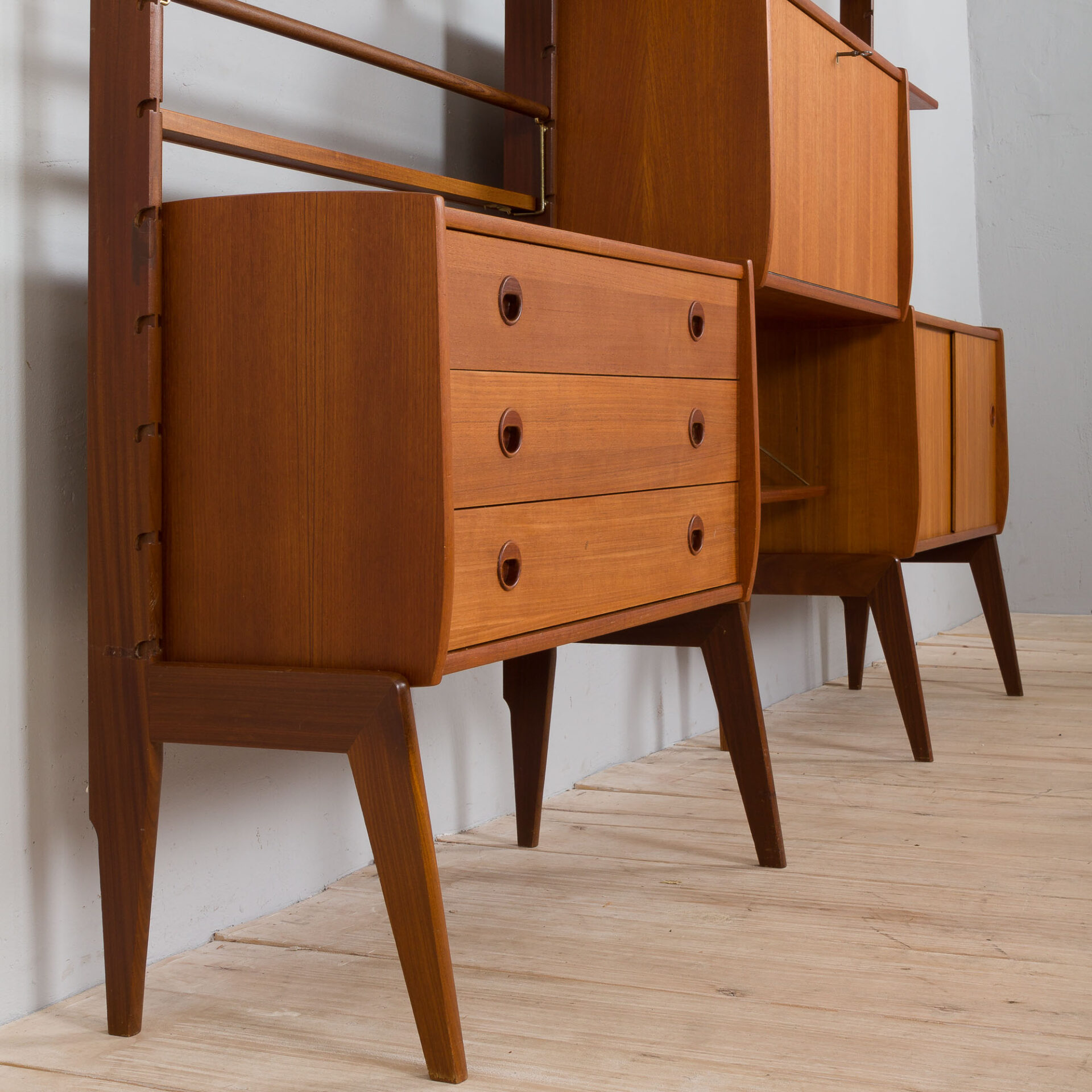 Truly Scandinavian modern free-standing wall unit in teak model Ergo designed by John Texmon and Einar Blindheim for Blindheim Mobelfabrikk and made in Norway in the 1960s. The slightly curved edges make a warm impression, and sculptural rails create an elegant and grand-looking statement.