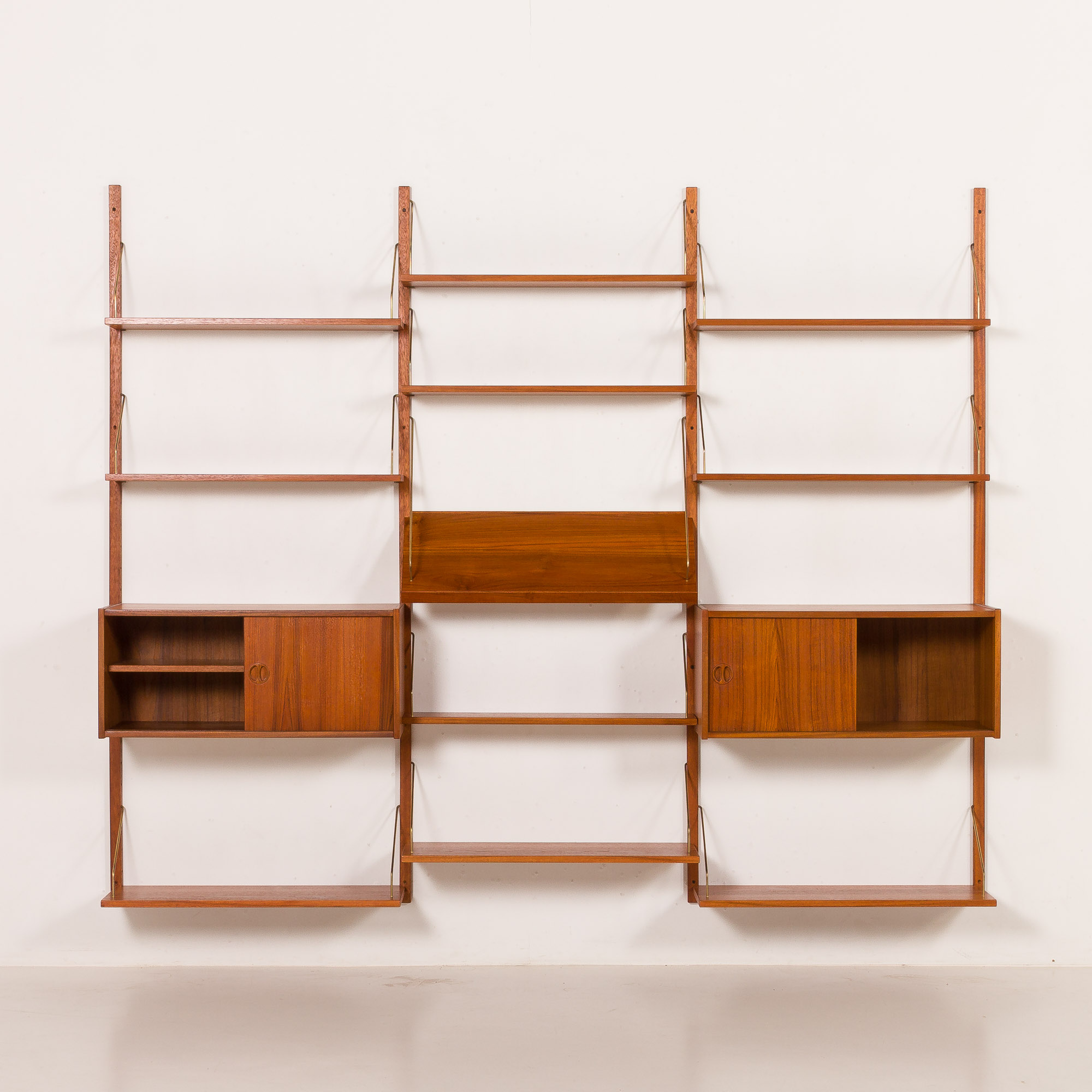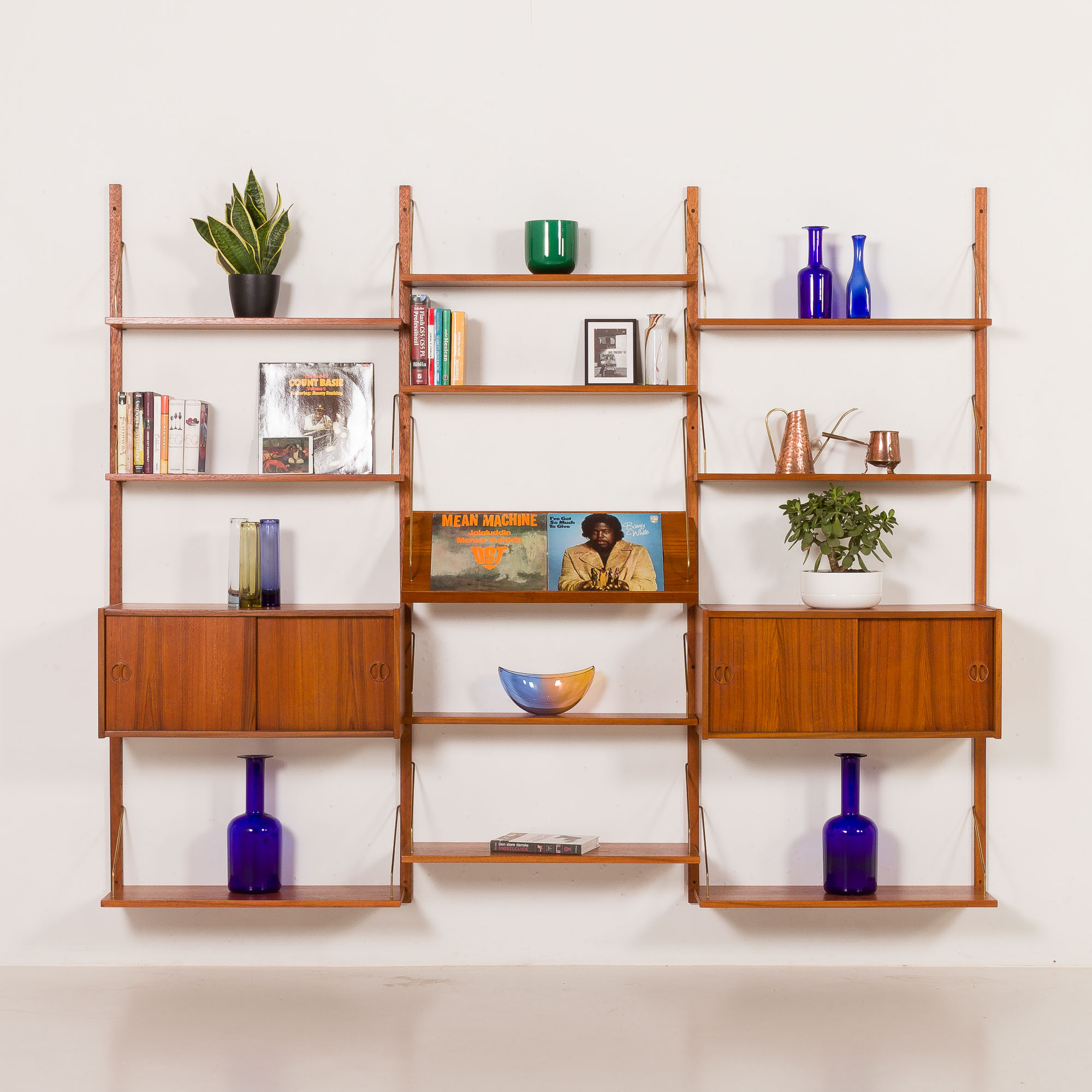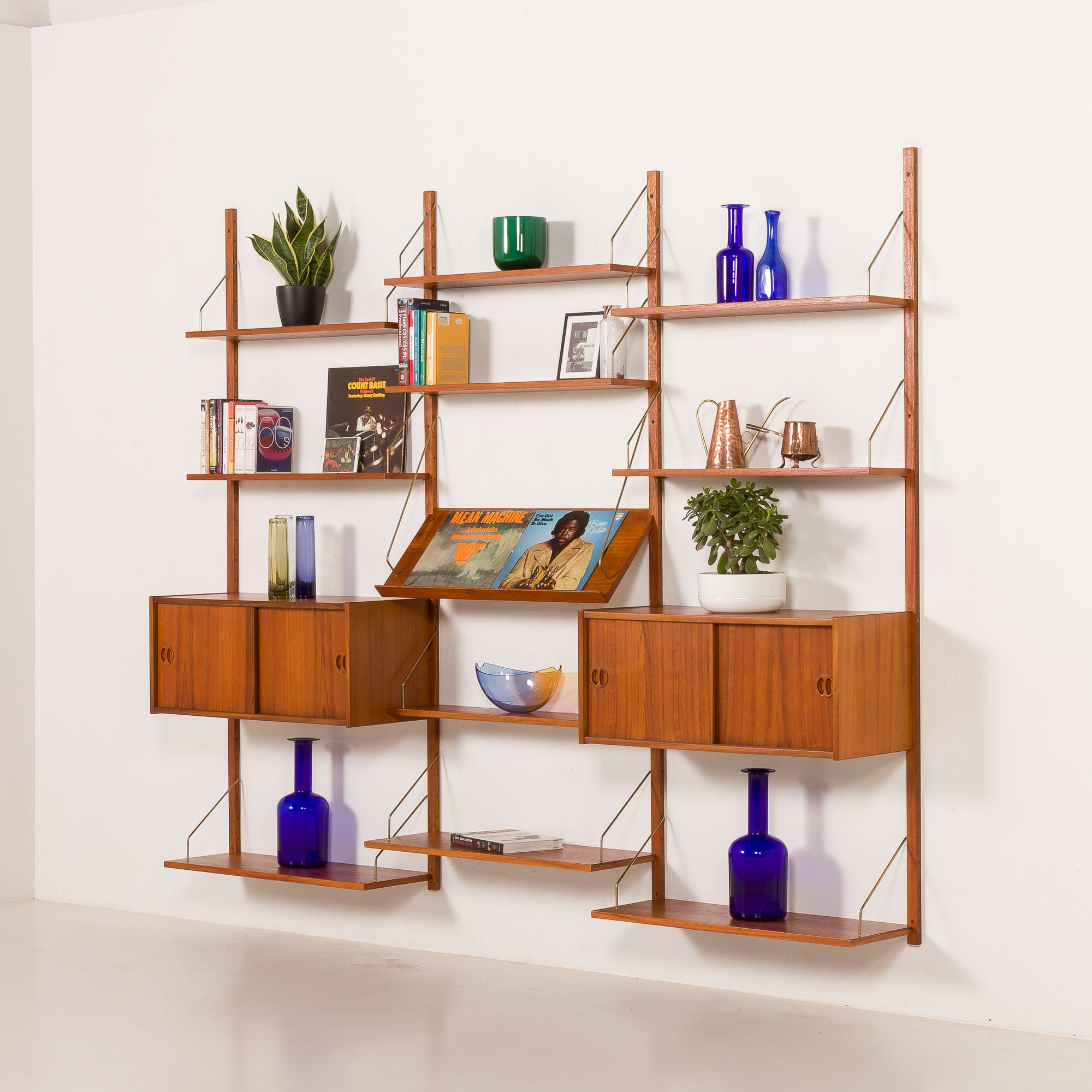 Ce meuble mural à deux baies du milieu du siècle rappelle le mobilier modulaire emblématique des années 1960 conçu par Poul Cadovius. Il provient du Danemark et date de la même époque. Il présente des caractéristiques très similaires.