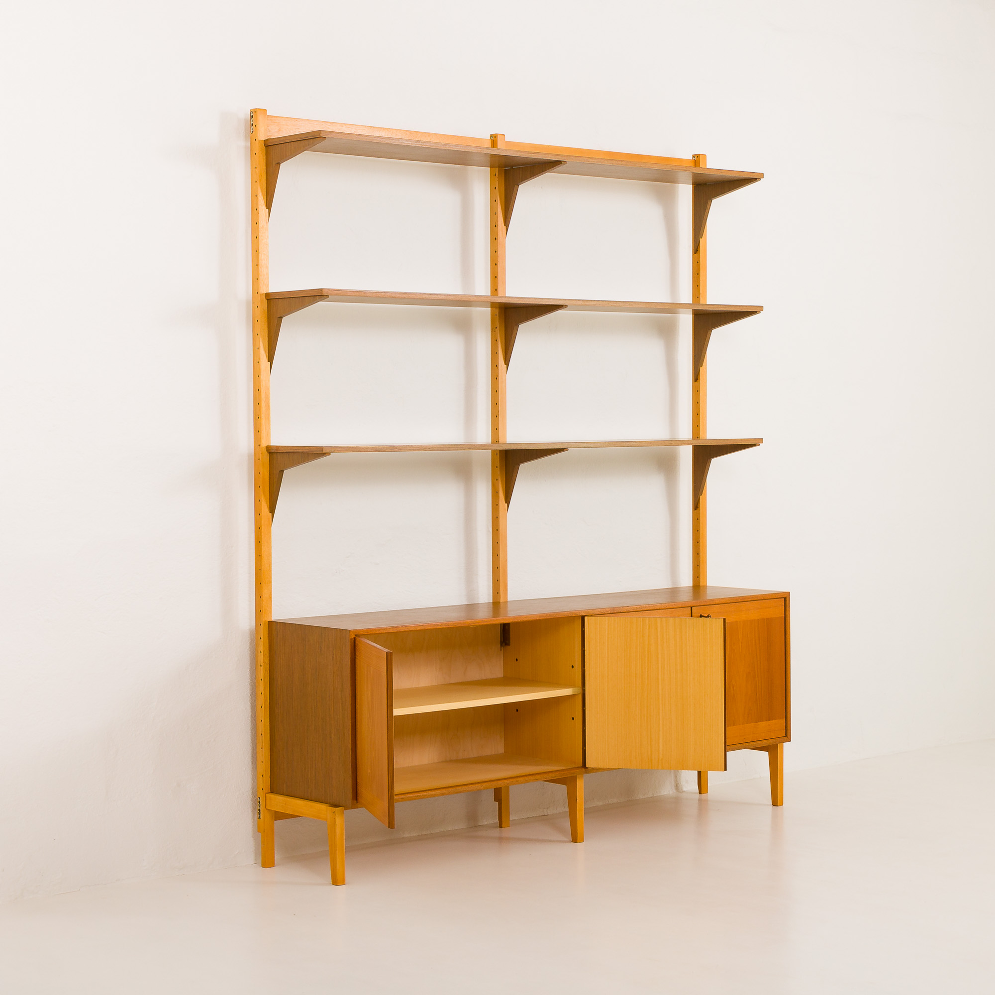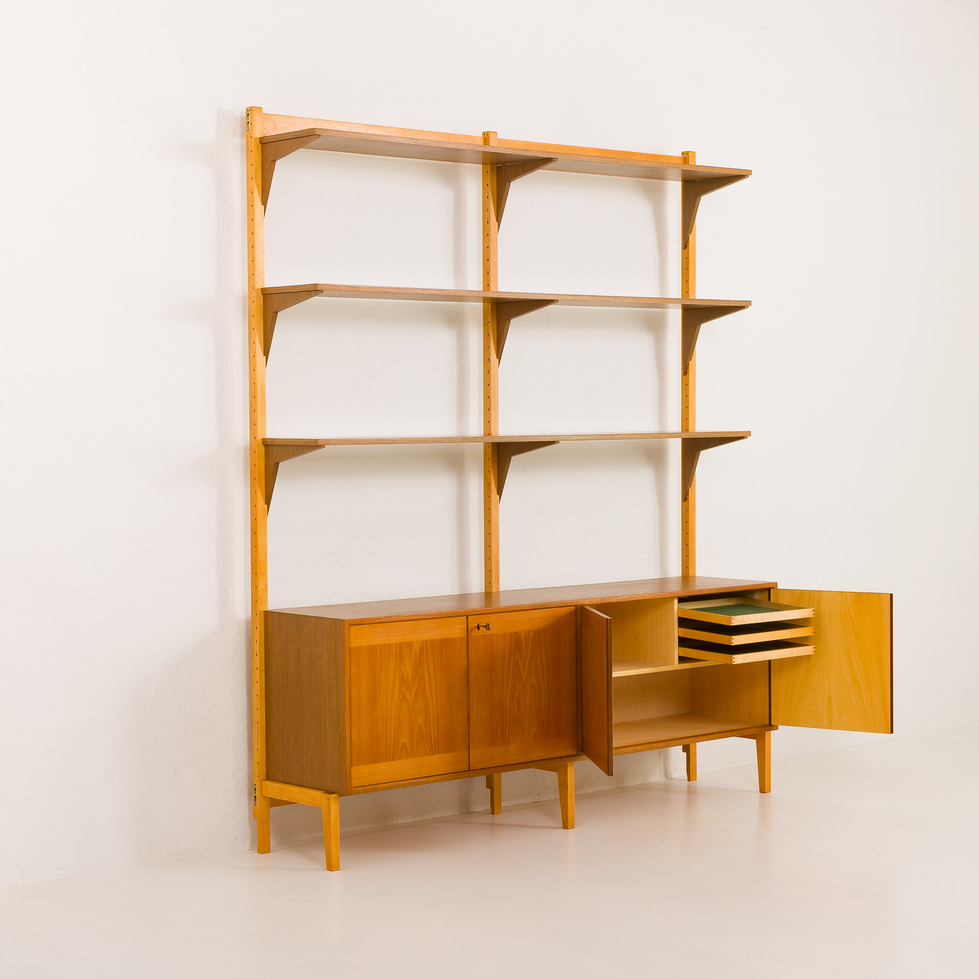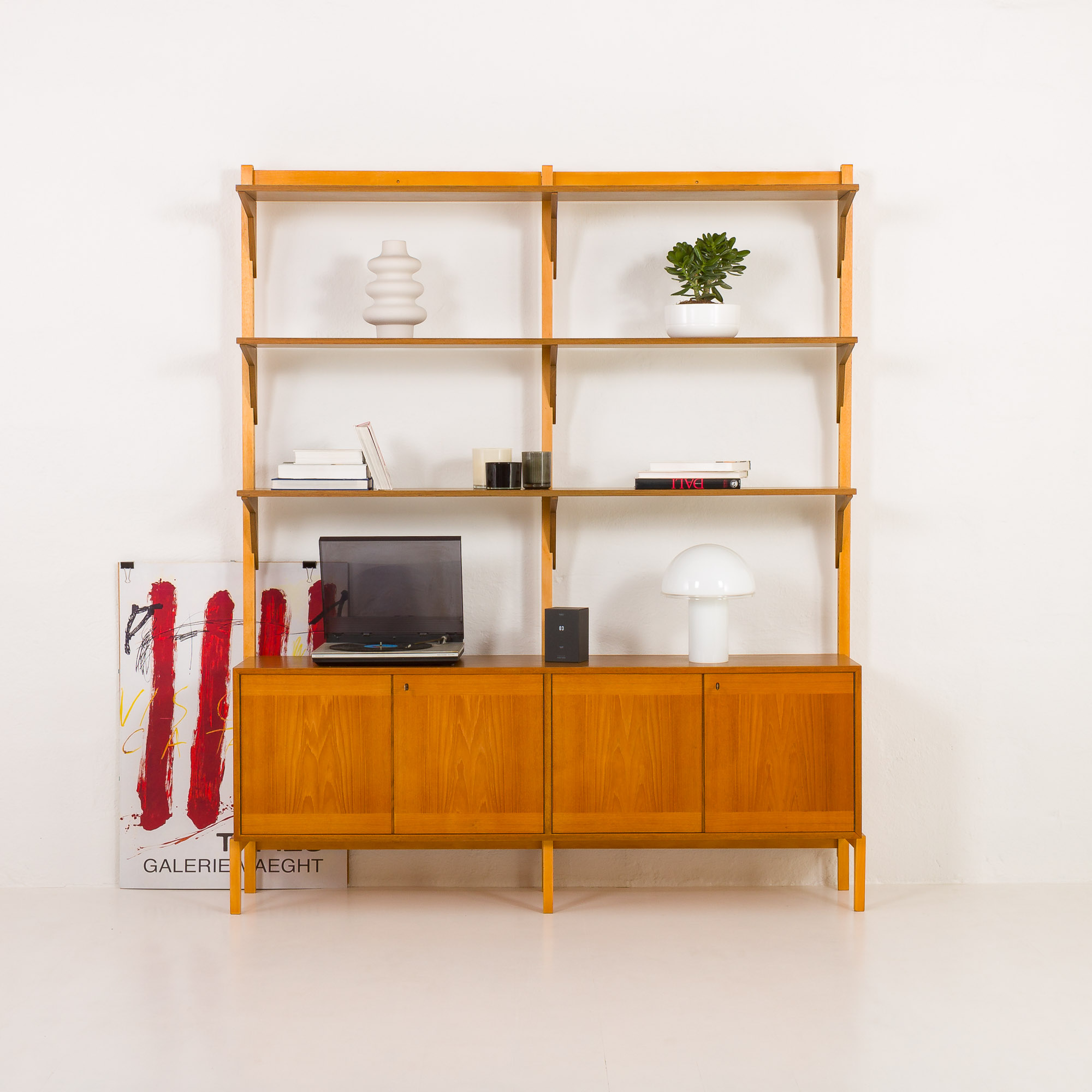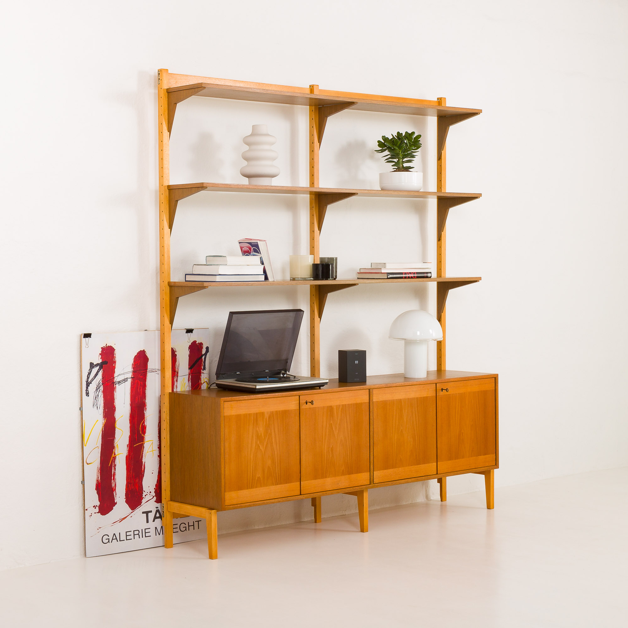 Système mural scandinave du milieu du siècle avec un buffet et 3 grandes étagères, années 1970