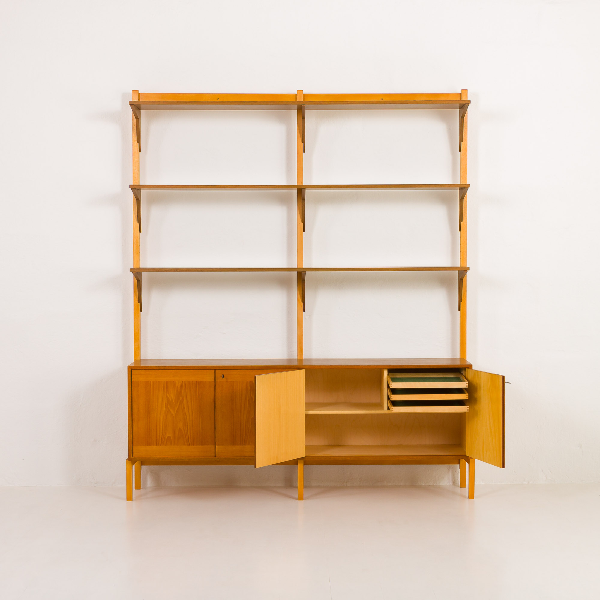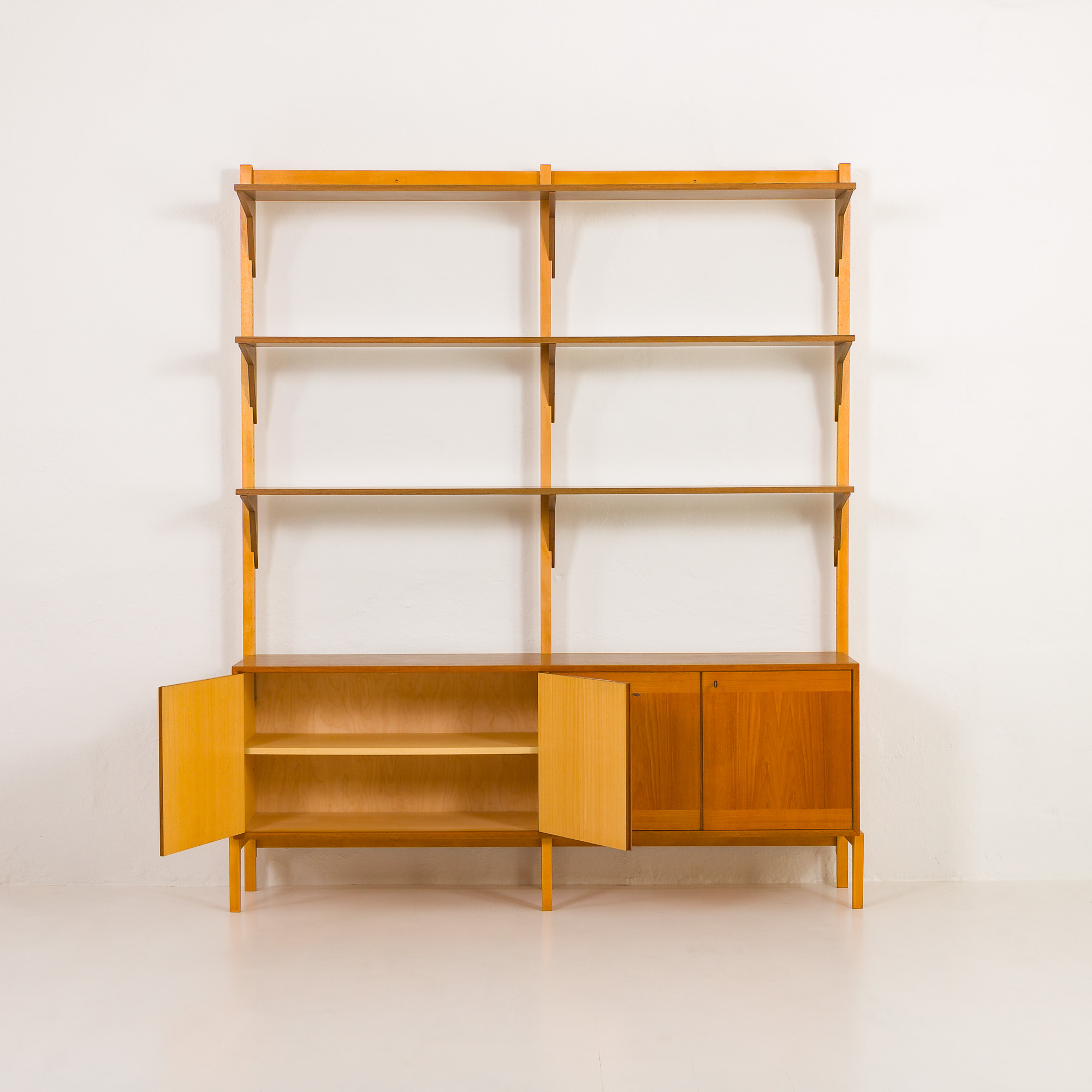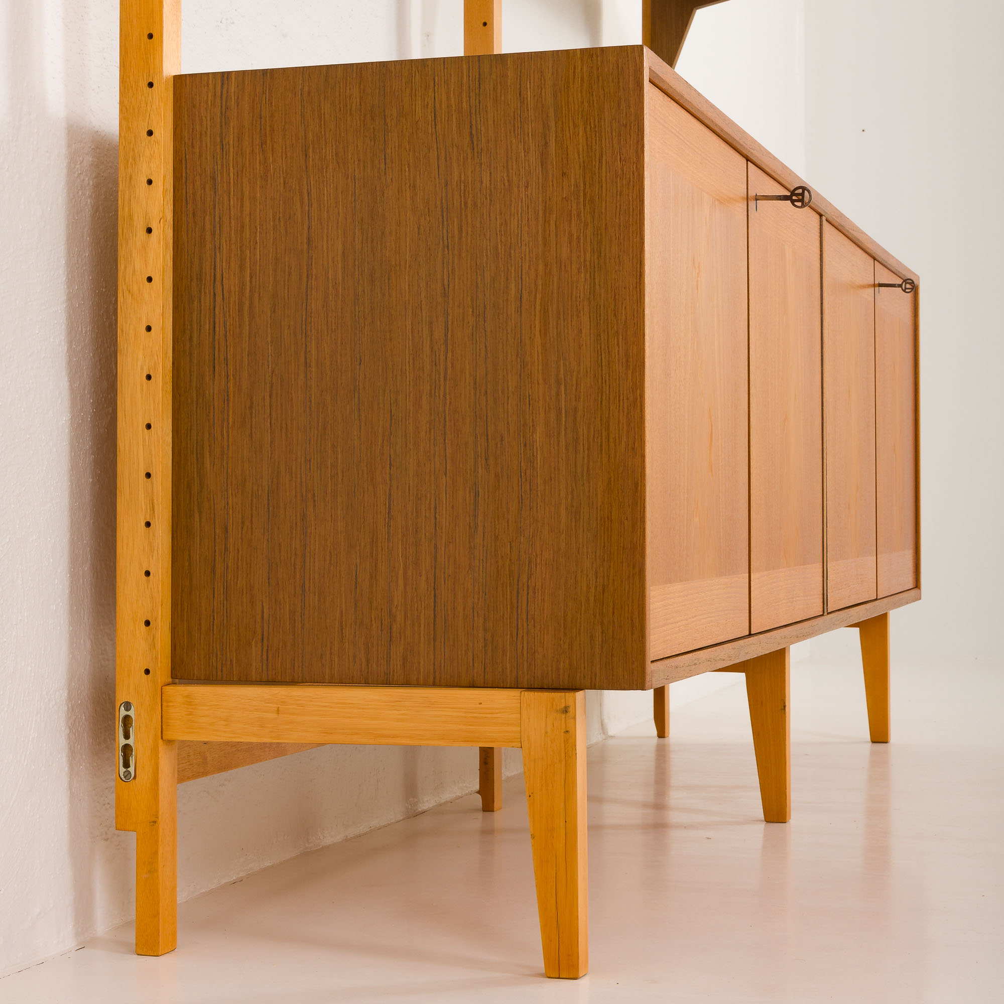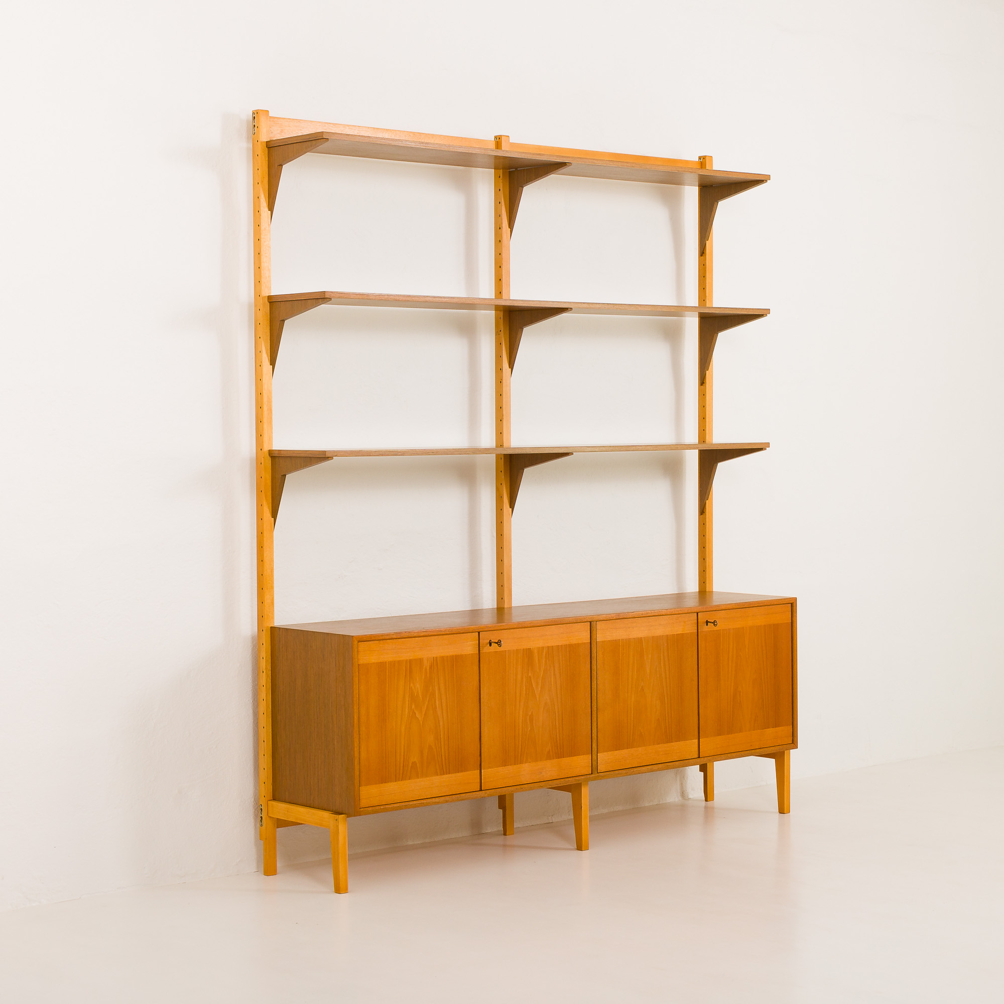 Système mural scandinave du milieu du siècle avec un buffet et 3 grandes étagères, années 1970