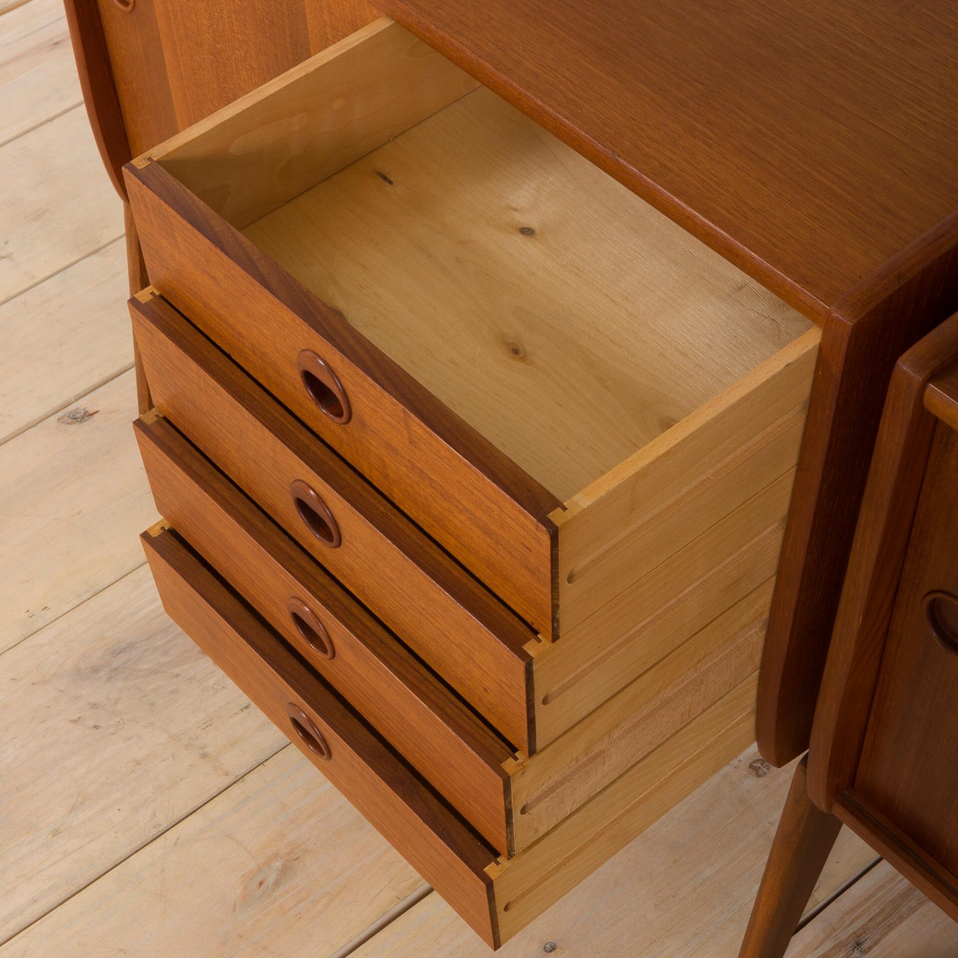 Meuble mural avec console en teck de Kai Kristiansen pour FM Mobler, 1960s