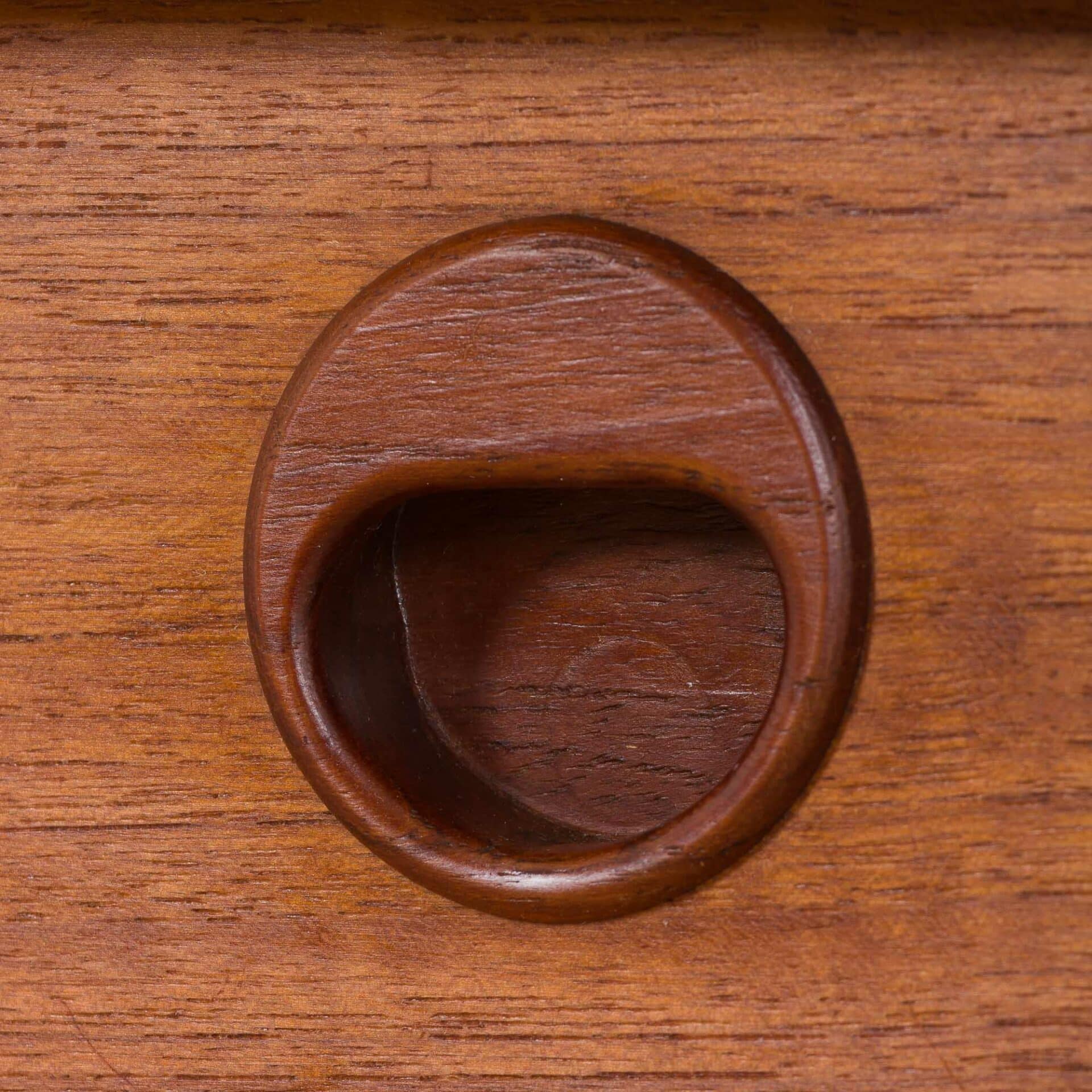 Unité murale scandinave moderne du milieu du siècle en teck, modèle "Ergo" conçu par John Texmon pour Blindheim Mobelfabrikk, fabriqué en Norvège dans les années 1960. Il s'agit d'une version autonome à deux baies avec commode et armoires. Les bords légèrement courbés font une impression chaleureuse, et les rails sculptés créent une déclaration élégante et grandiose. Dans l'ensemble, il est en très bon état vintage, surtout après l'avoir nettoyé et recouvert d'une couche supplémentaire d'huile danoise.