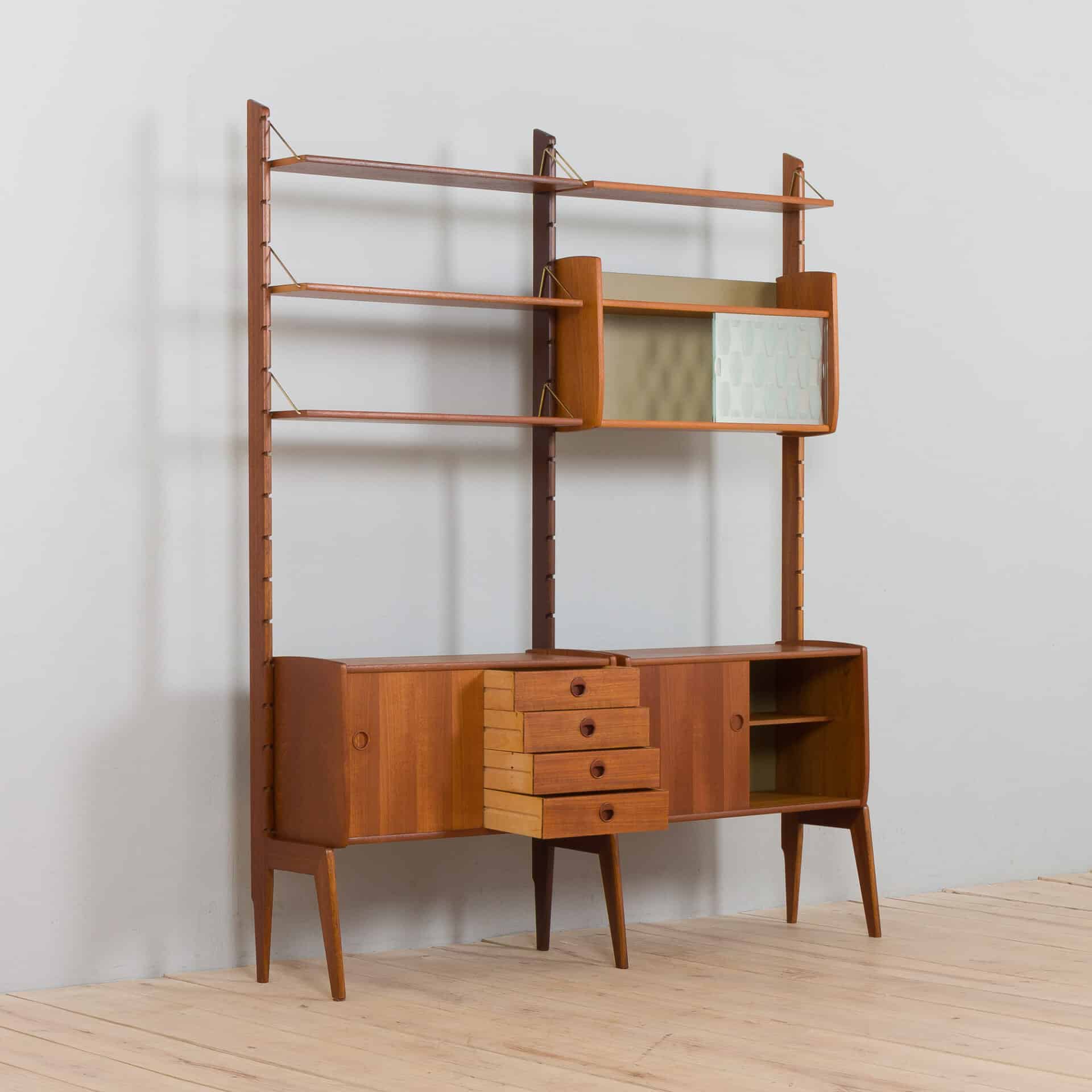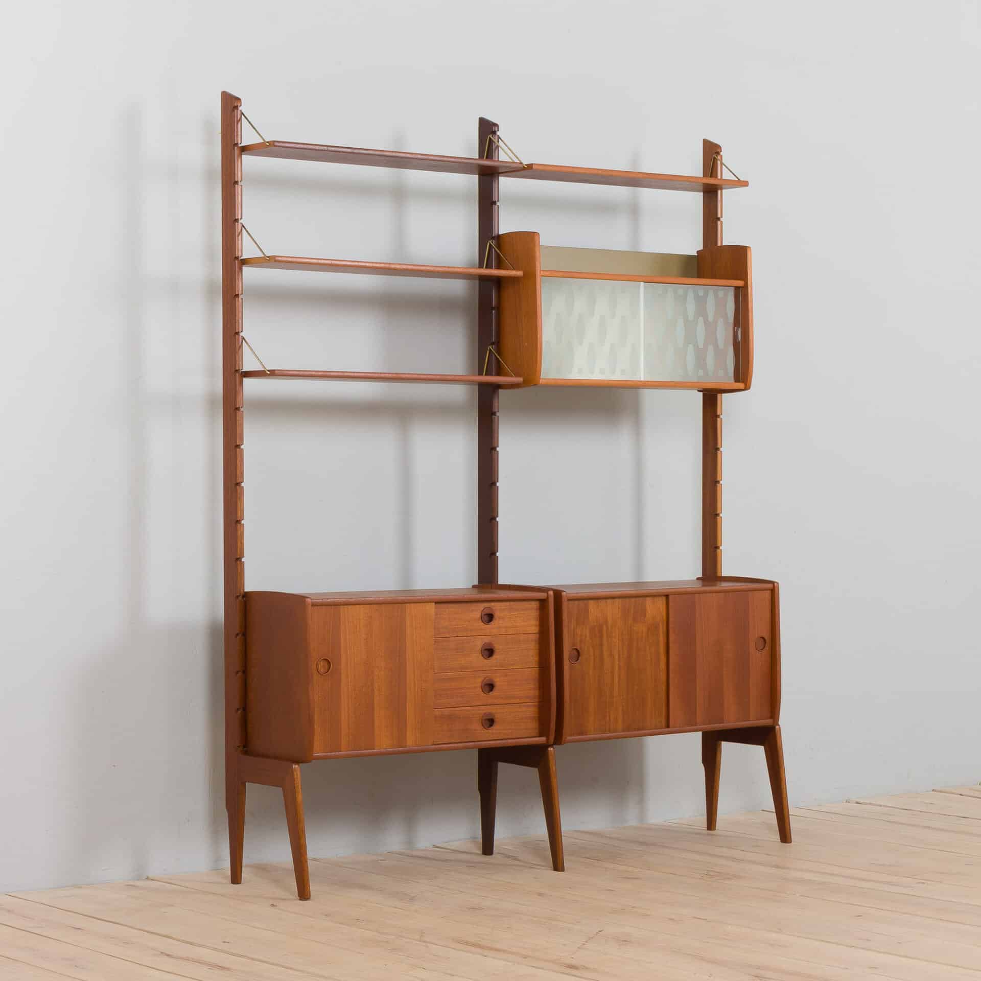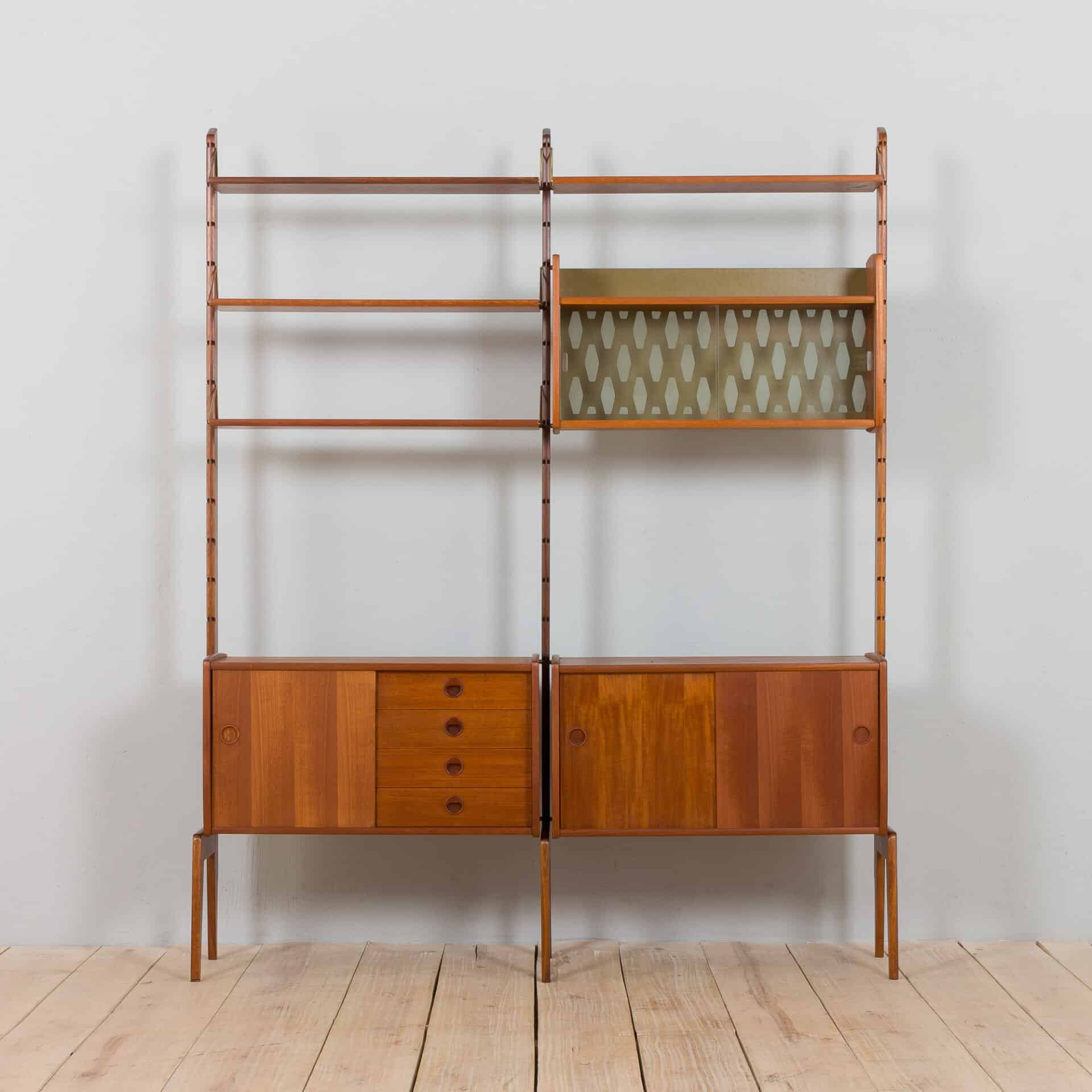 Unité murale scandinave ergo à deux baies avec étagères modulaires de John Texmon pour Blindheim Møbelfabrikk, années 1960