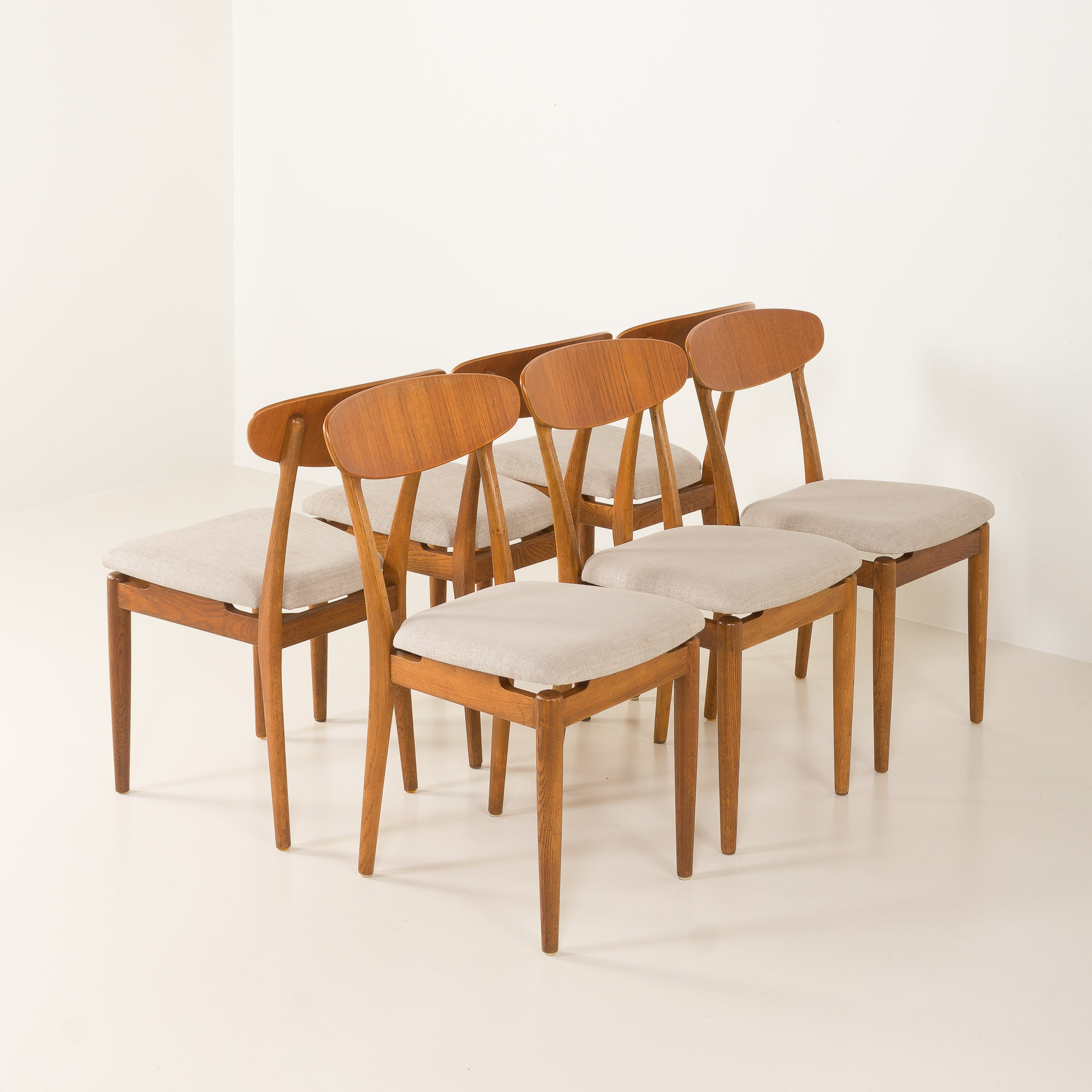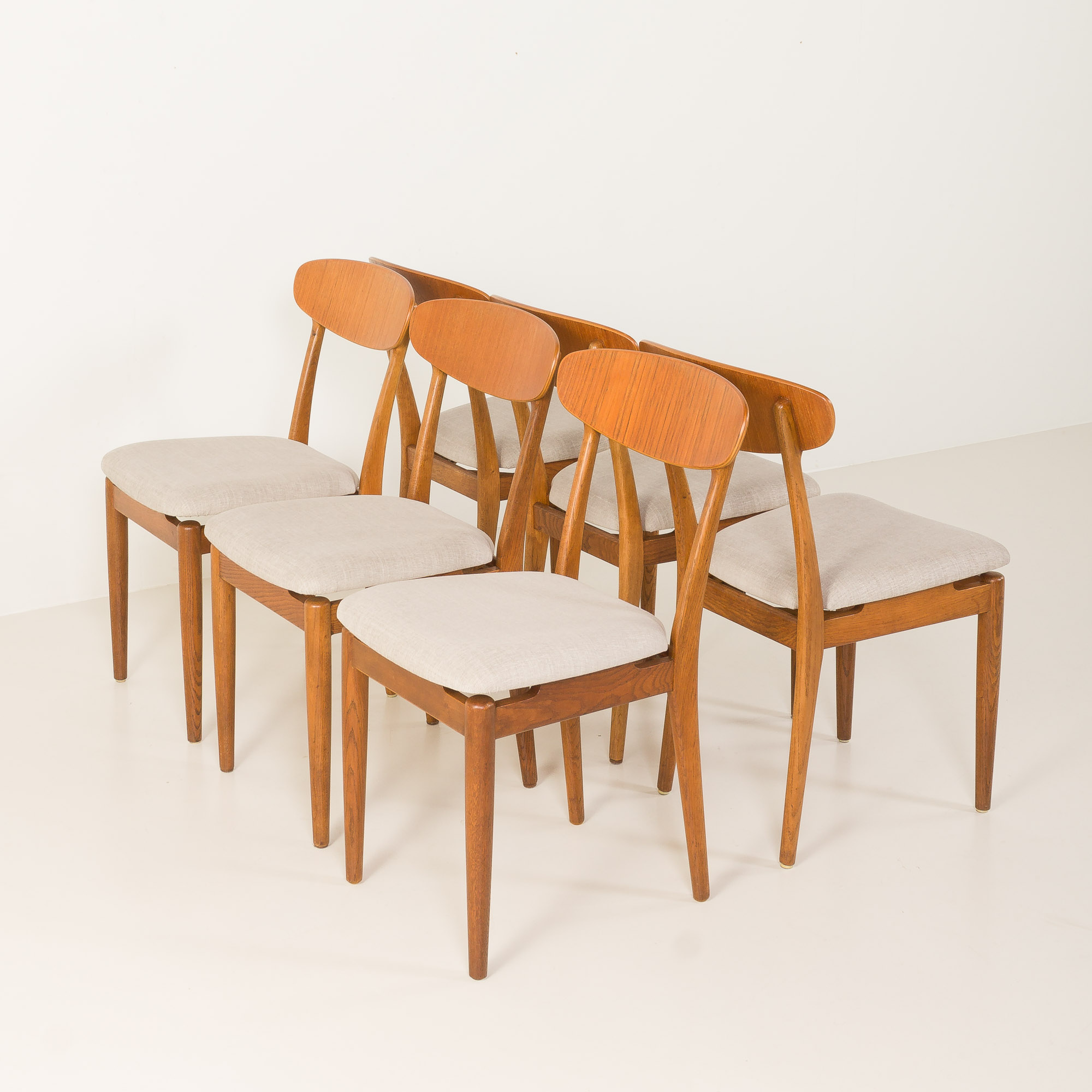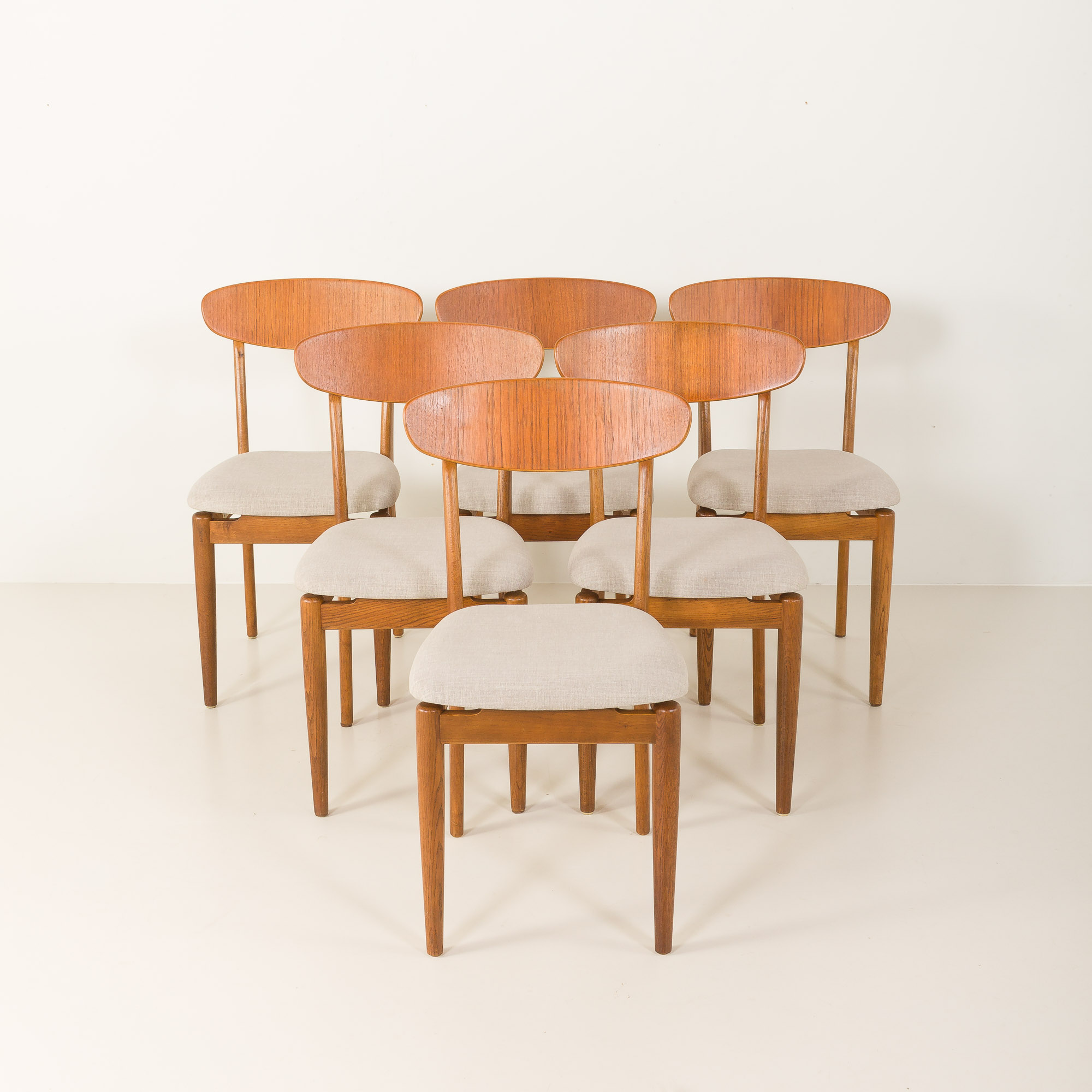 Set of 6 Danish mid-century chairs in teak and oak, 1960s