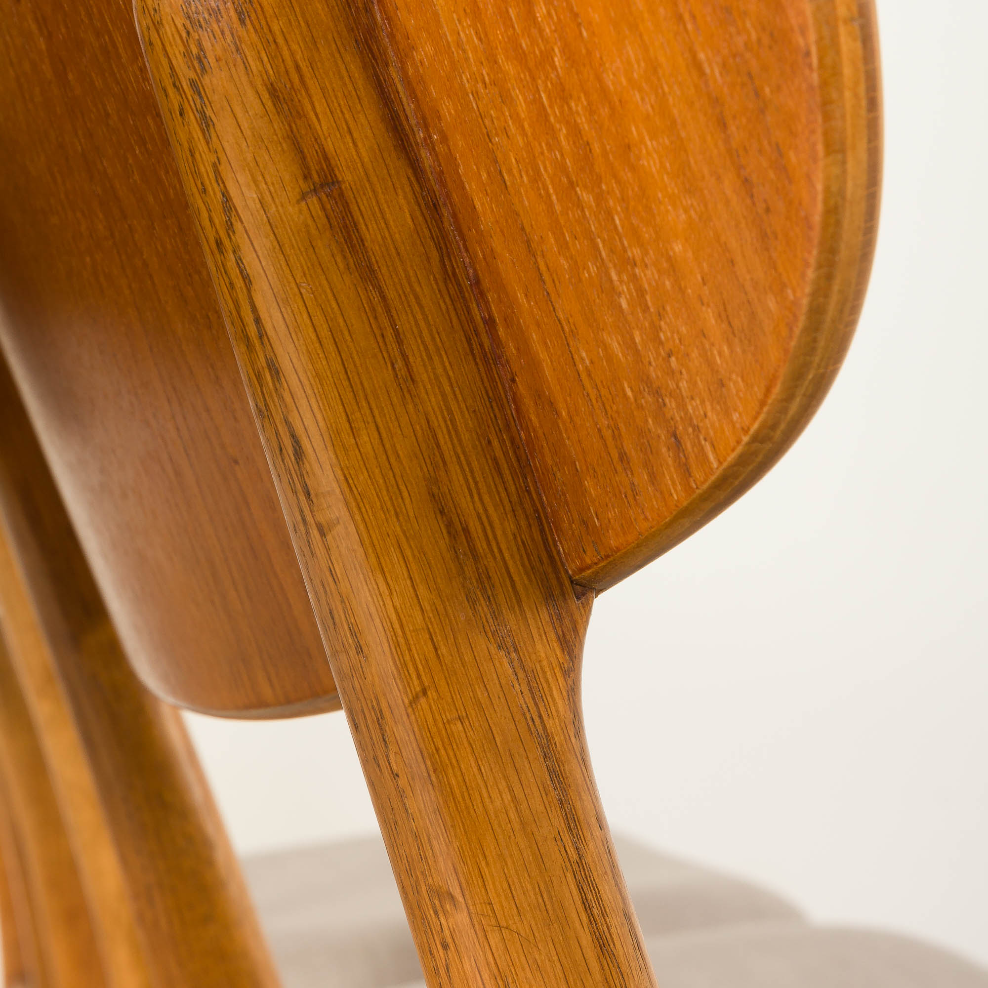 Made from solid oak with backrests veneered in teak. The chairs feature meticulously crafted frames; the solid wood has been masterfully carved and joined. The entire wooden construction is built to last for decades, providing comfortable seating even during long dinners.