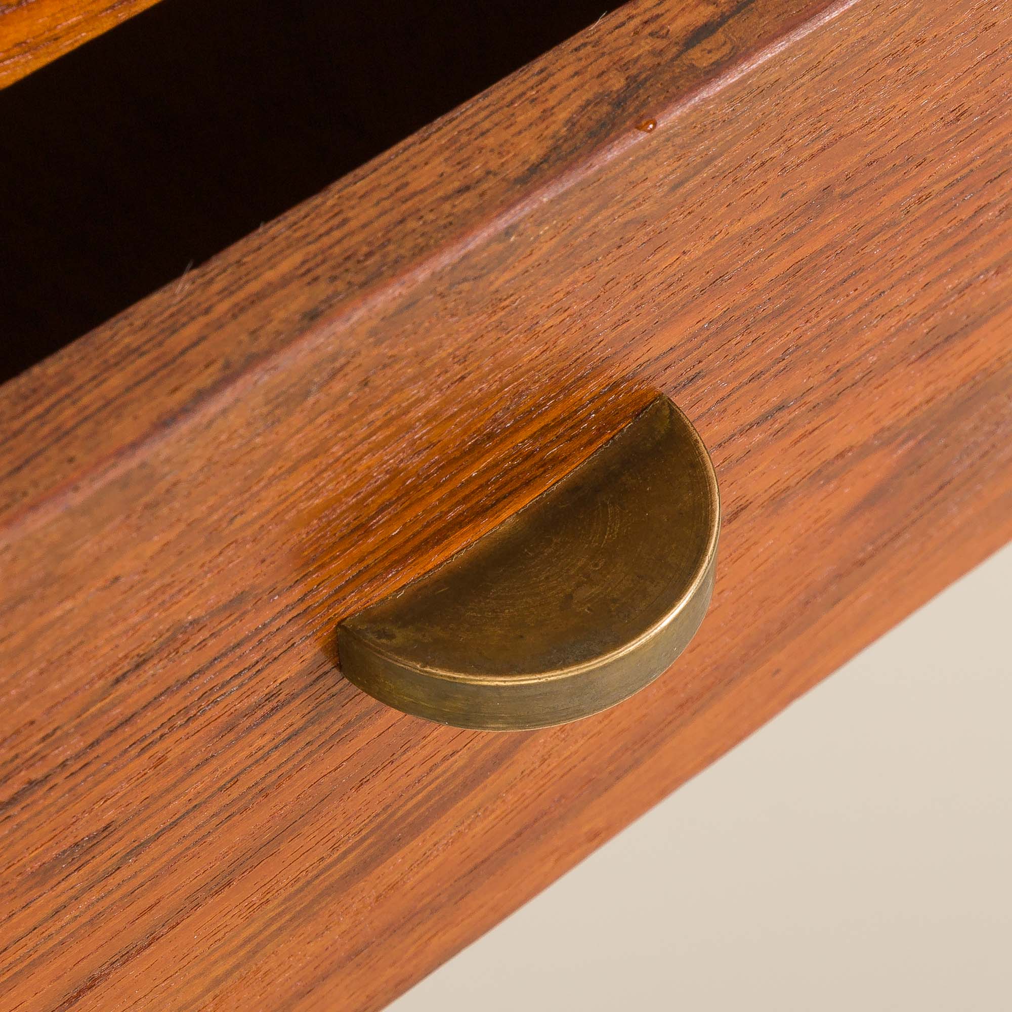 The compact desk or a console makes the set ideal as a cozy working place for a home office or storing essentials in an entryway. Solid brass handles add both stylish look and longevity. Similar handles have been often seen in Cadovius early designs from the 1940s and 1950s
