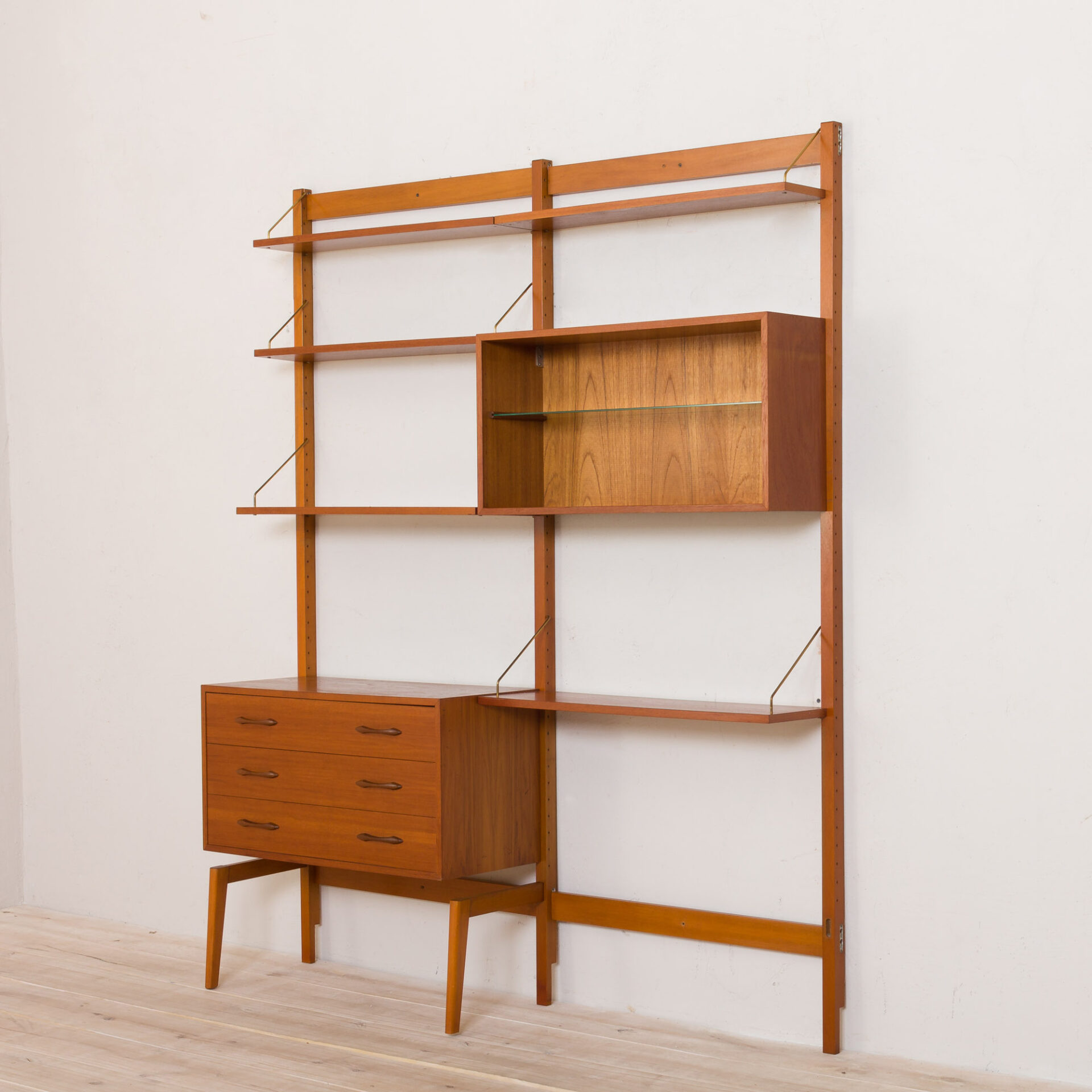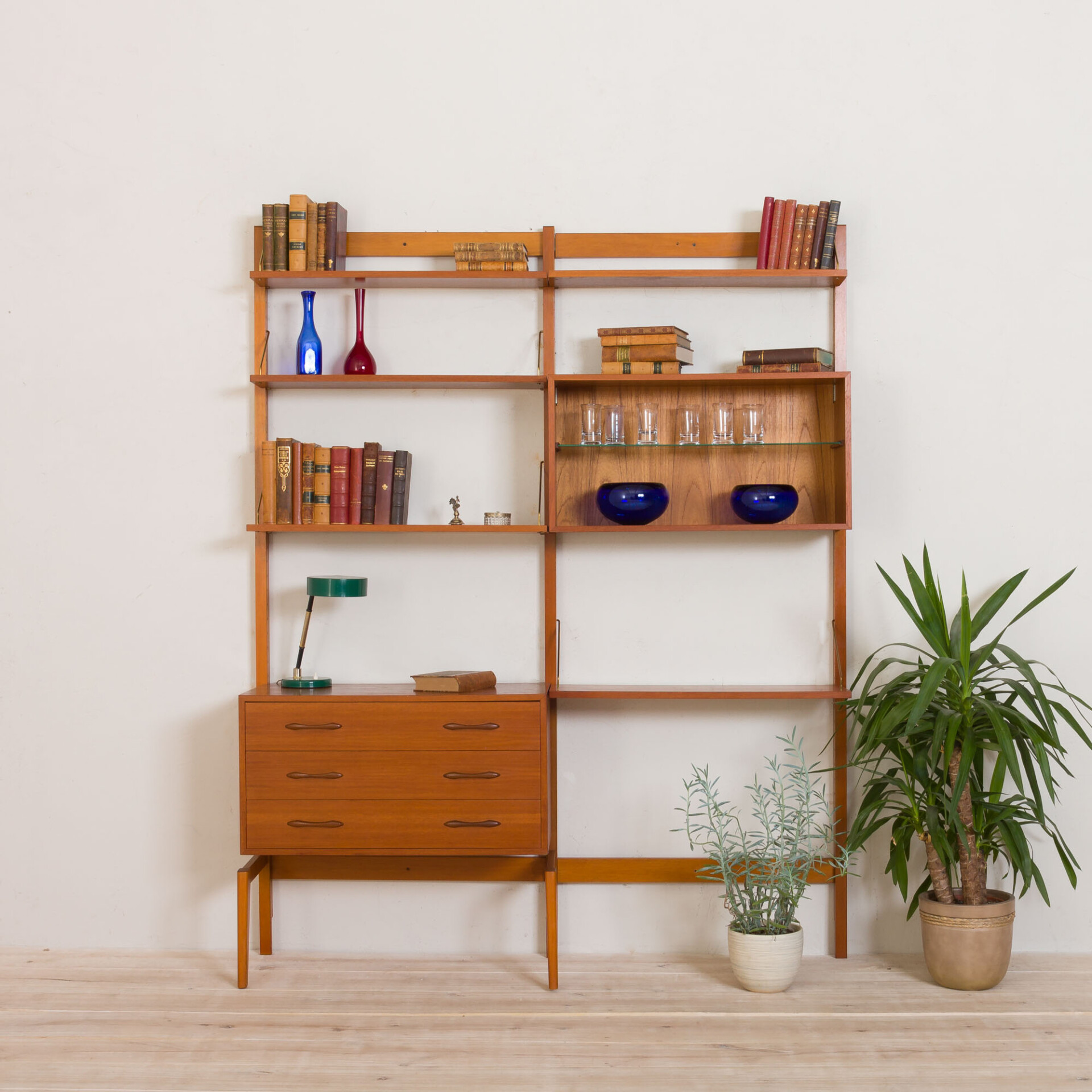 Meuble mural danois en teck de style Cadovius, milieu du XXe siècle, années 1960