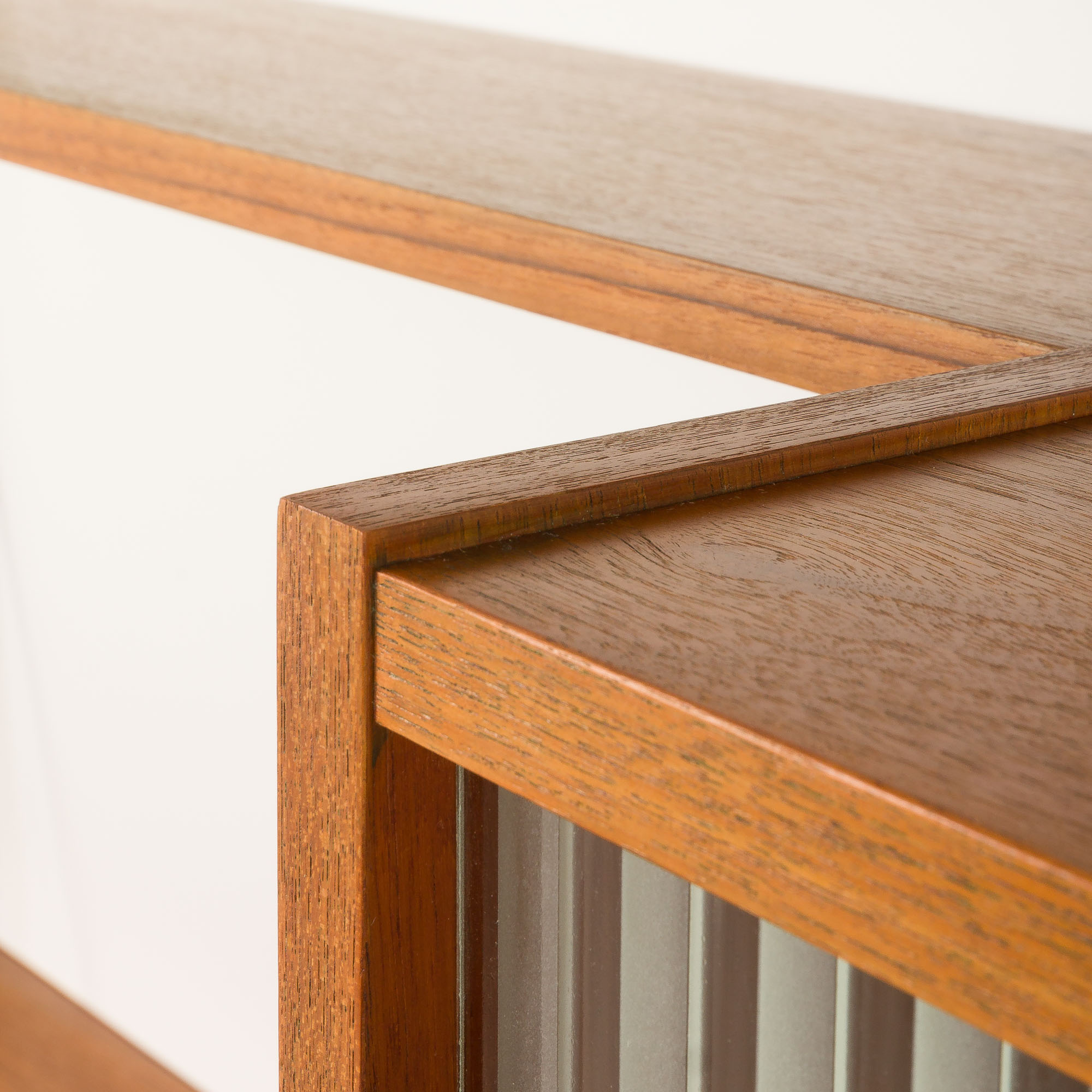 The unit has been fully renovated. The wood has been stained to match the color ideally and treated with Danish oil to enhance its natural beauty. The producer’s sticker, located inside the cabinet, confirms the authenticity of the furniture’s origin.