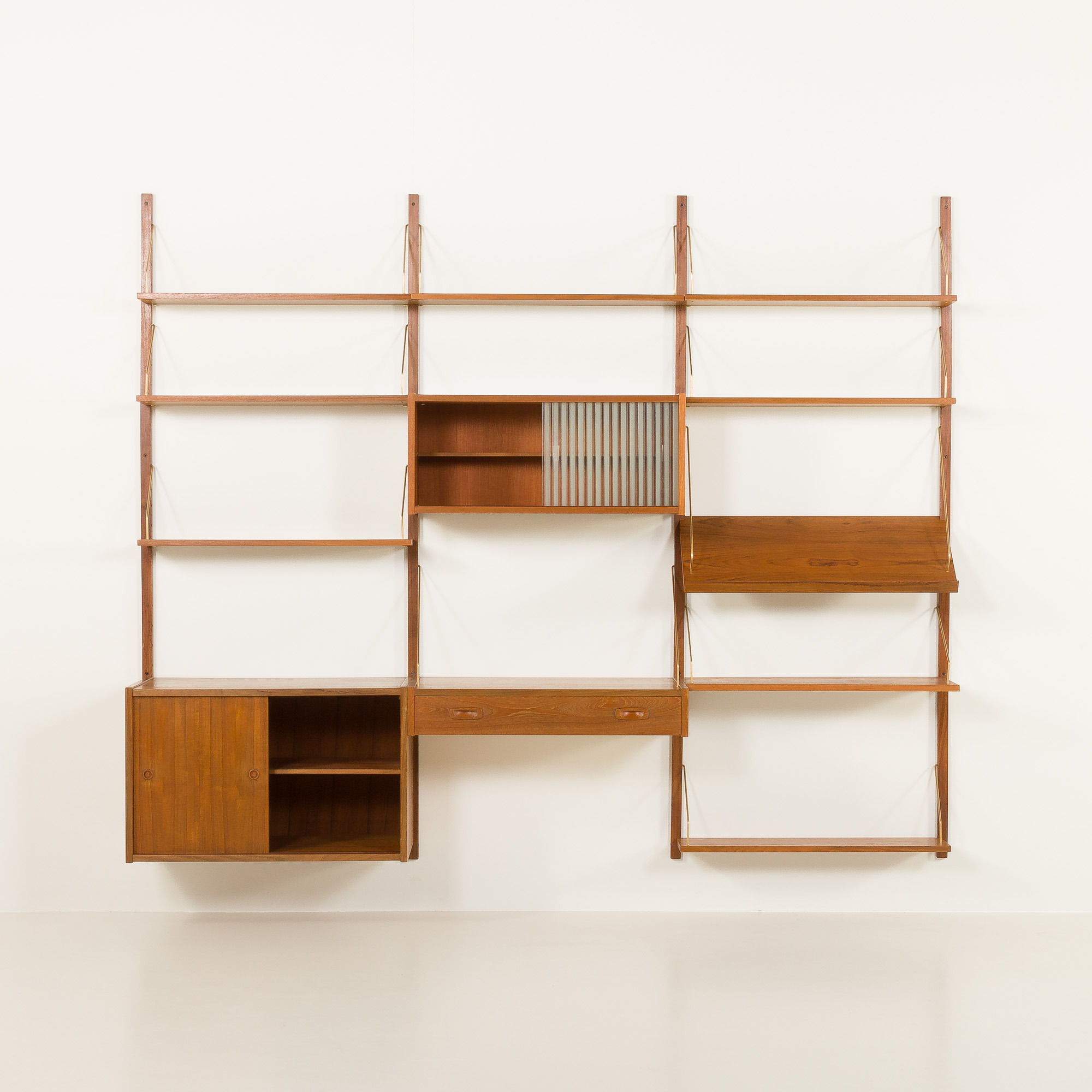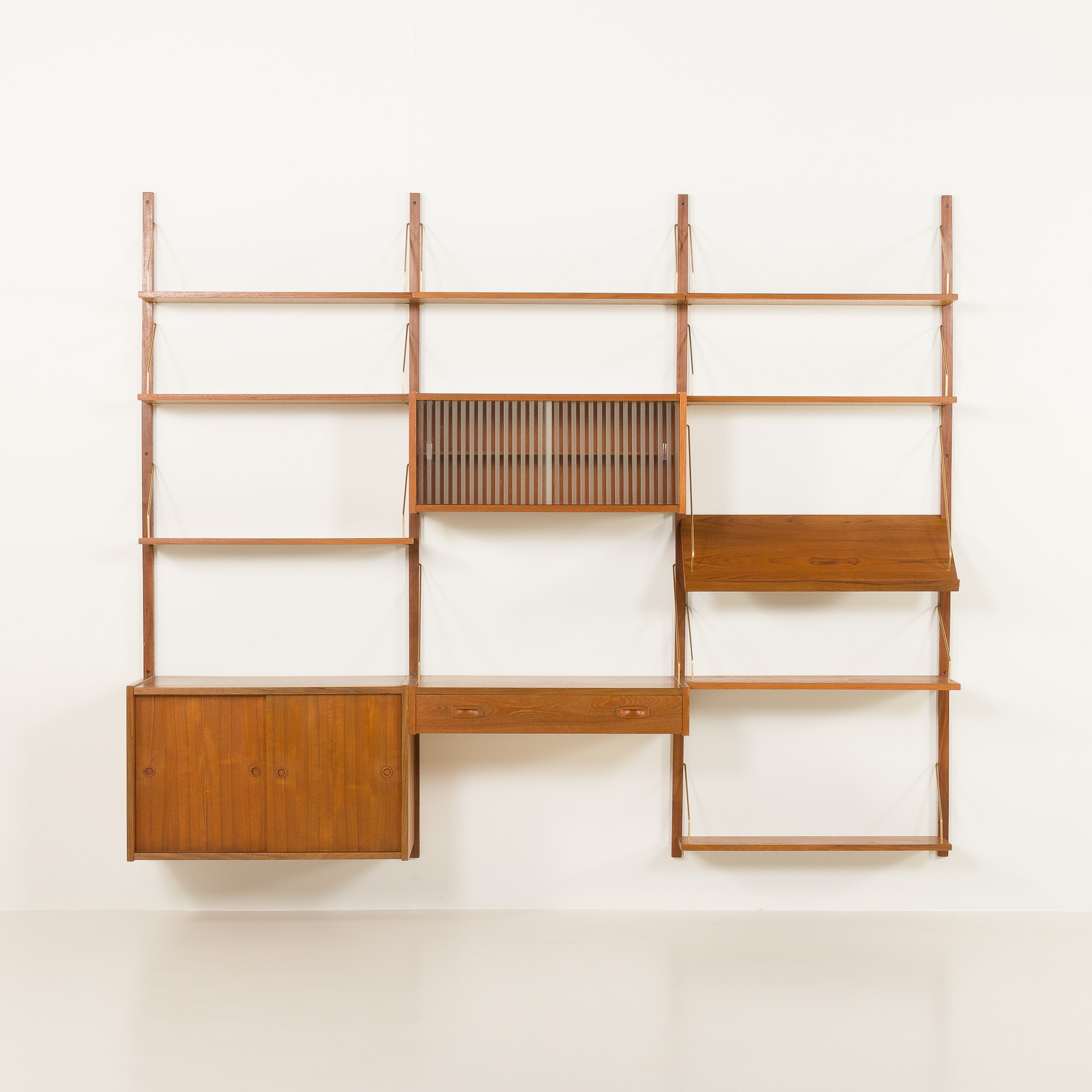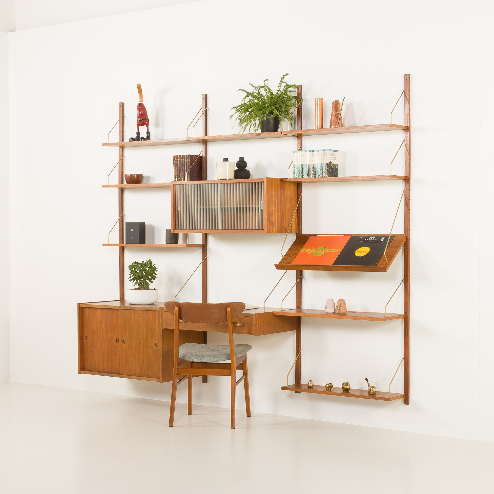 Scandinavian teak wall unit with a desk by Preben Sorensen for PS systems Randers