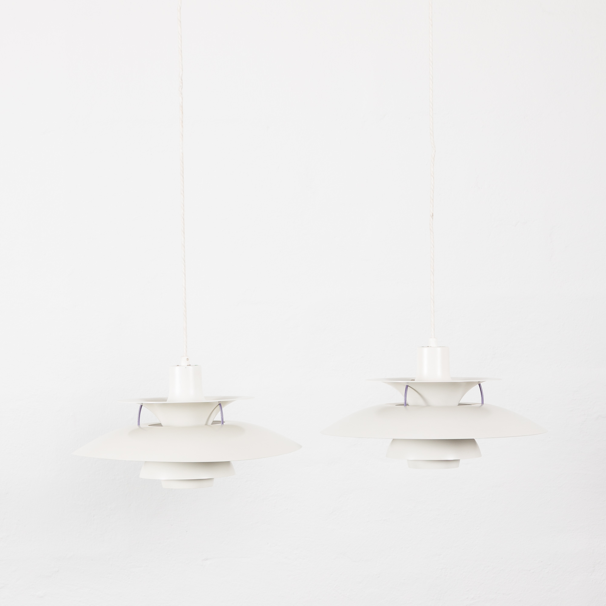 Pair of vintage white PH5 lamps by Poul Hanningesn for Louis Poulsen