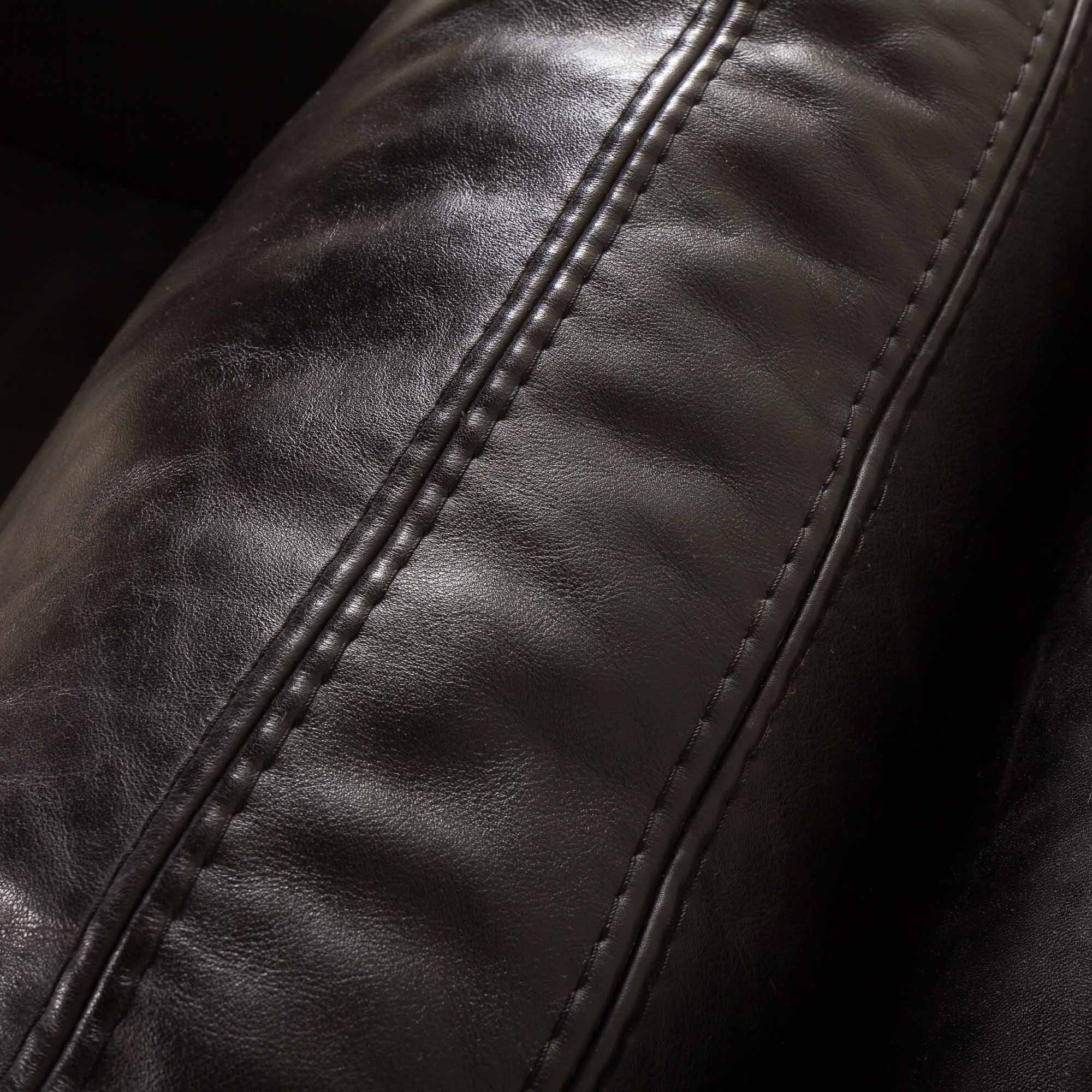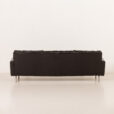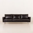 The piece has been professionally renovated by a previous owner. It is upholstered in new, high-quality black aniline leather, and goose down–filled cushions have been reshuffled. As a result, the sofa is extremely comfortable, combining visual lightness with generous support.