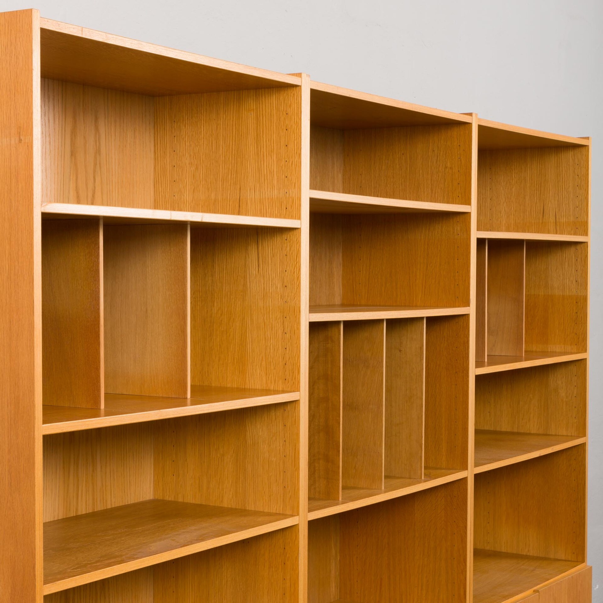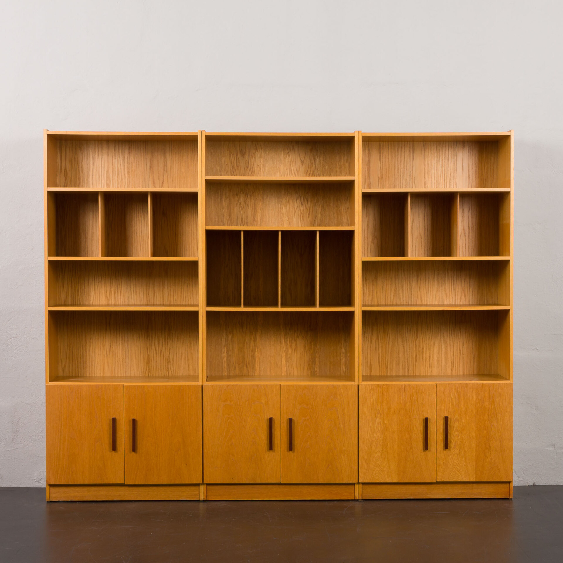 Ib Kofod Larsen Danish vintage oak 3 modules bookcase system with vinyl records shelves for Faarup, Denmark 1980s