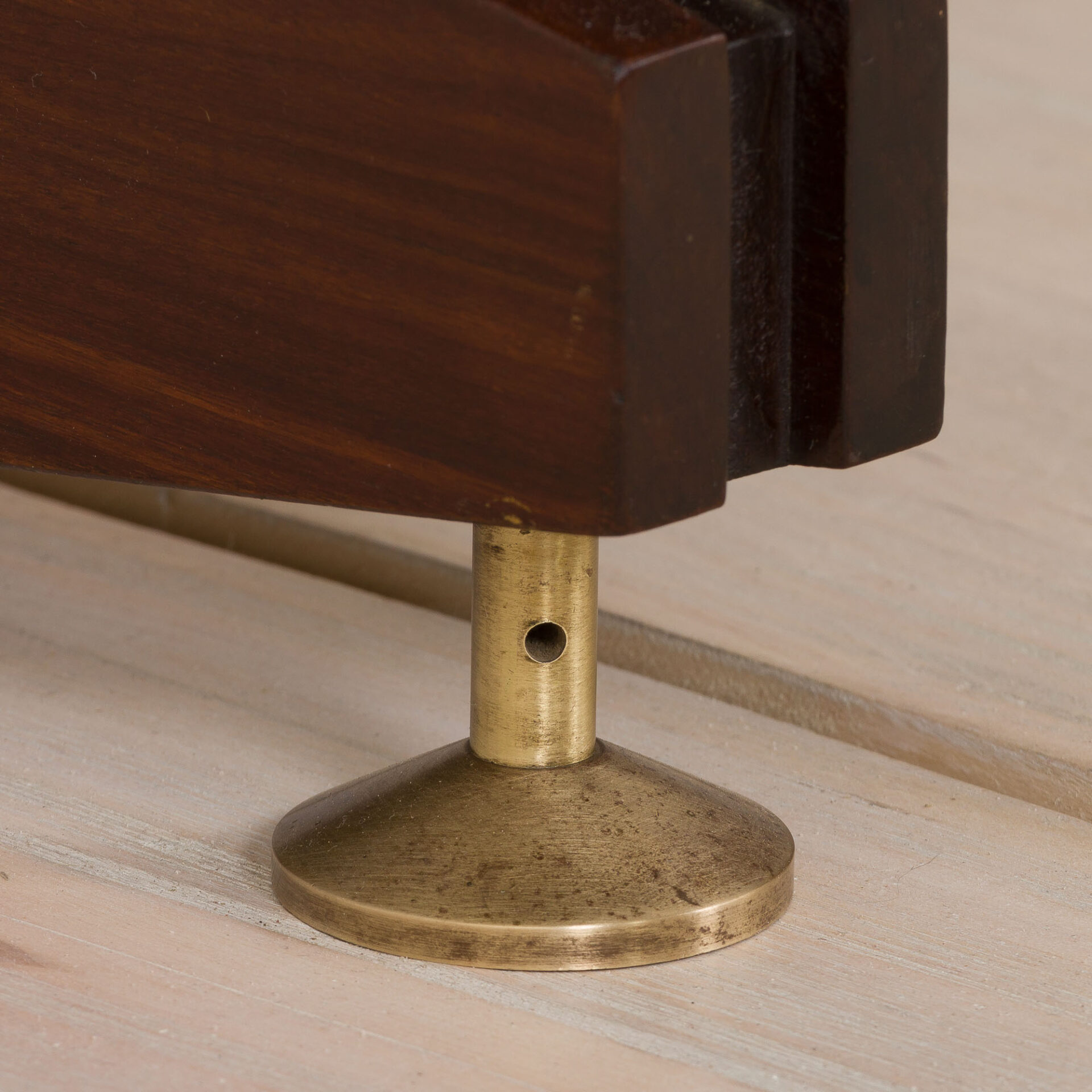 It features cabinets with many drawers and smaller compartments and nooks for documents and petty items and eight shelves for decorations and books. It looks incredible, no matter which side you will use it most. Adjustable brass feet provide stability even on the old wooden floor.