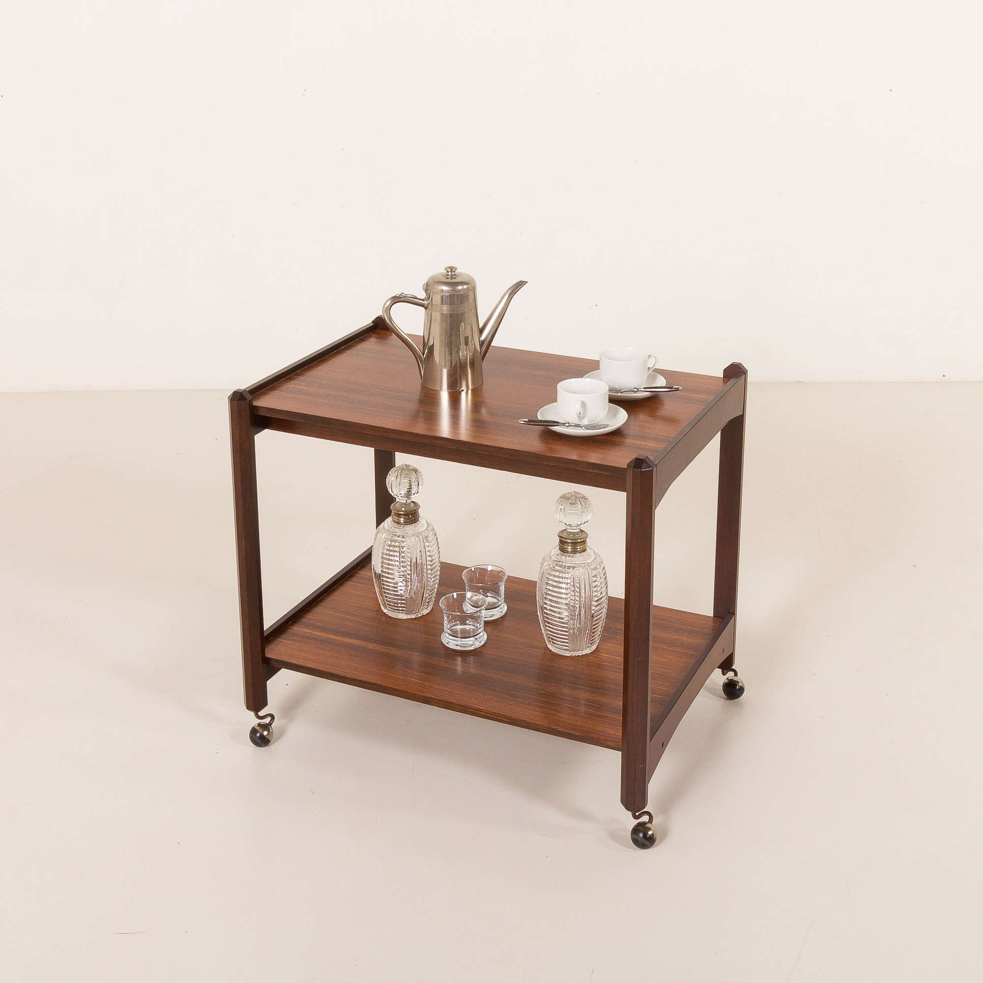 Italian mid century bar trolley, serving cart in rosewood, 1960s