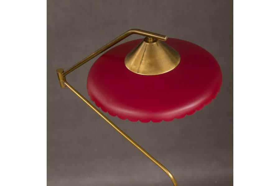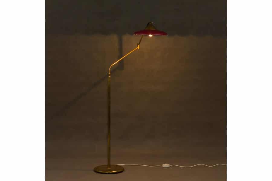 Italian solid brass floor lamp with extension arm, that riches to over one meter. The shade is out of painted aluminium. The hight is also adjustable and can go to almost 2 meters. Original condition with some signs of wear.