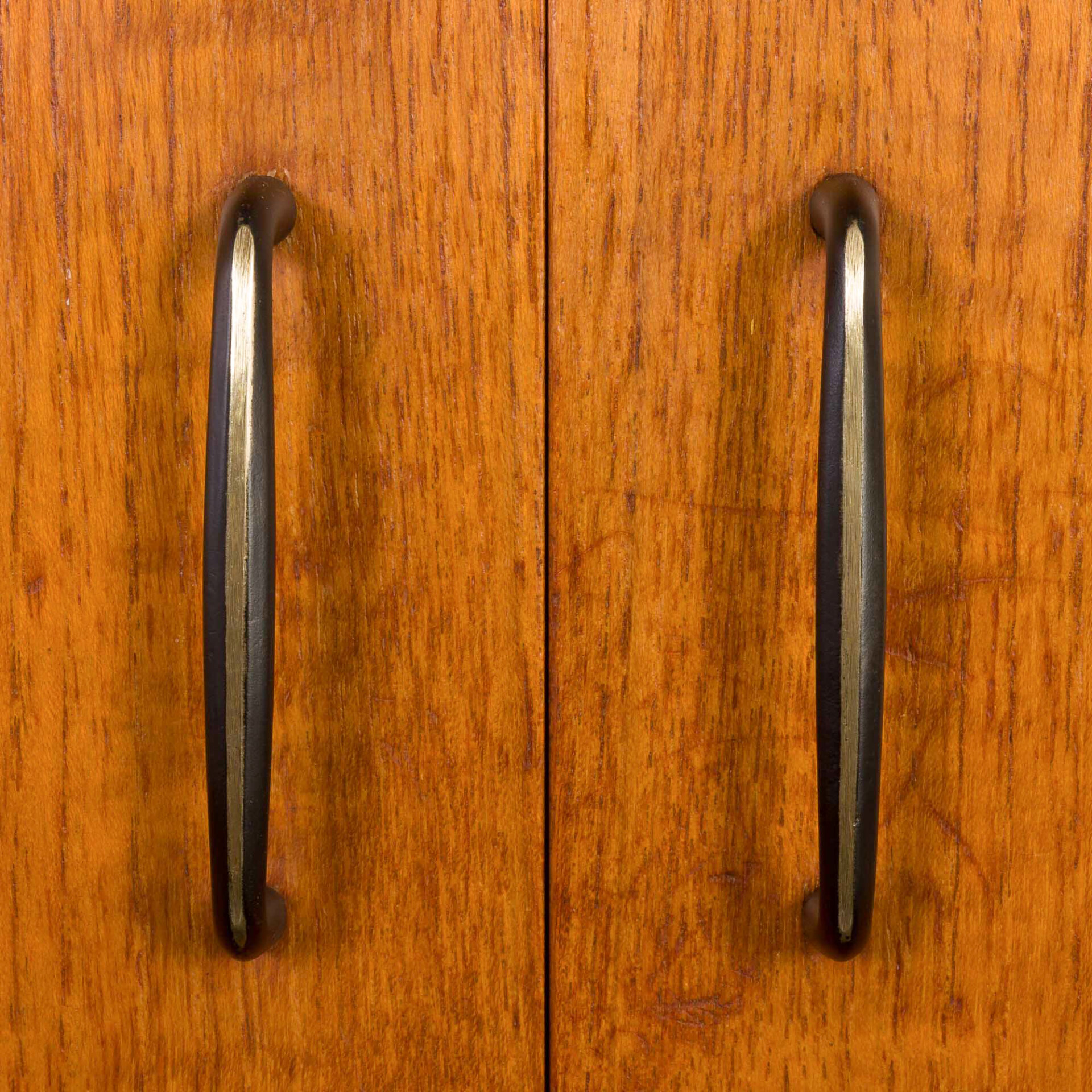 The set has been checked by our team. We have made sure that all drawers and doors work properly. On many occasions, we have to sand down the most used parts (if they are scratched badly). Here we have only cleaned the wood meticulously, and the original varnish was refreshed with professional compounds. We leave minor signs of use that do not spoil the aesthetic and only confirm its originality. Our goal is to restore the furniture to its best condition, considering its age of 60 years. Clients from all around the world have already trusted our work and its fruits. If you are new to vintage furniture, you can contact us for any possible explanations and close-ups of the piece.