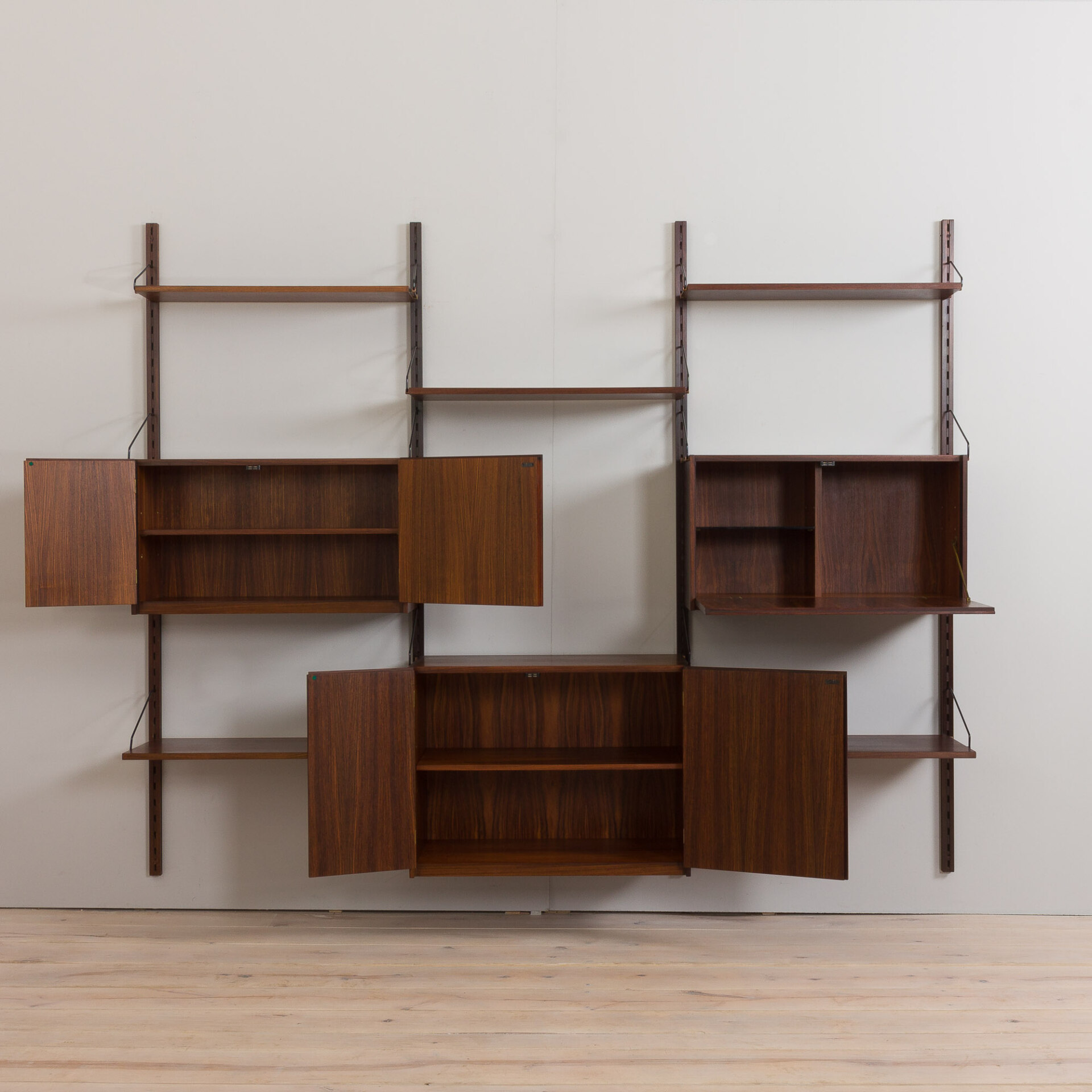 Italian modular 3 bay rosewood wall unit with 3 cabinets, 1960s