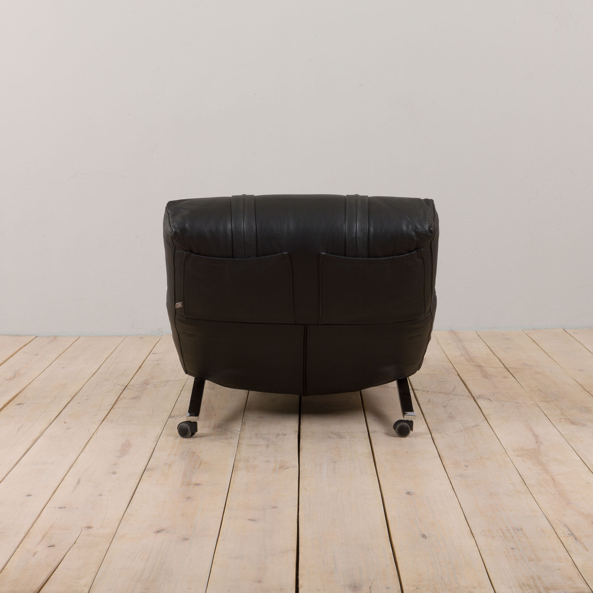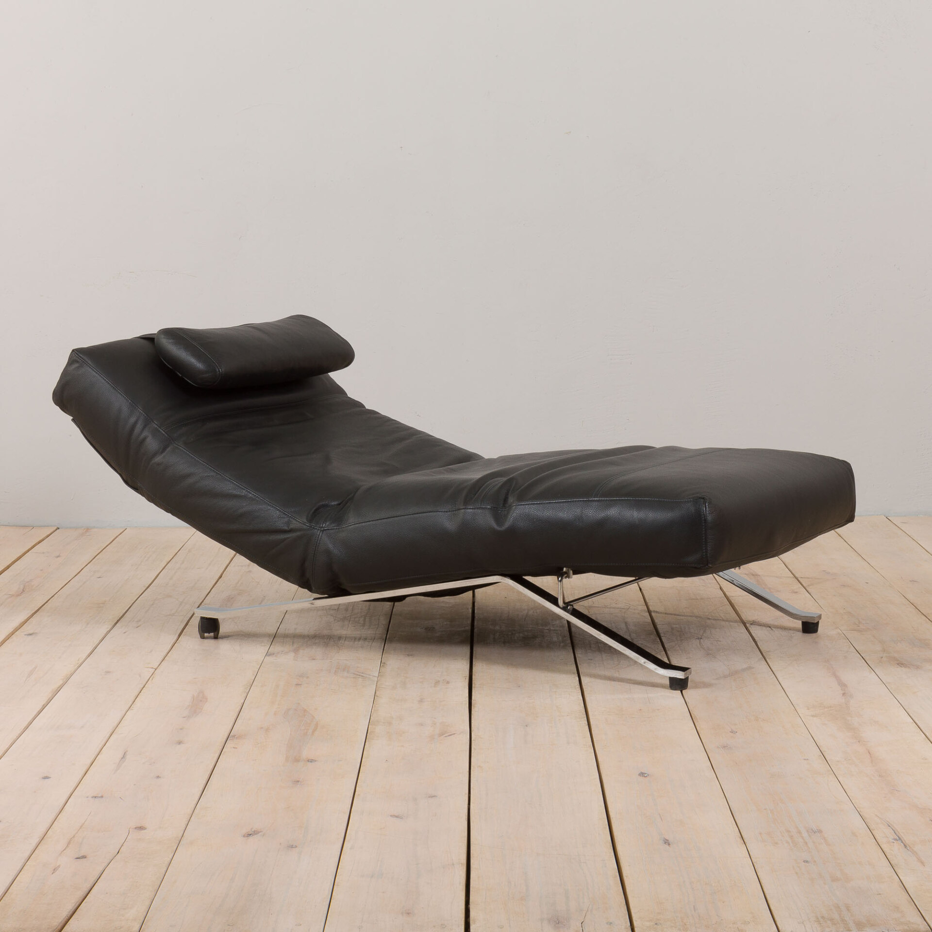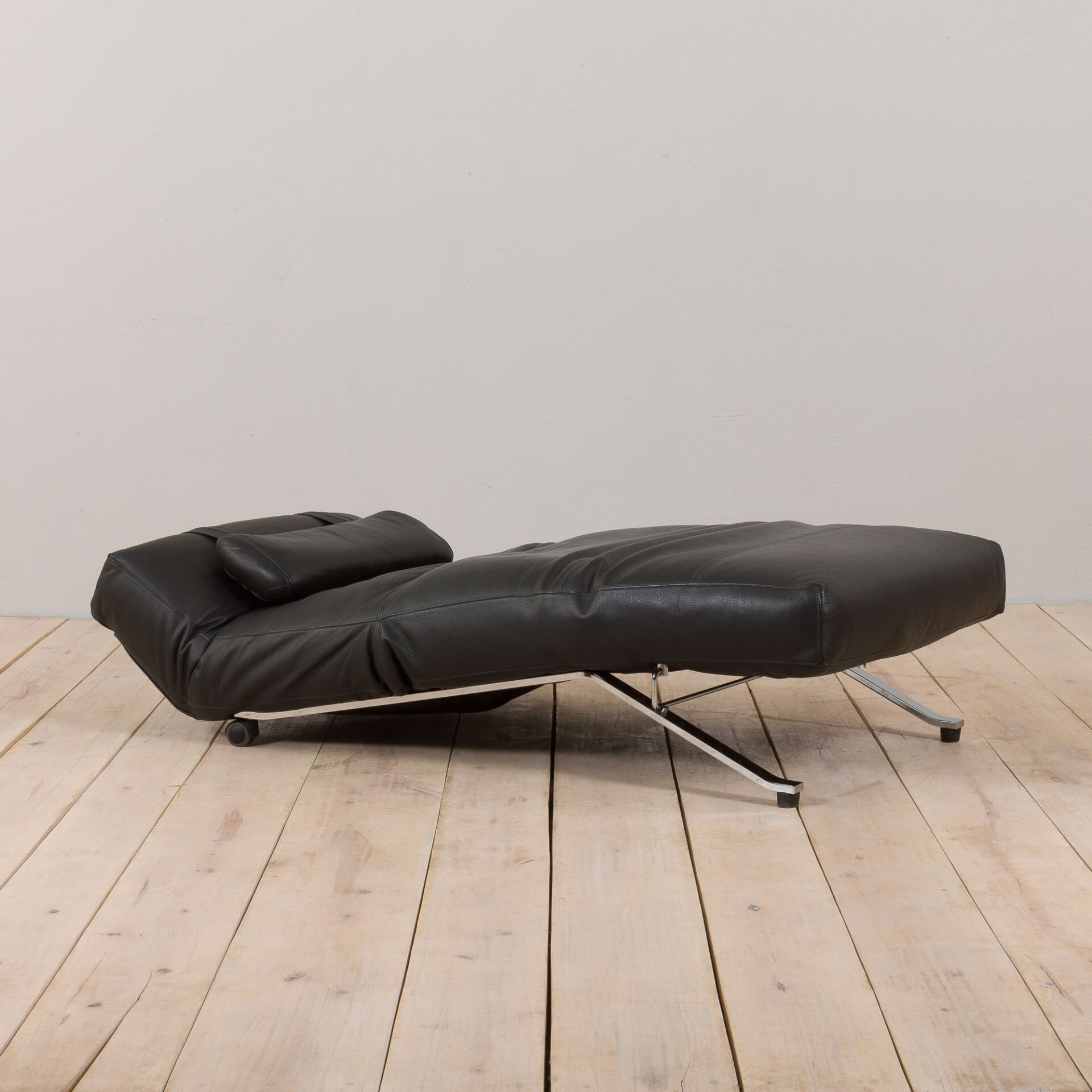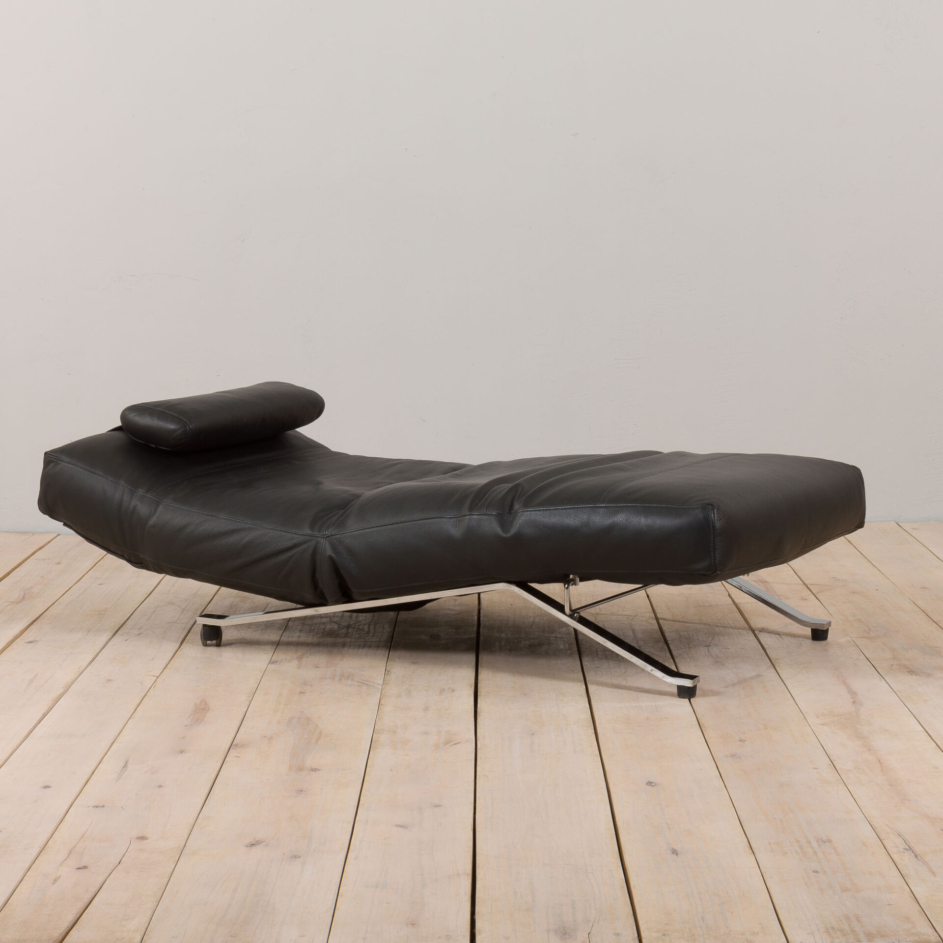 Jens Juul Eilersen daybed in black leather and chrome base, Denmark 1980s