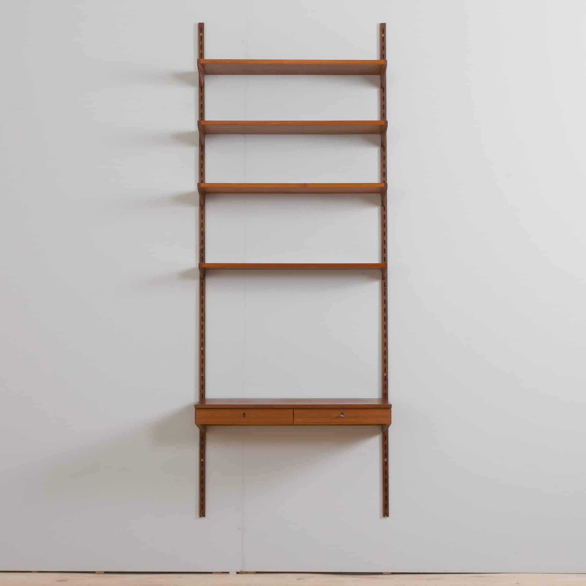 Kai Kristiansen home office teak wall unit with a desk and 4 shelves, FM Mobler, Denmark 1960s