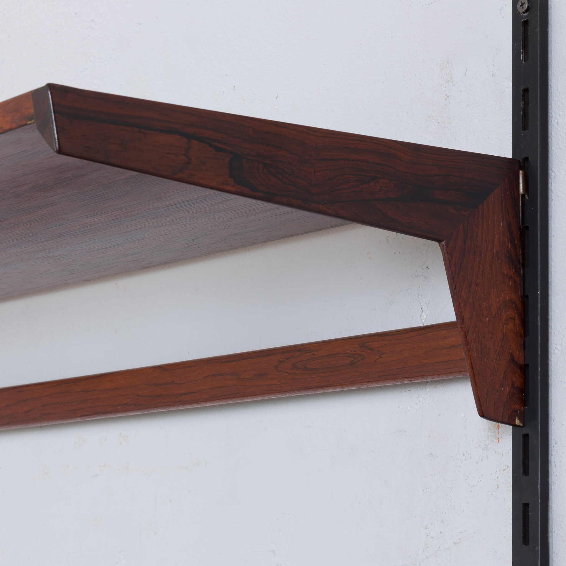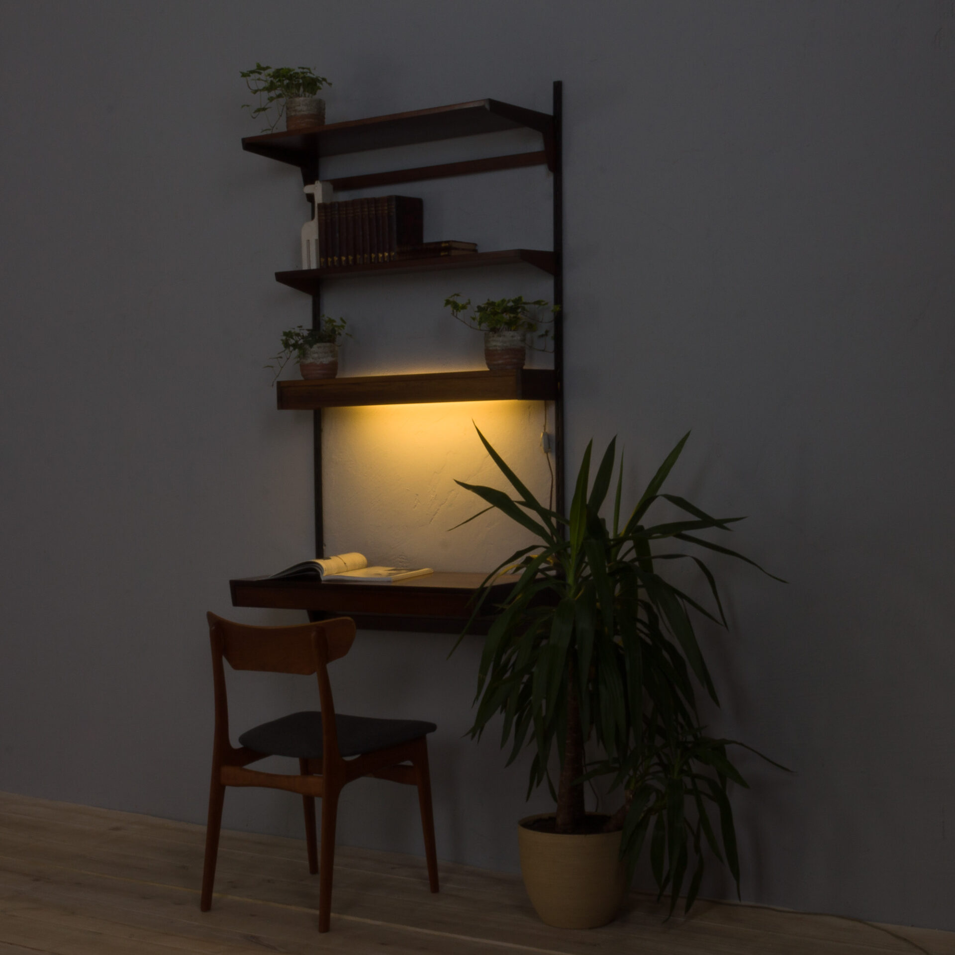 Kai Kristiansen minimalist rosewood wall unit with a desk and a lamp shelf, Denmark, 1960s.