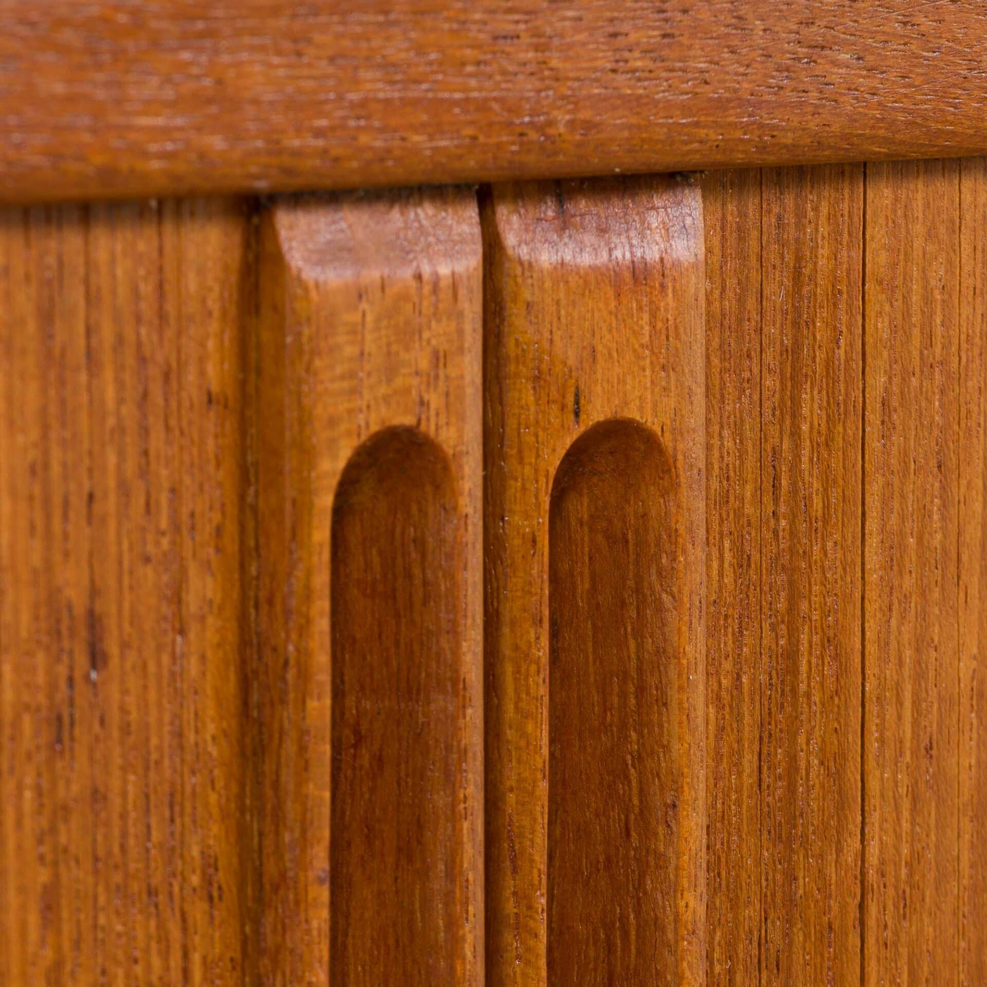 Kai Kristiansen Small Danish side cabinet teak dresser with tambour/sliding doors, 1960s.