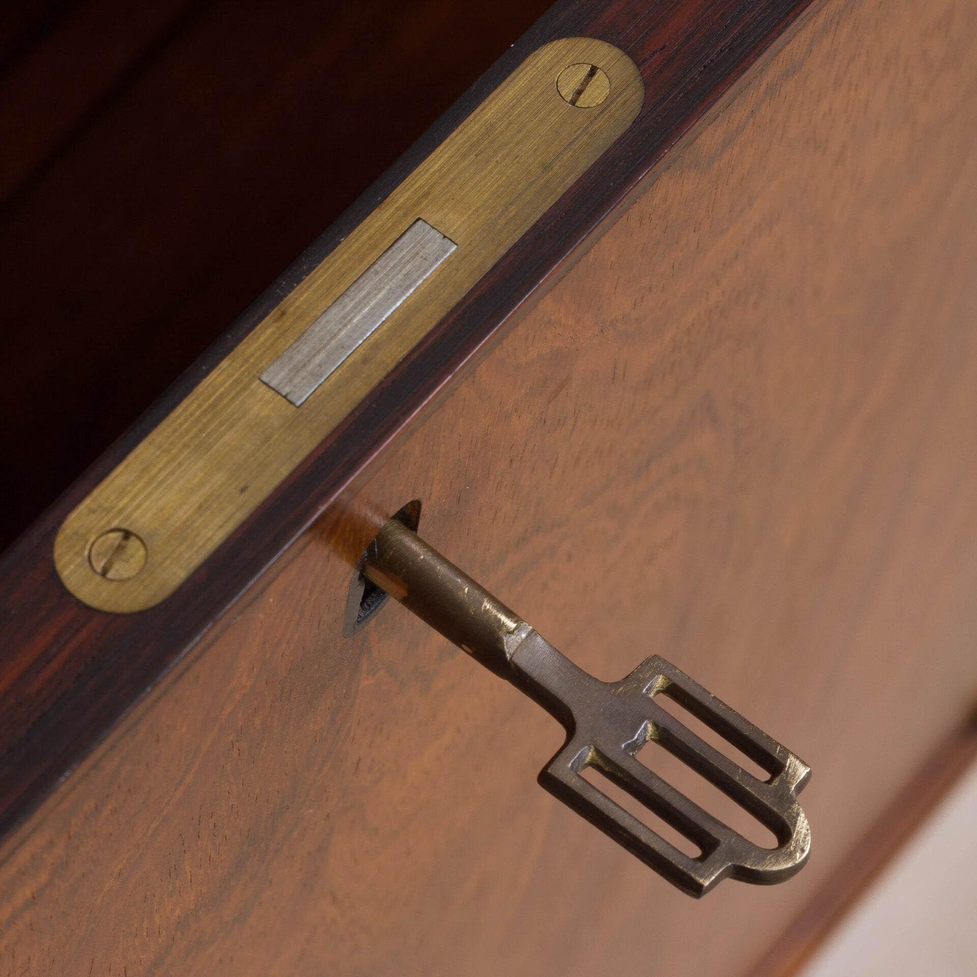 Very easy system of metal baskets fitting into the rails. The set is in original vintage condition with minimal signs of wear. A great example of Danish carpentry skills from mid 20th century. Manufacture’s label preserved.