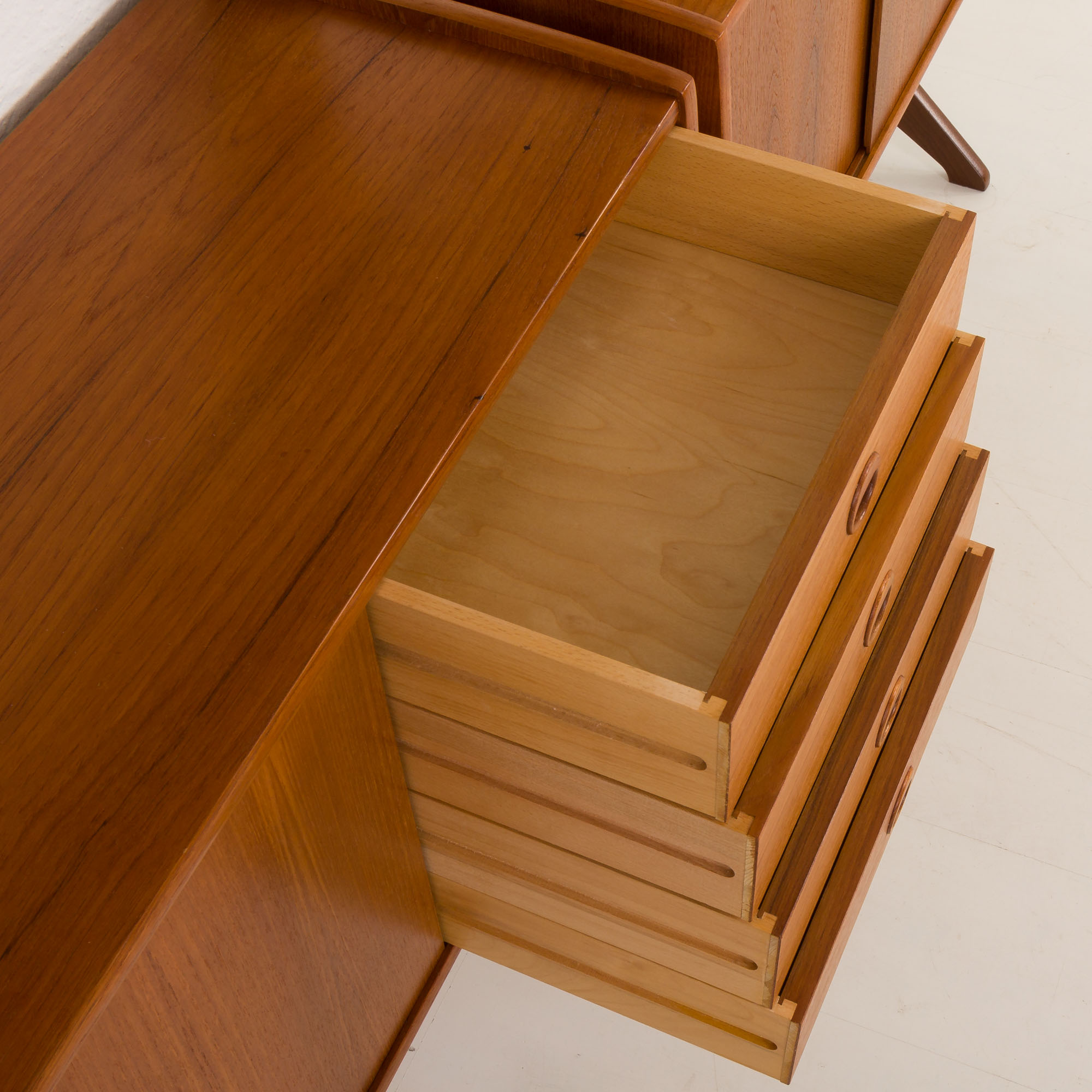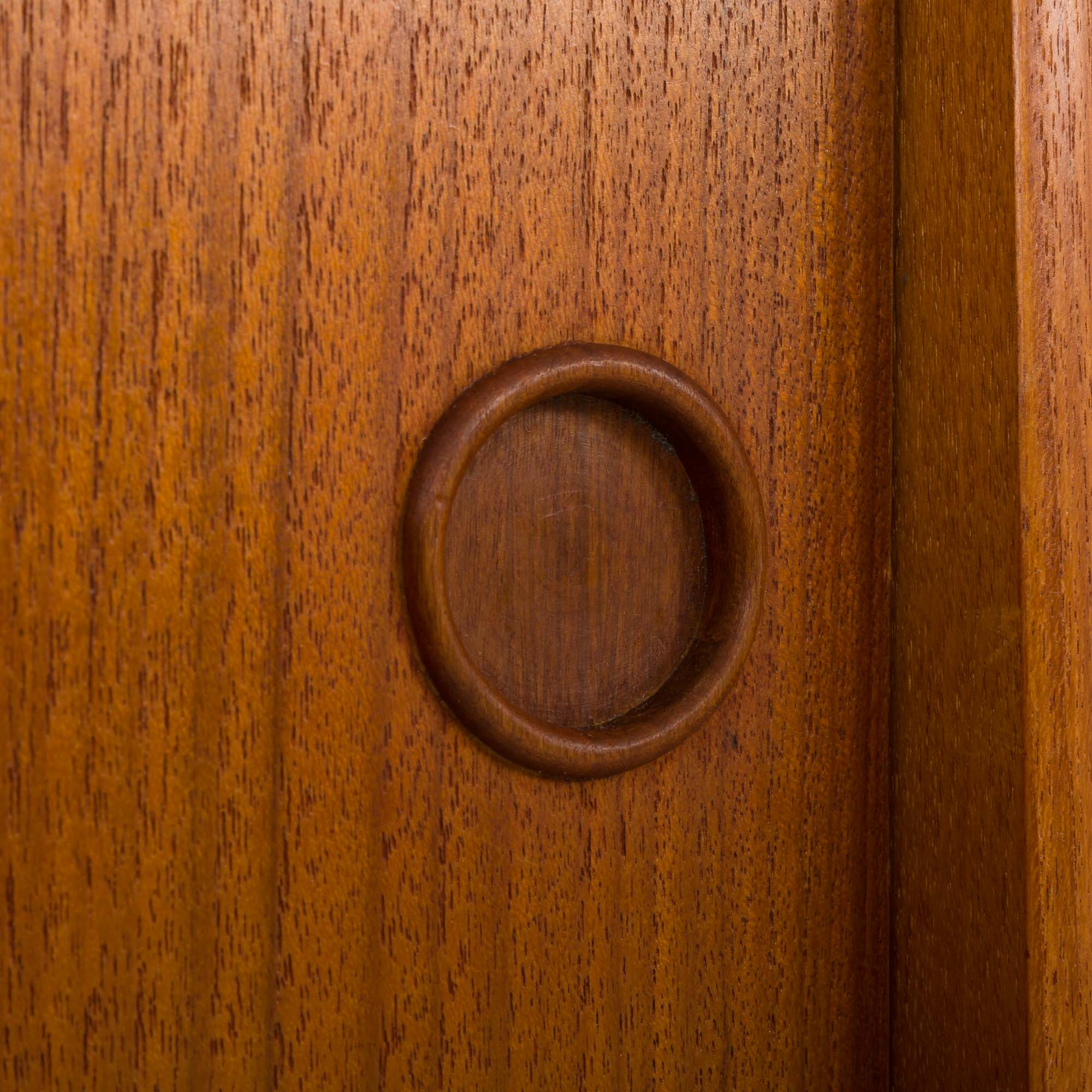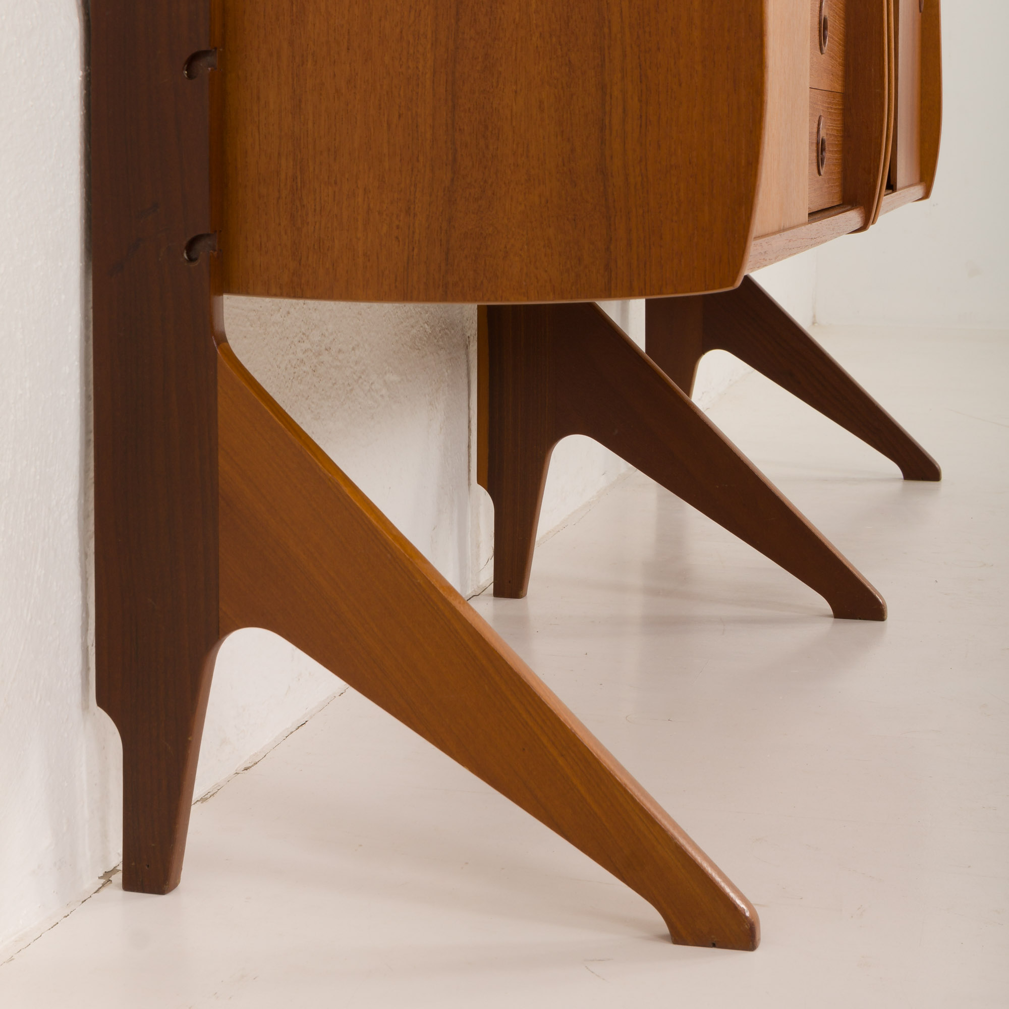 The wall unit has been checked by our team. It is in fantastic condition. “Made in Norway” stamp preserved on the back confirms the authenticity of the piece. All doors and montage mechanisms work properly and smoothly. The wood has been rejuvenated with professional compounds.