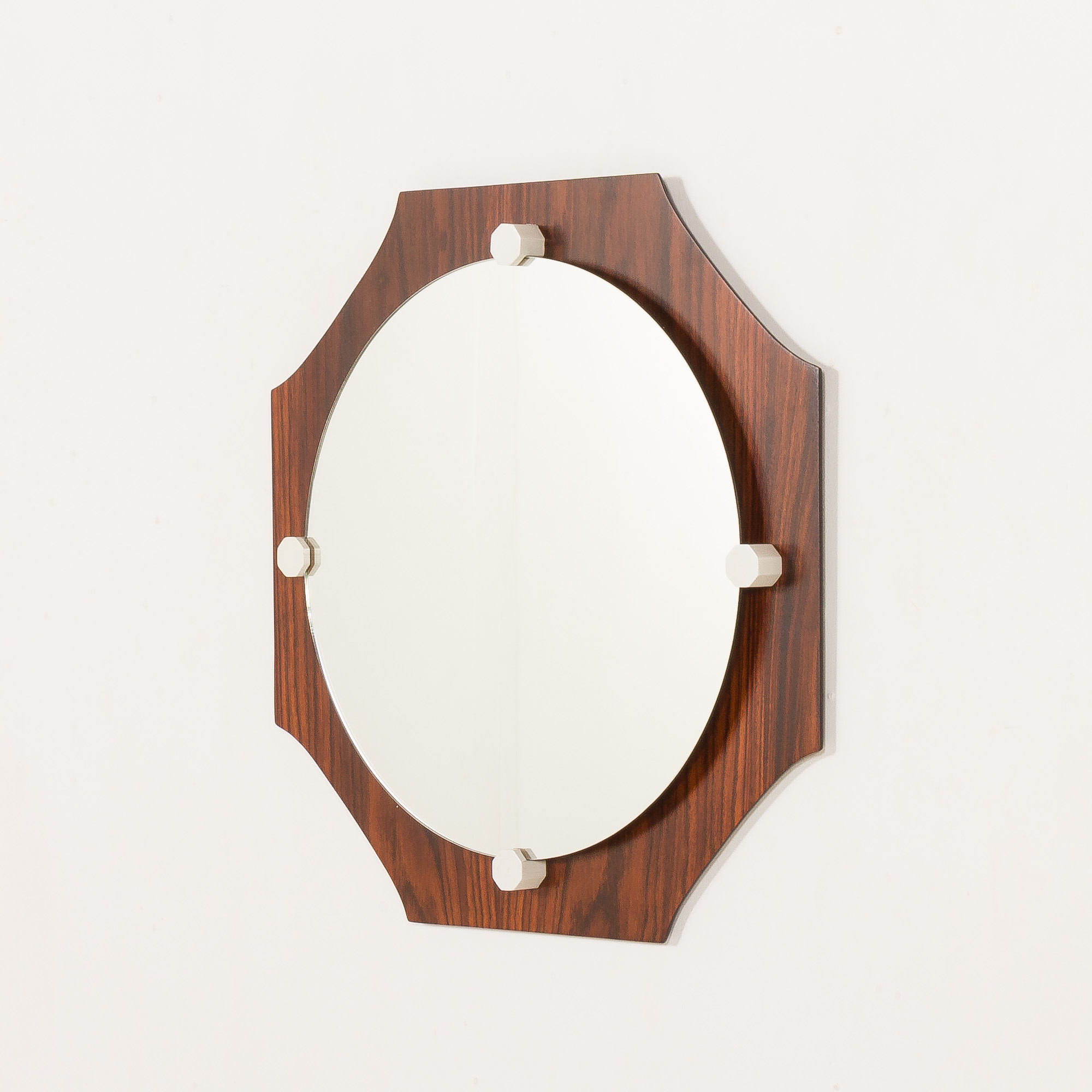 Mid century rosewood octagonal Space Age mirror, Italy 1970s