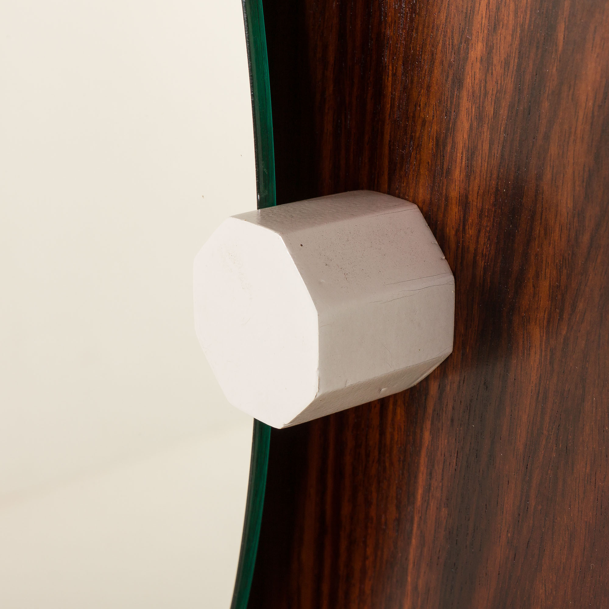 This vintage mirror embodies the sophisticated spirit of Italian design from the Space Age era, where everyday objects became sculptural works of art. The deep grain of rosewood highlights its modernist curves, making it both decorative and functional.