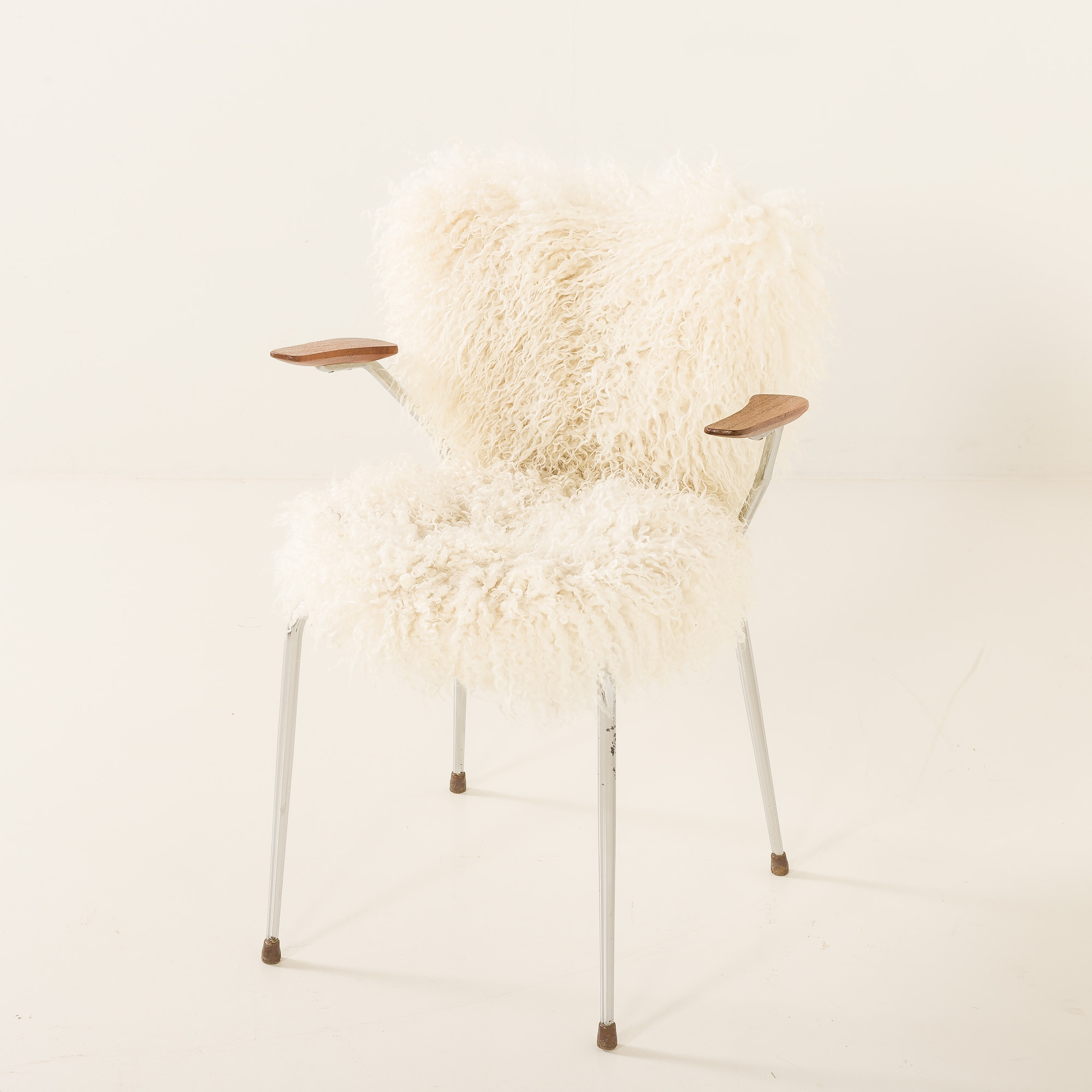 Mid century long hair sheepskin chair in the style of Arne Jacobsen, Denmark 1950s