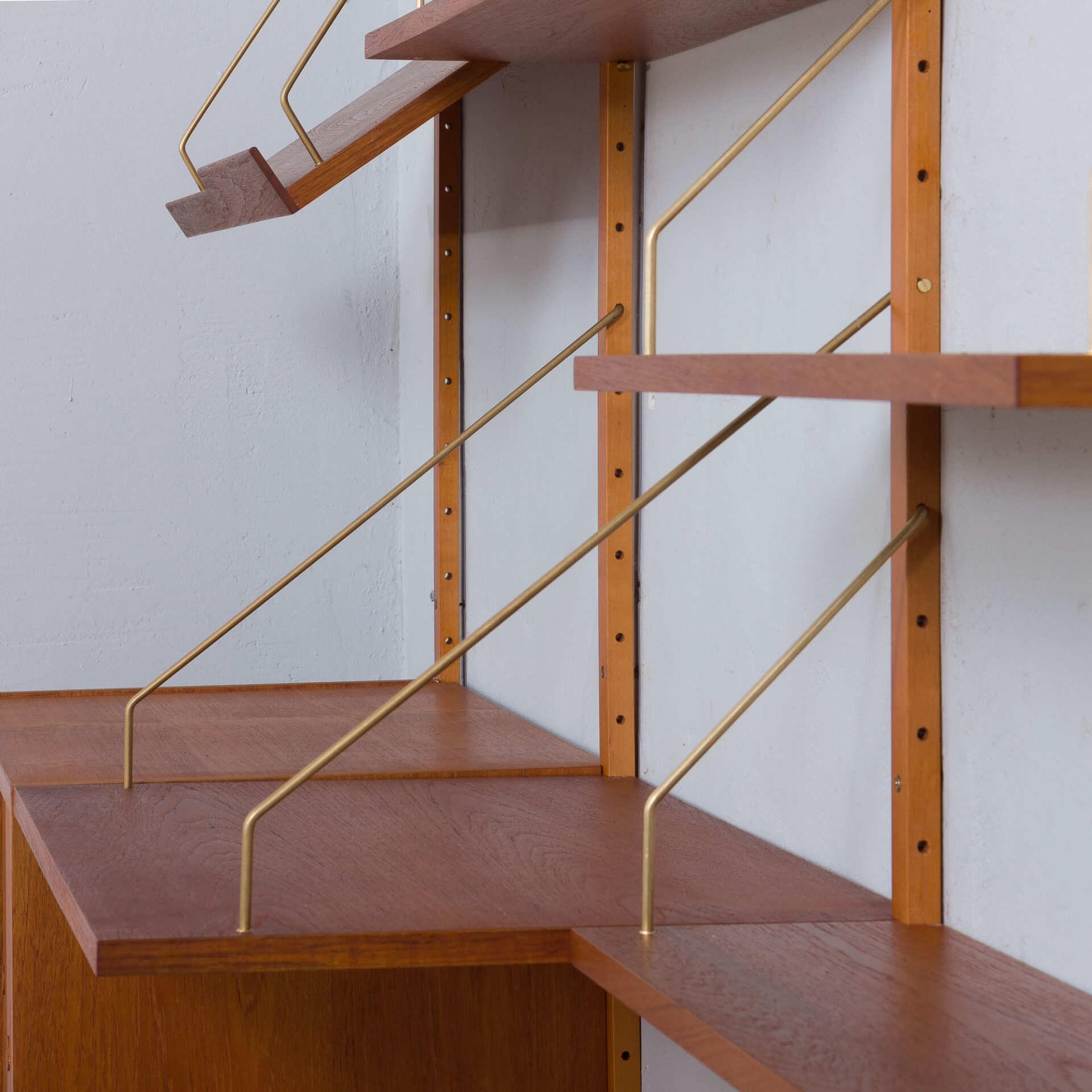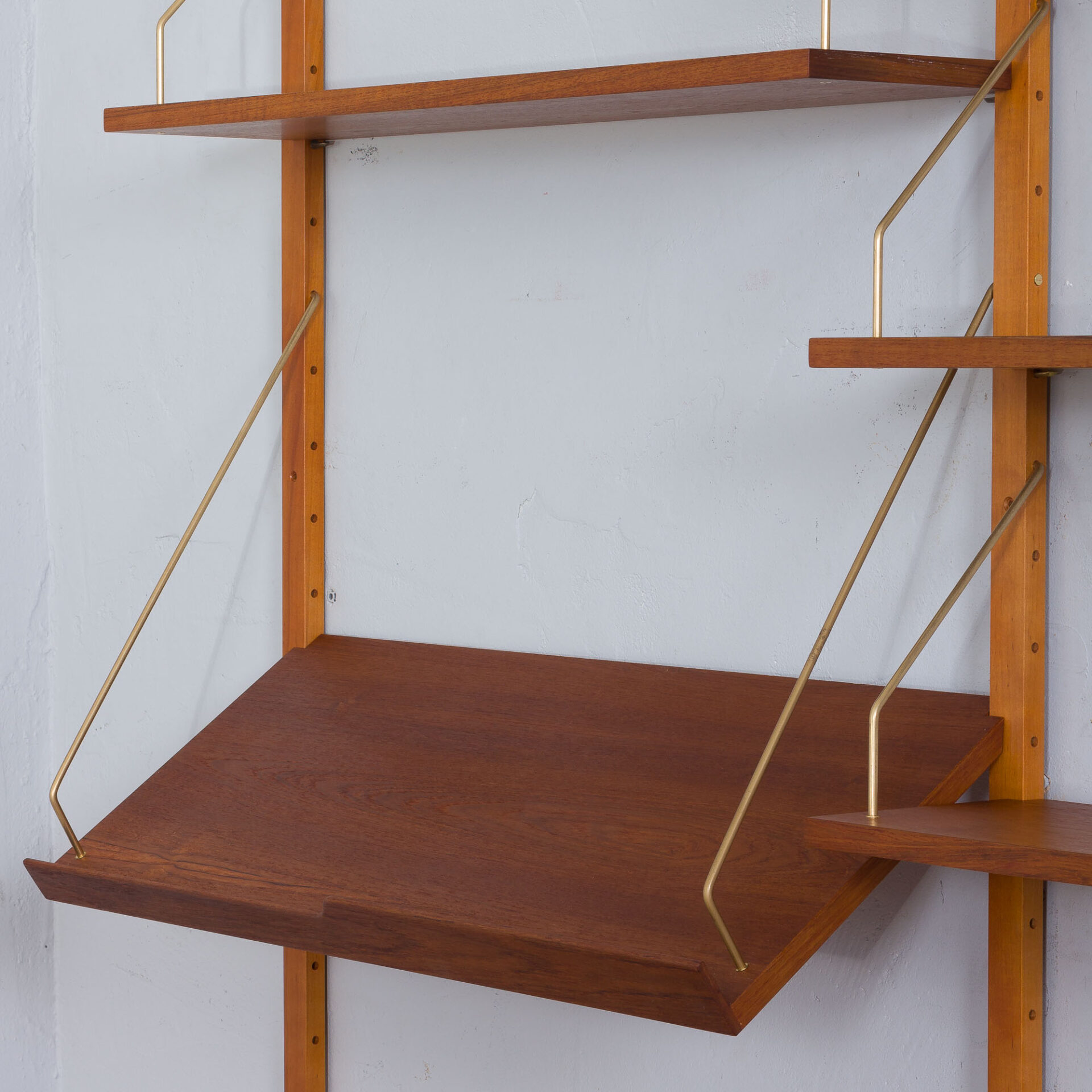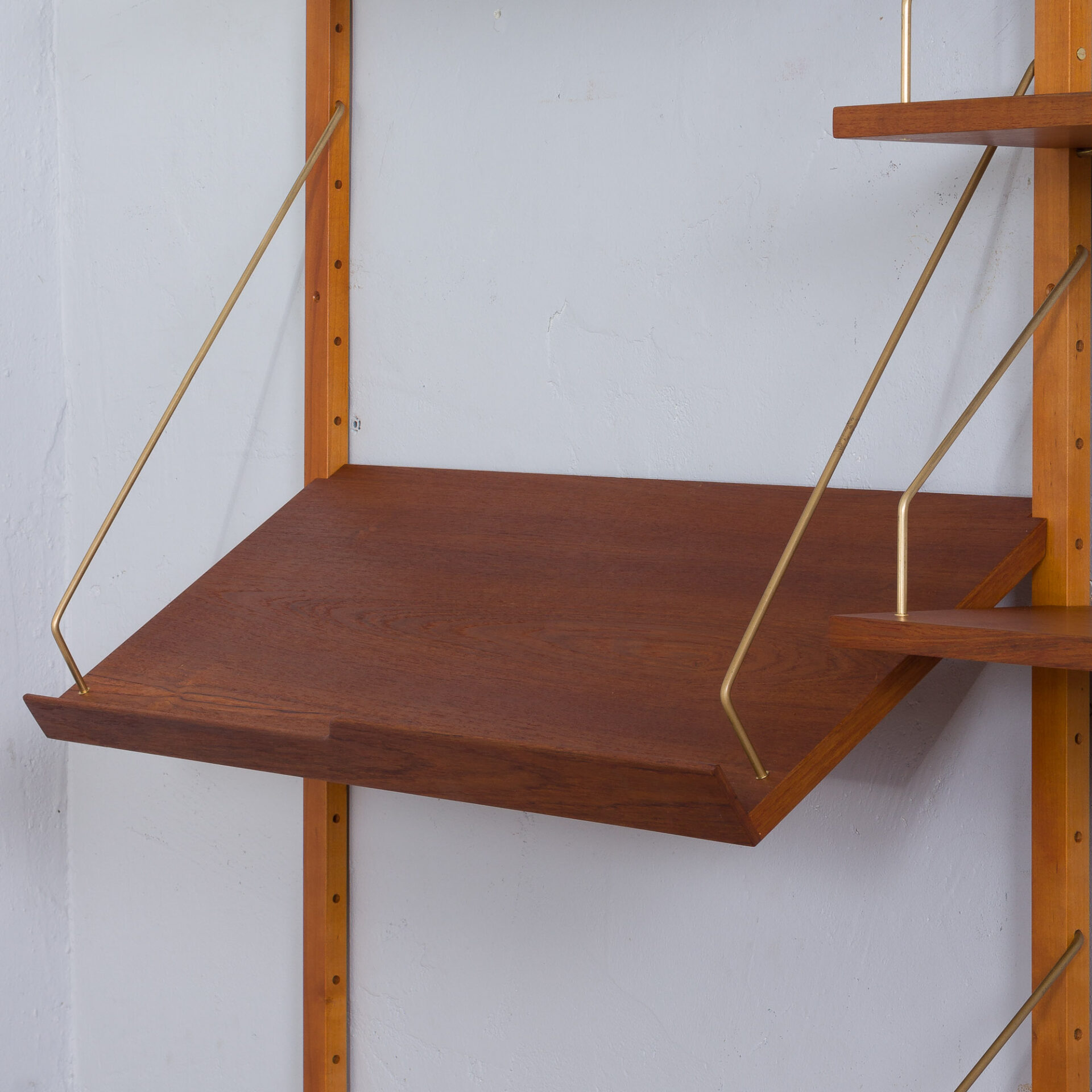 Modular teak wall unit with 2 cabinets and home office desk, PS Sorensen Cadovius shelving system, Denmark 60s