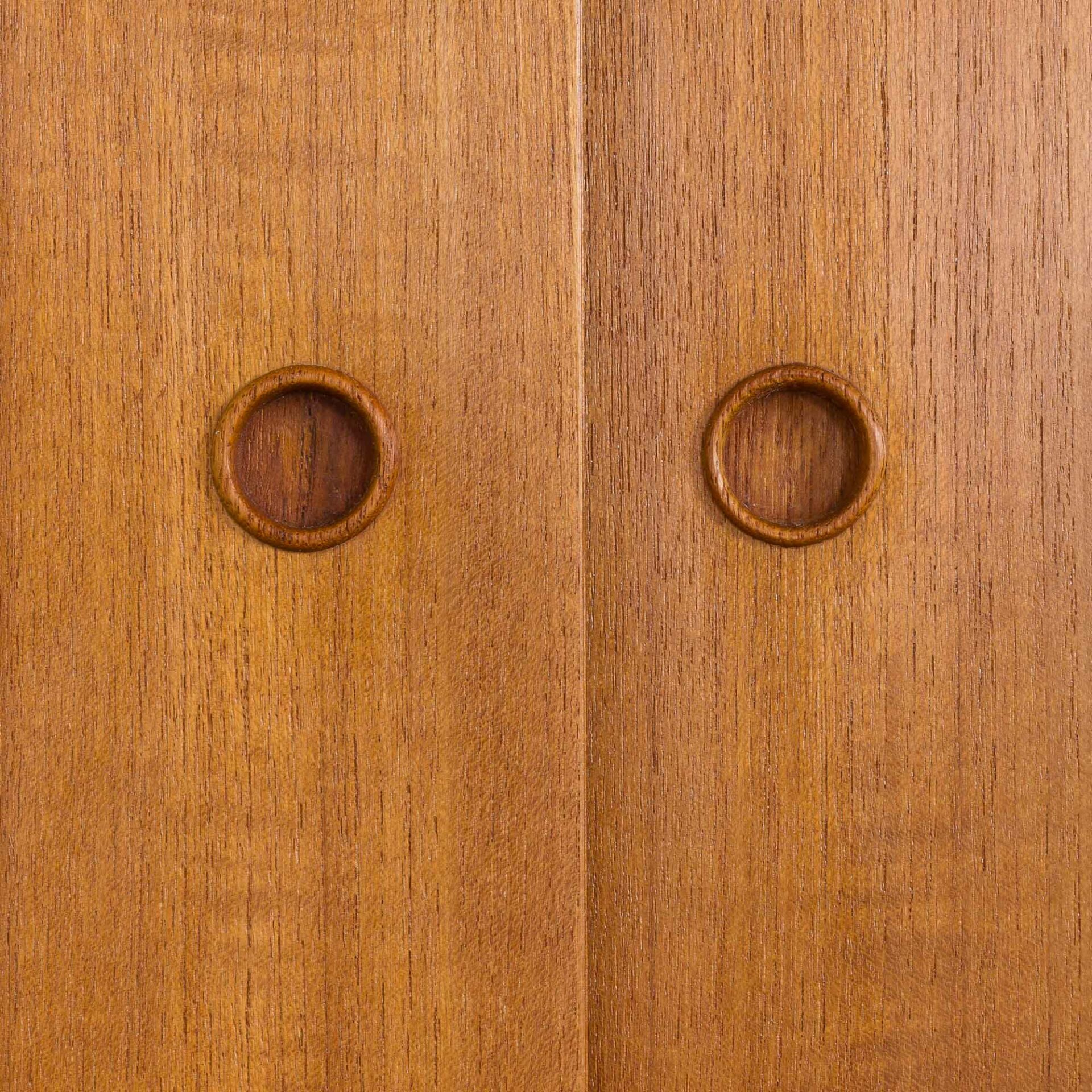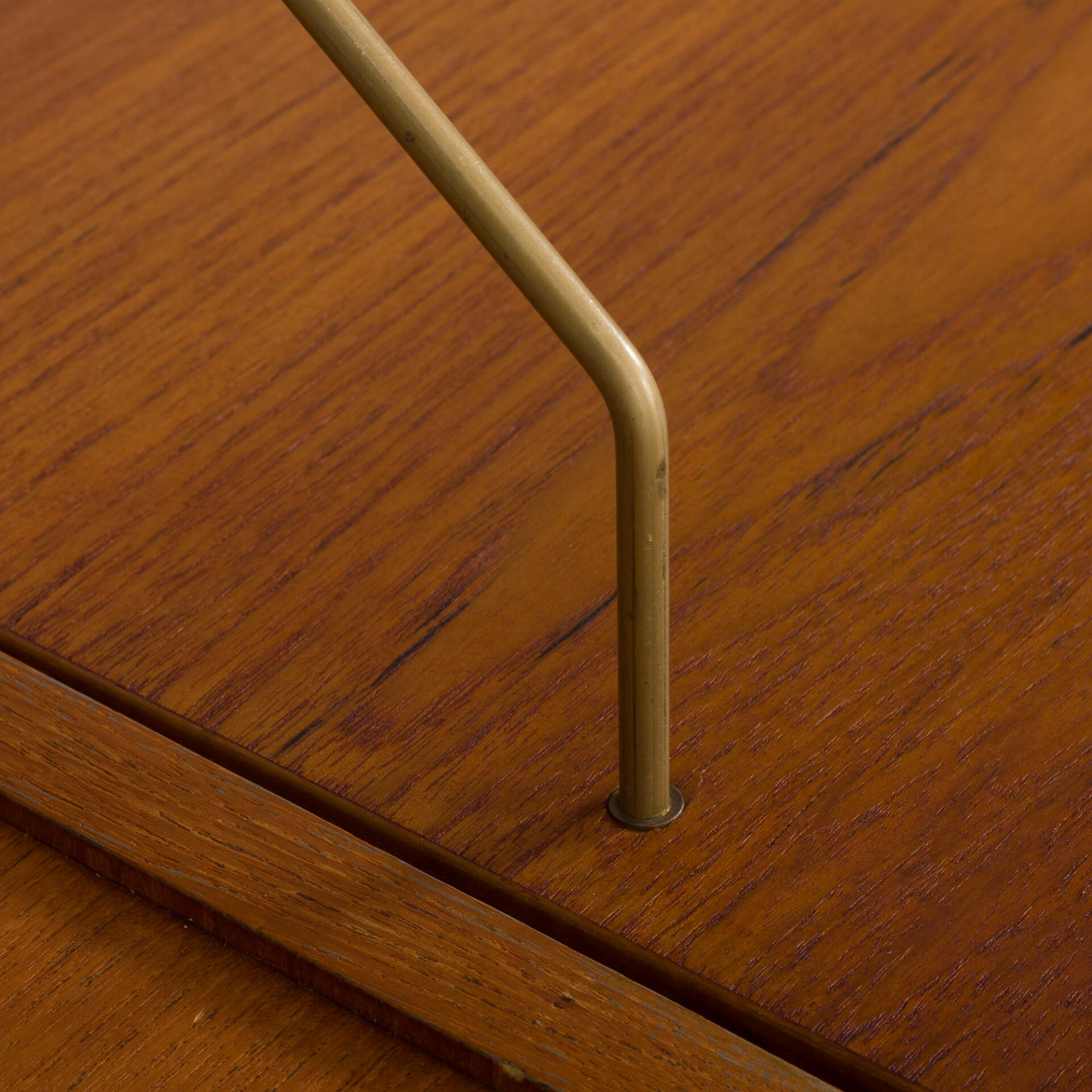 Three-bay teak wall unit designed by Preben Sorensen in Denmark in the 1960s. This entirely modular shelving system is ideal for a home office, as the compact desk will allow you to work even in the living room. Each component is 80cm wide and can be arranged at ones will.