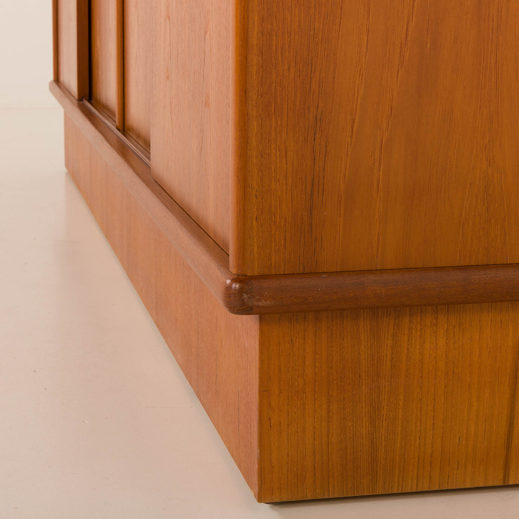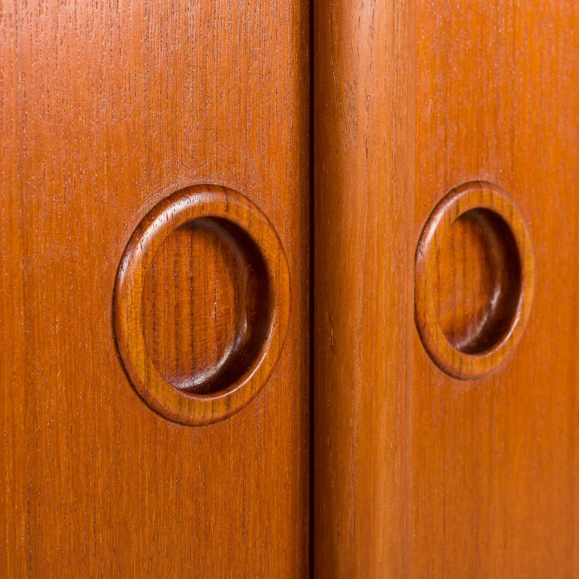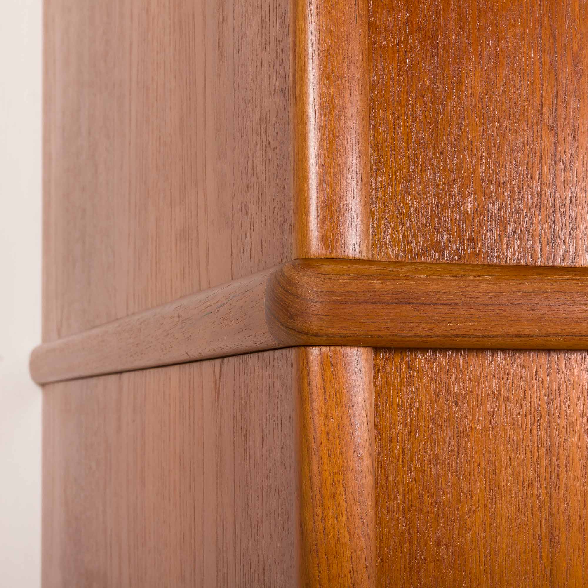 This rare Danish mid-century extra-large teak wardrobe was designed and made by Omann Jun in the 1970s. Omann Jun’s furniture was typically designed in-house by members of the Omann family, and their work was characterized by elegant lines and refined craftsmanship.