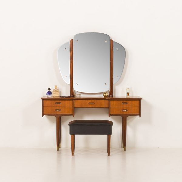 • Scandinavian mid century teak dressing table with adjustable mirrors, Norway 1960s