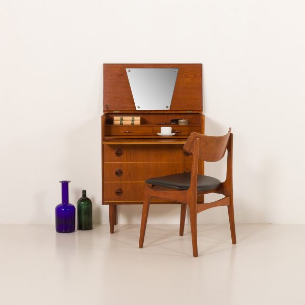 • Danish mid century teak chest of drawers with hidden vanity, 1960s