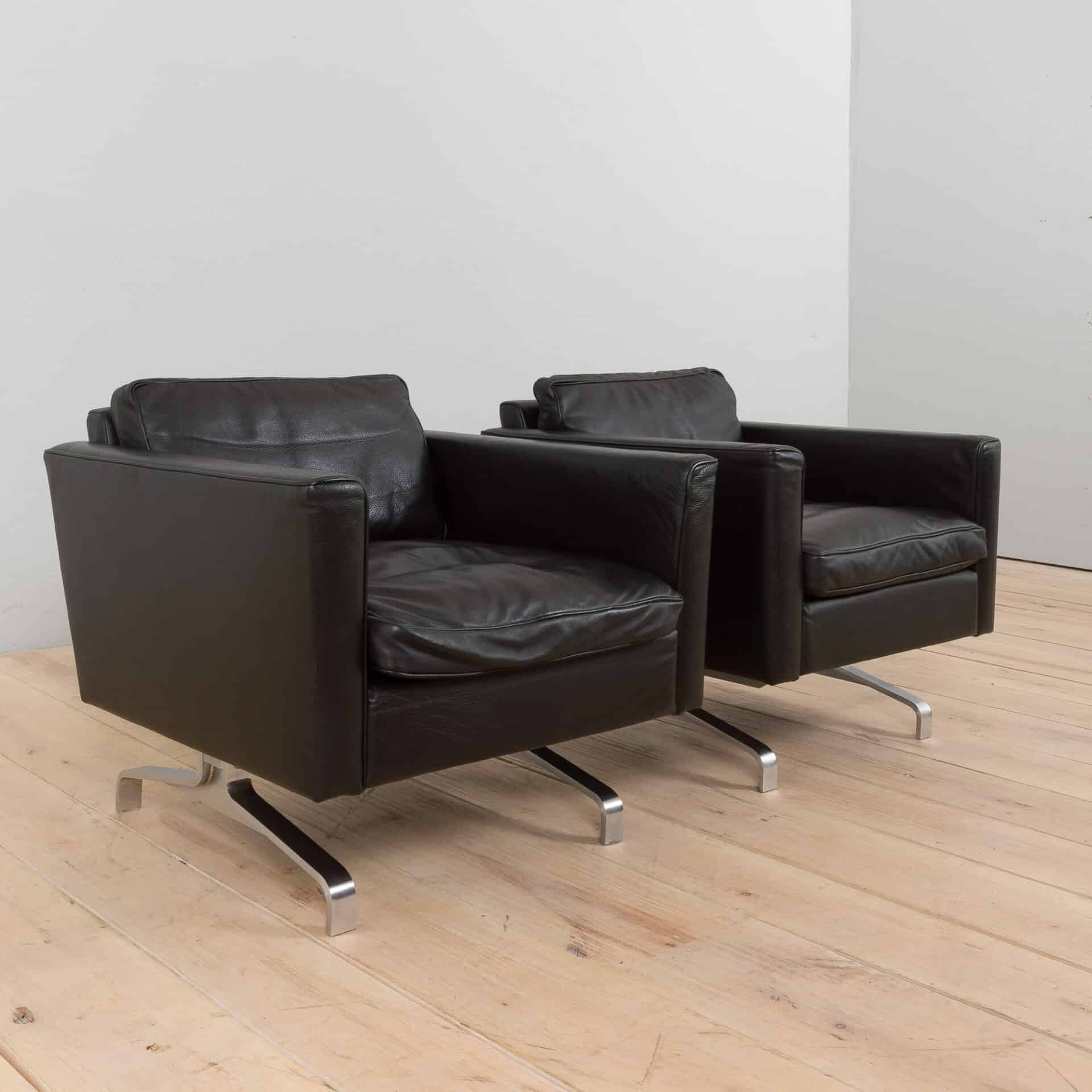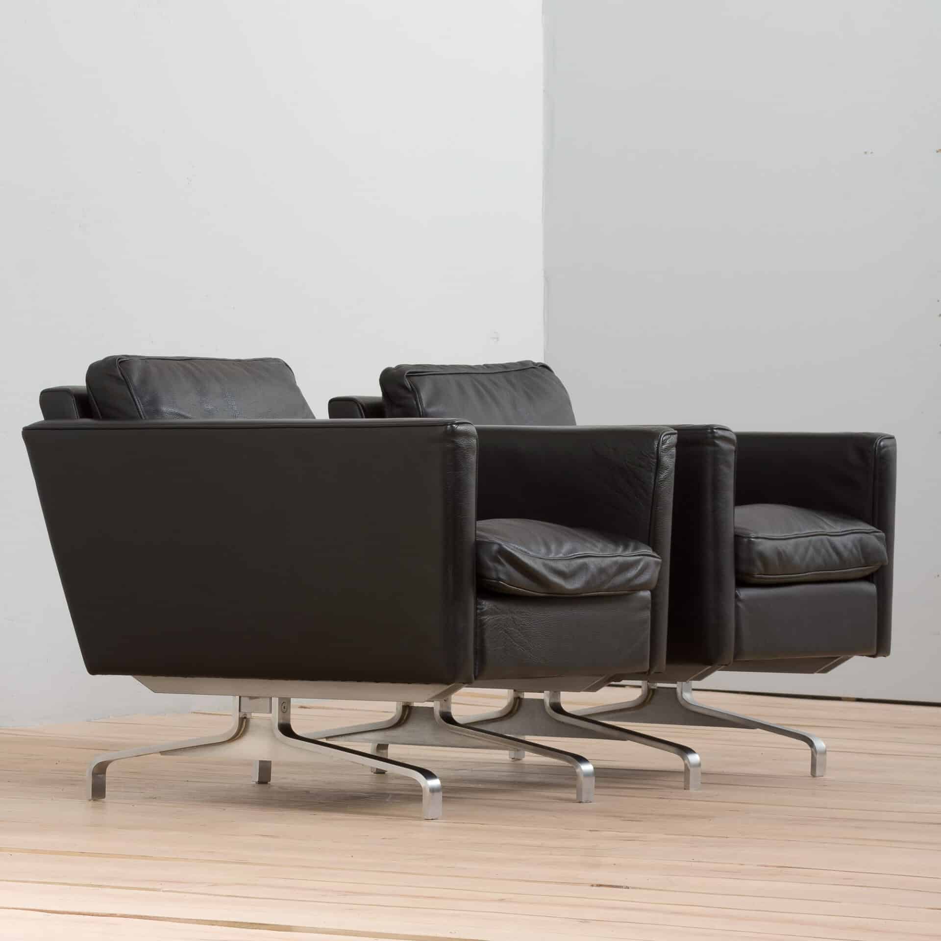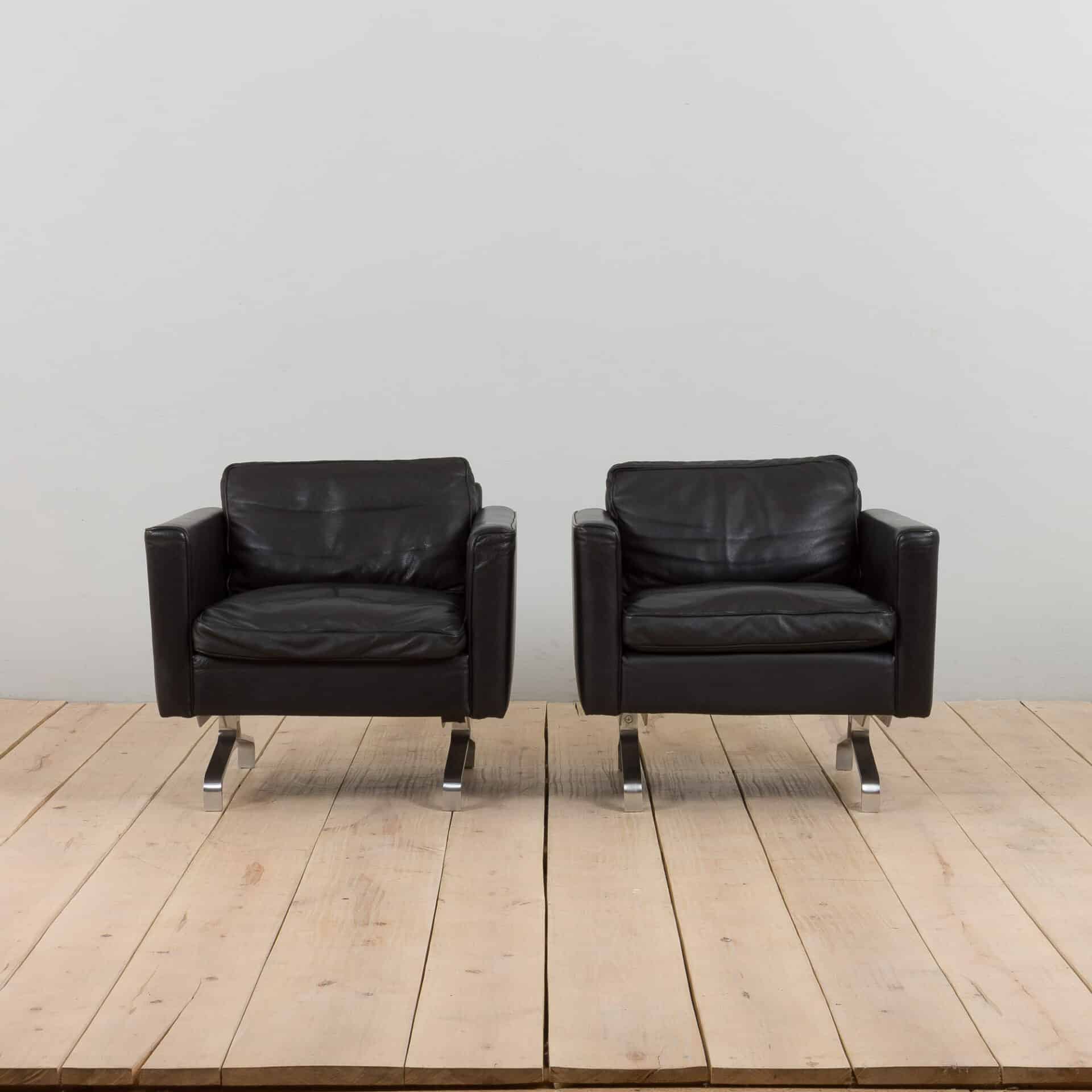 Pair of black leather Scandinavian lounge chairs in Poul Kjaerholm style, 1970-80s