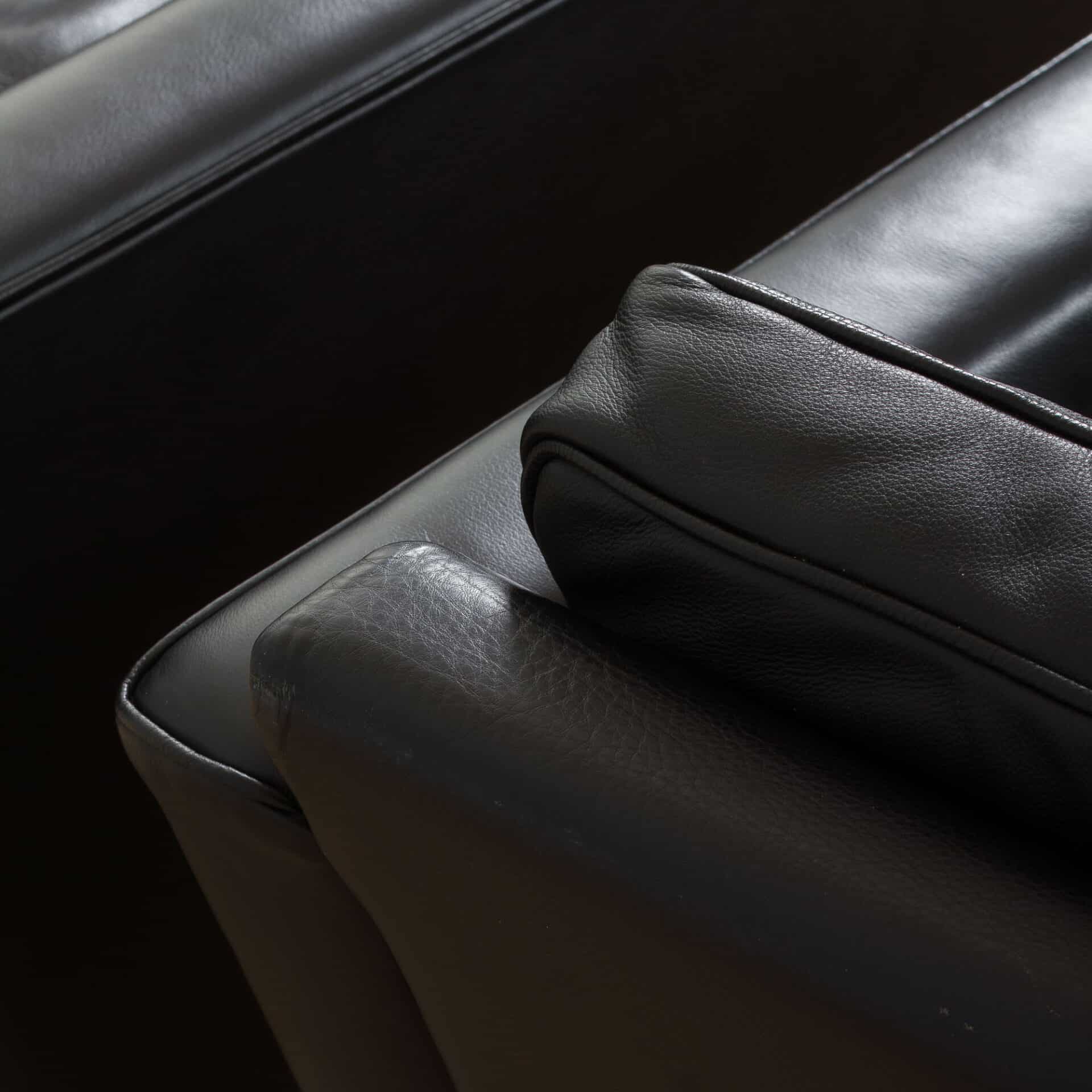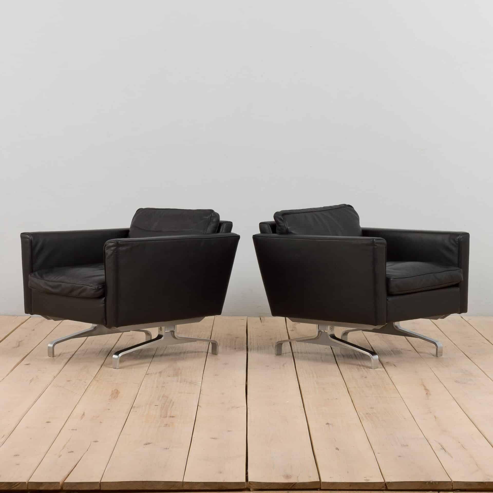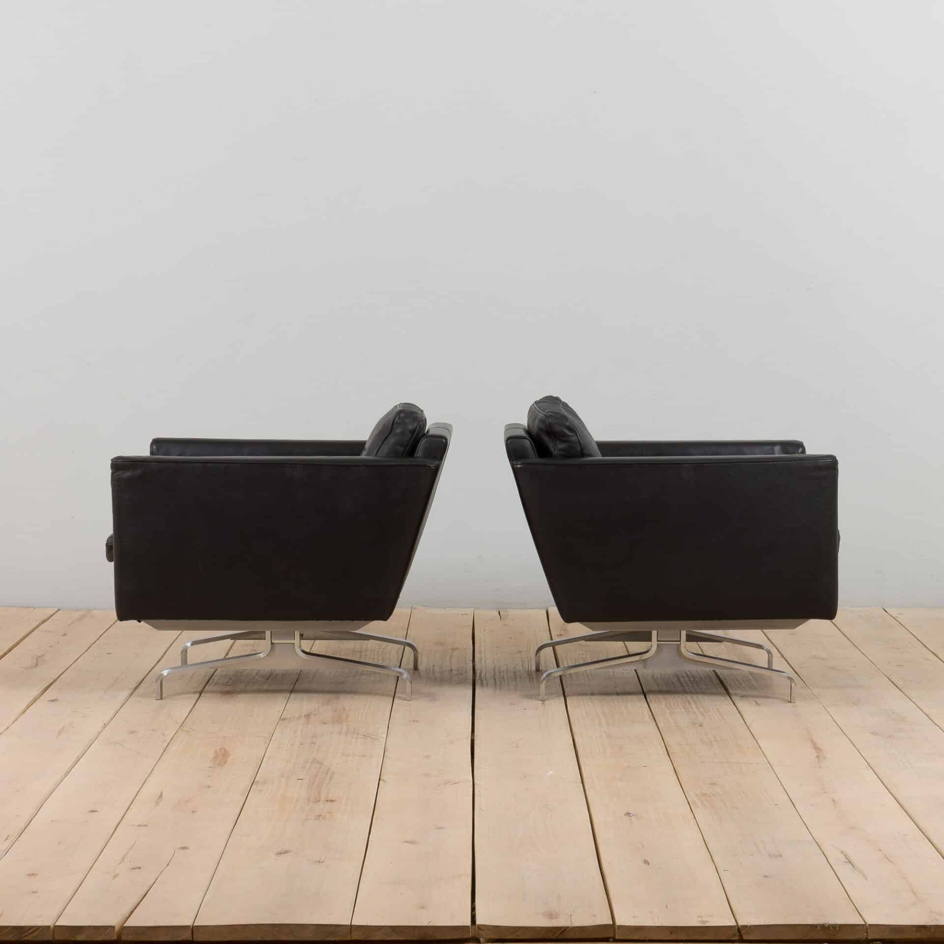 Pair of black leather Scandinavian lounge chairs in Poul Kjaerholm style, 1970-80s