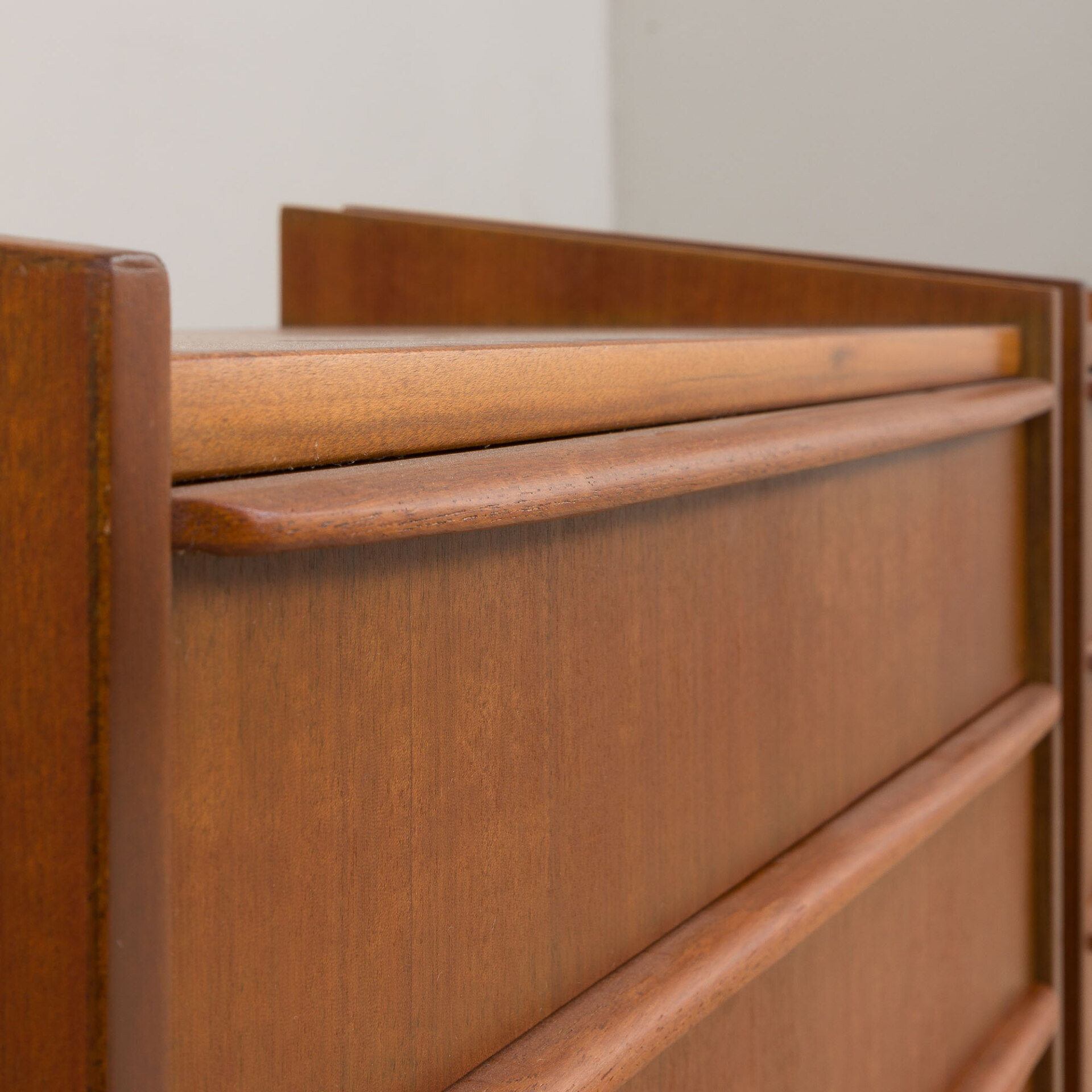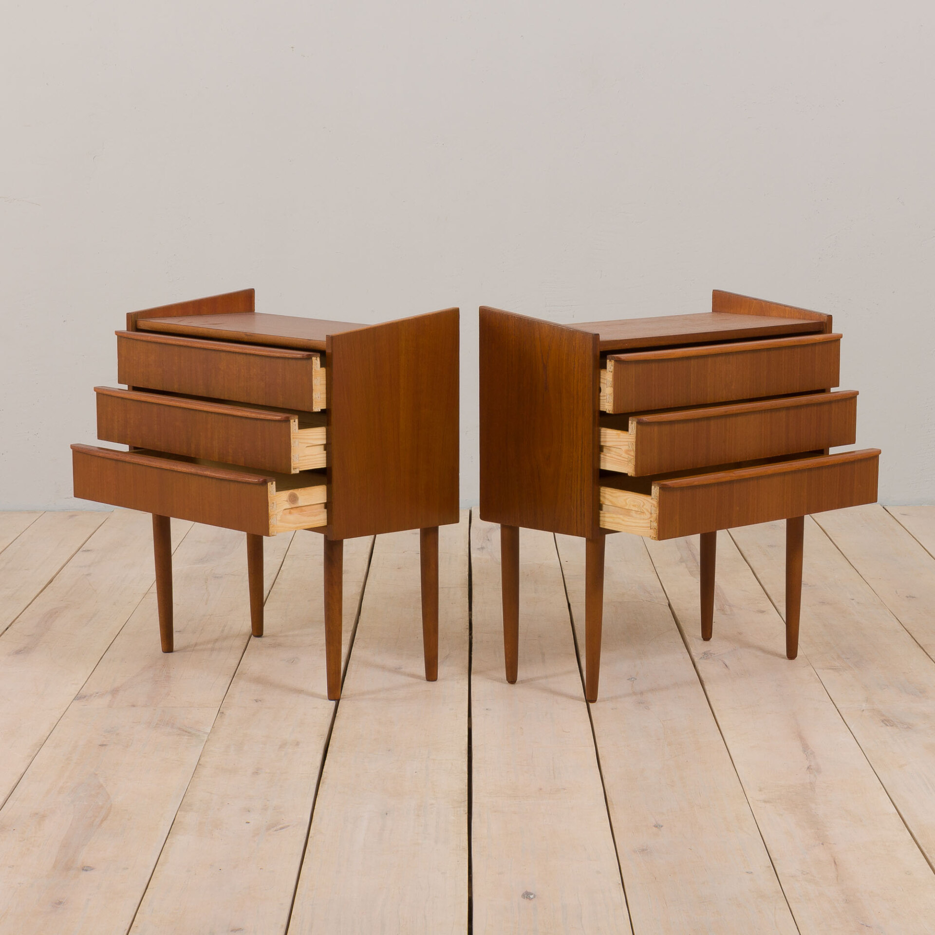 Pair of Danish mid century modern teak nightstands with three drawers, 1960s