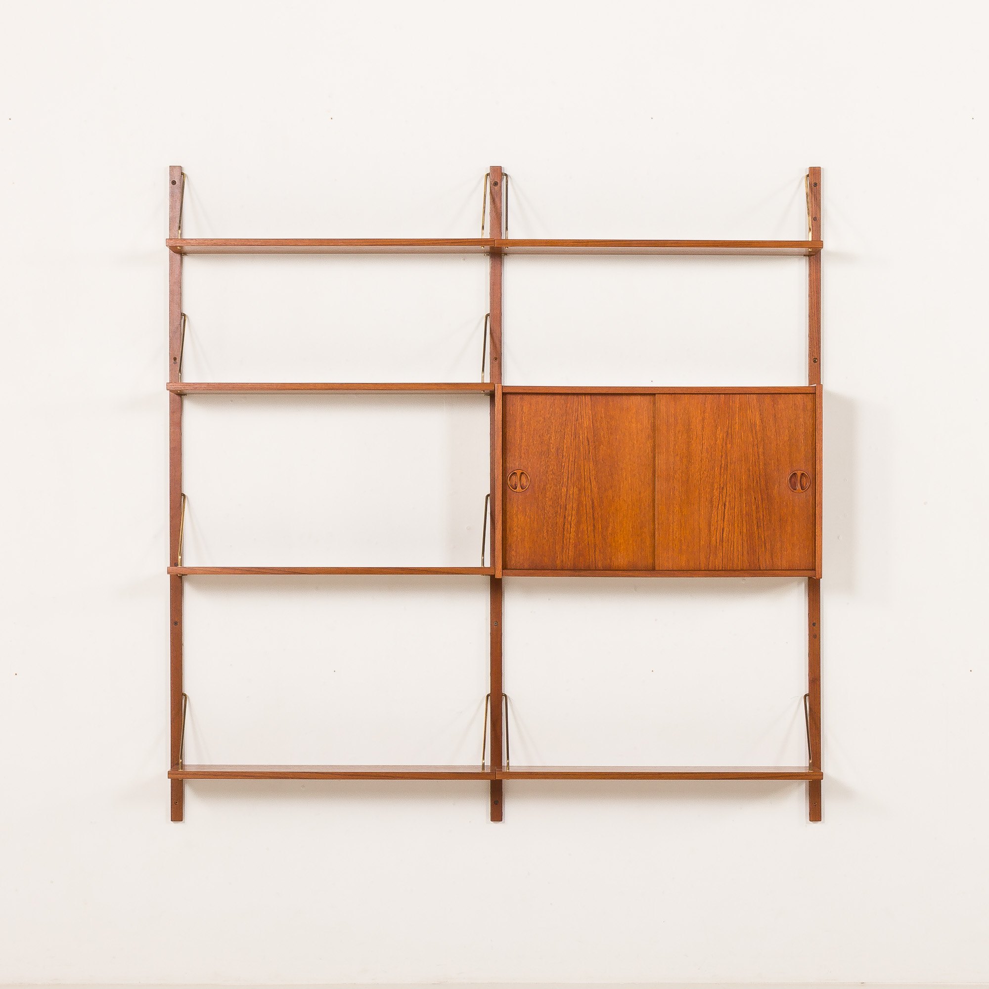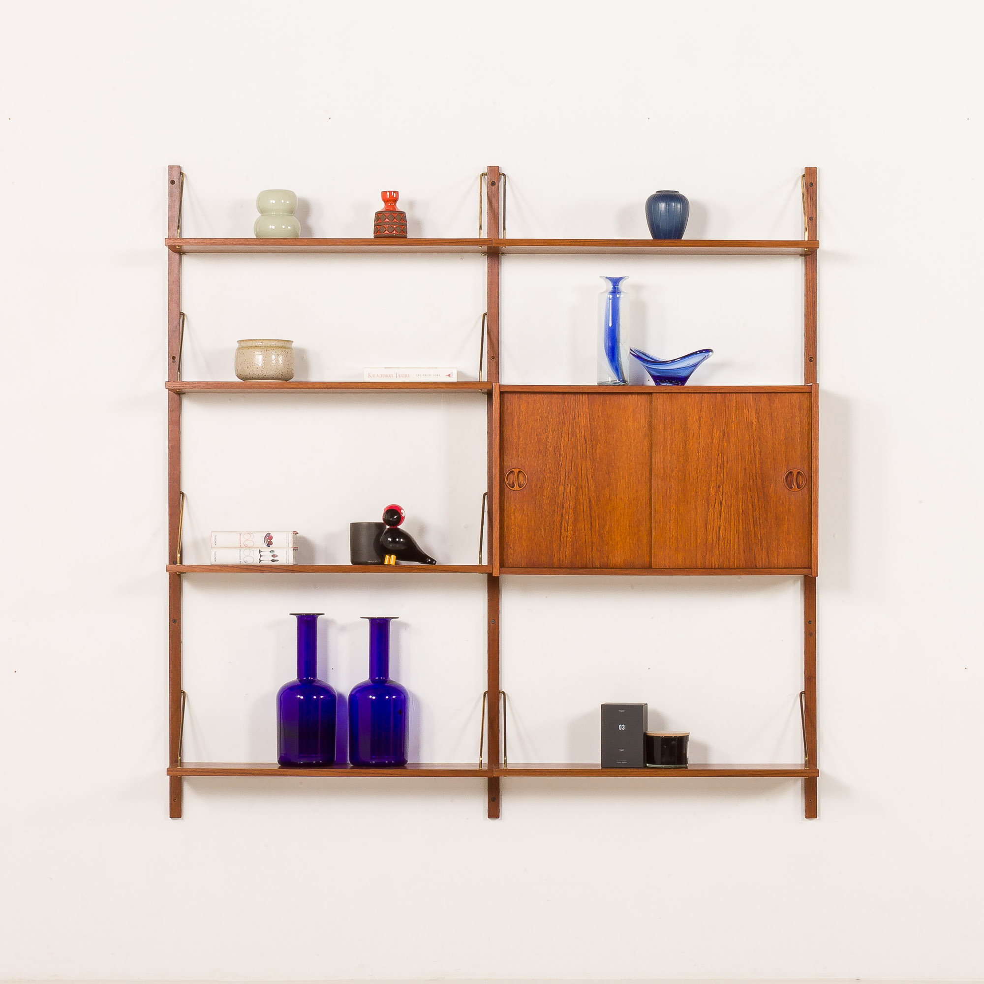 Duński regał ścienny mid-century z drewna tekowego w stylu Cadoviusa, lata 60.