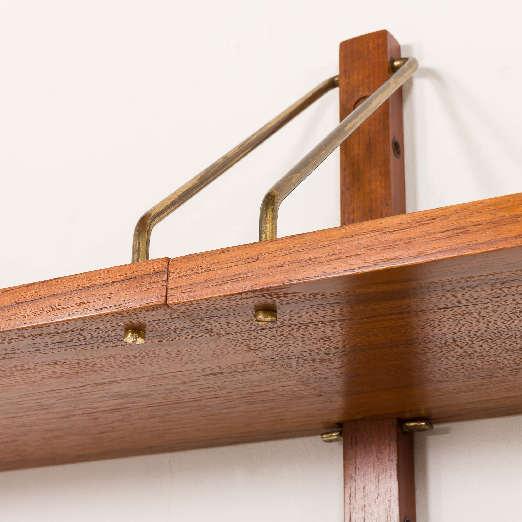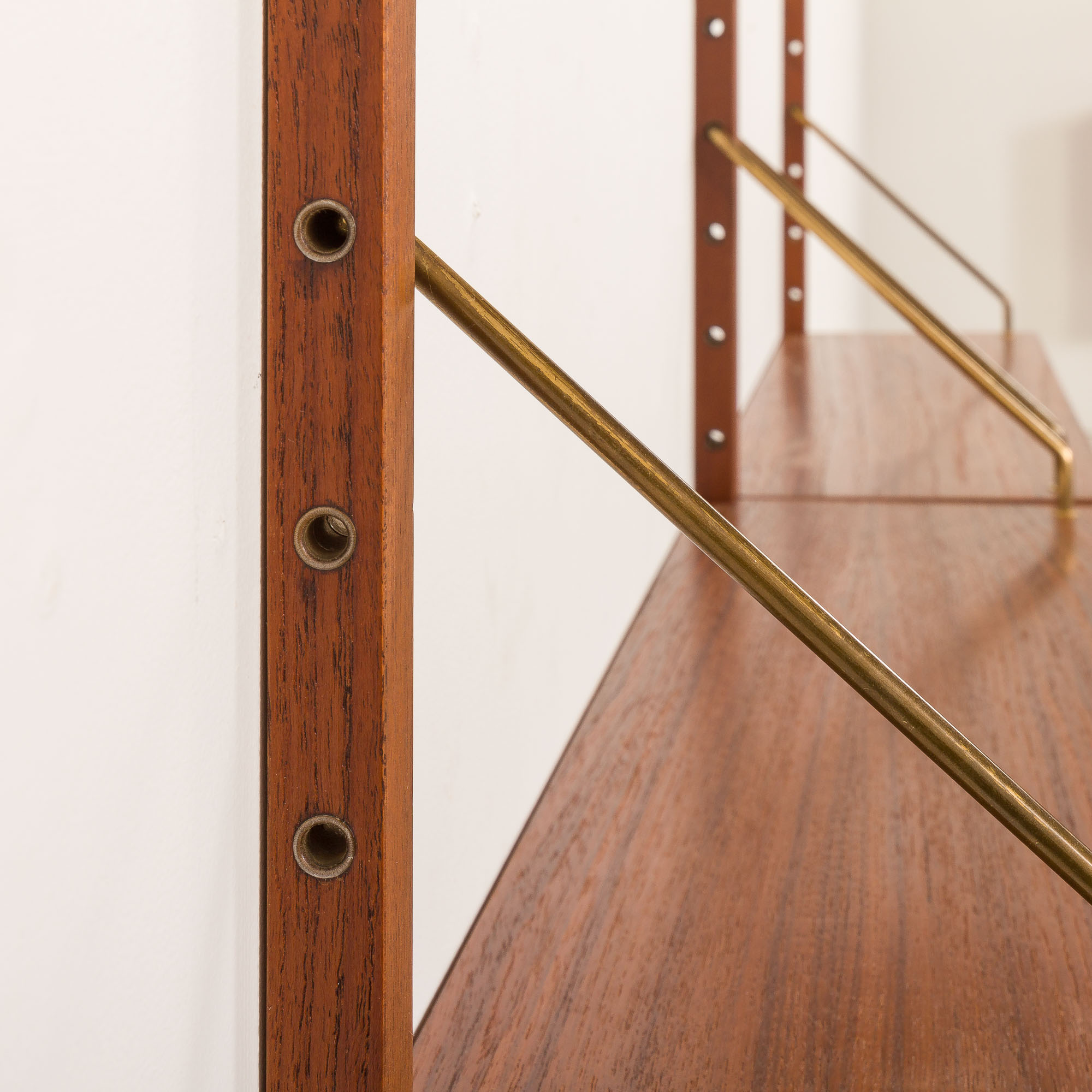 Duński regał ścienny vintage z drewna tekowego w stylu Poula Cadoviusa, lata 60.