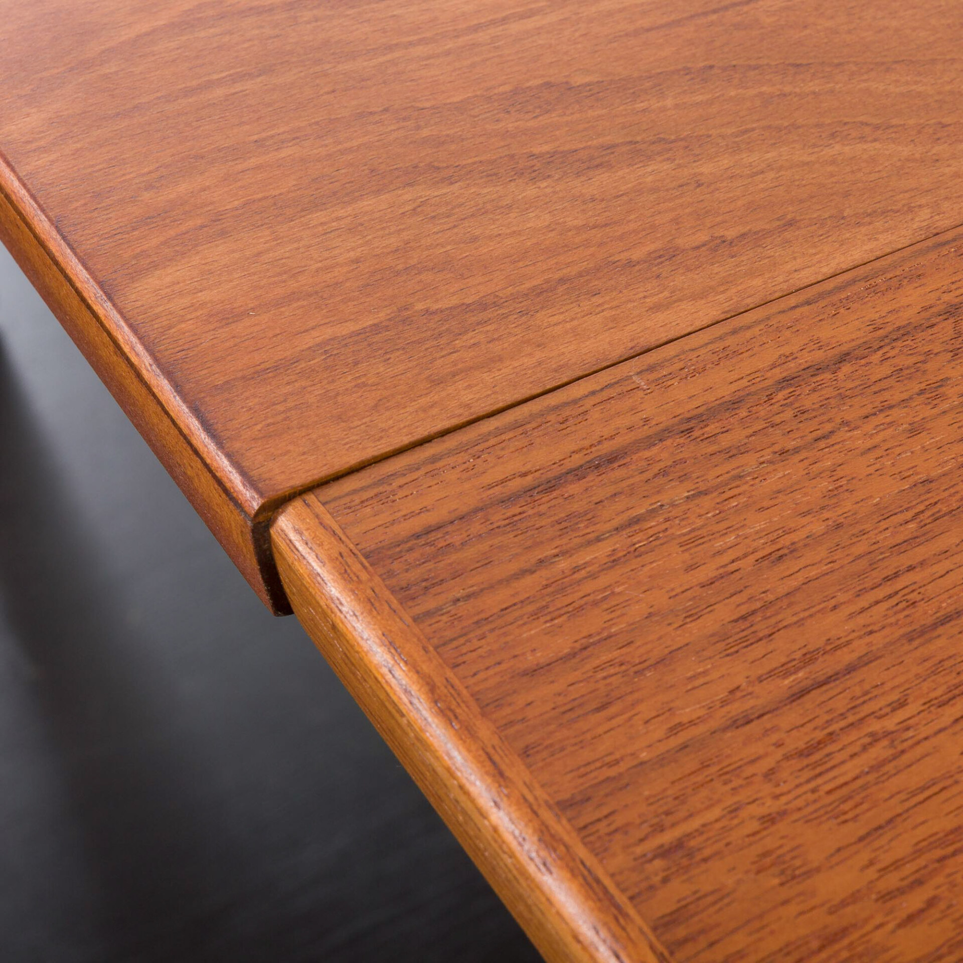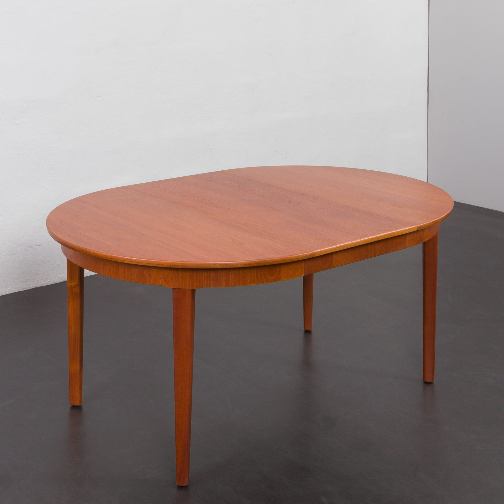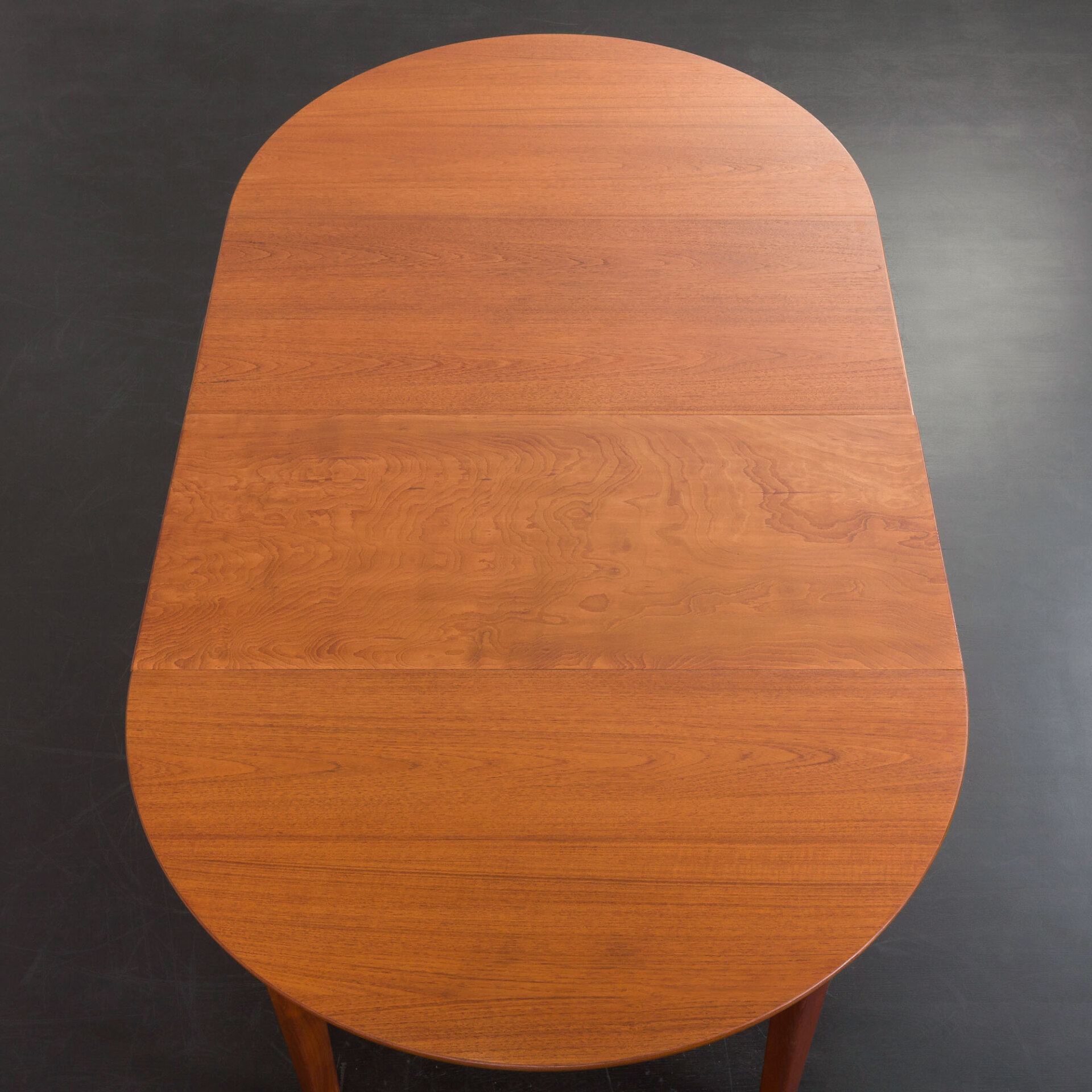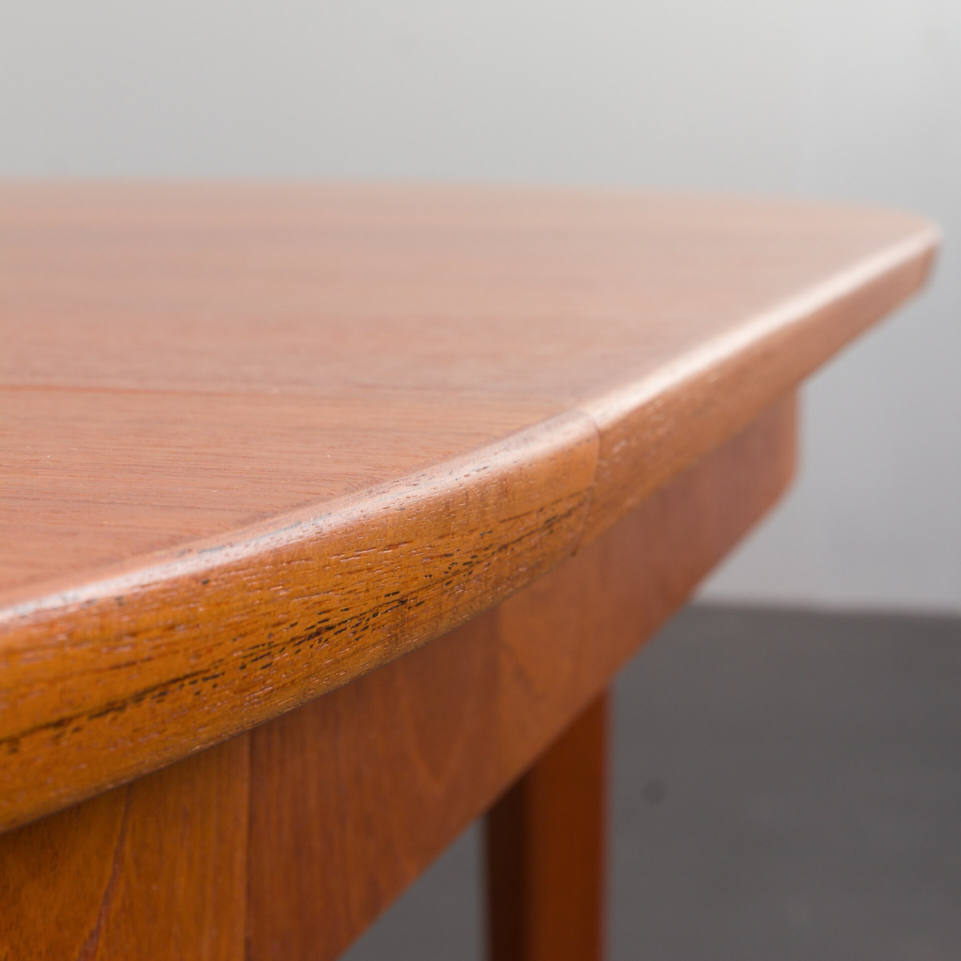 Ten okrągły, rozkładany stół to doskonały przykład klasycznego duńskiego designu z okresu mid-century w stylu Skovmand i Andersen wyprodukowany w latach 60. Posiada on dwa dodatkowe blaty - jeden z obramowaniem, który tworzy doskonałą linię i harmonijnie kontynuuje wzór drewna. Drugi blat z nieco innym usłojeniem, co dodaje mu charakteru jako "dodatkowej" opcji. W tamtym okresie, stoły w małych duńskich mieszkaniach rzadko były rozkładane do takiej długości, ale wiele firm oferowało jedną dodatkową wkładkę, często wykonaną z różnych oklein lub pomalowaną w innym kolorze.