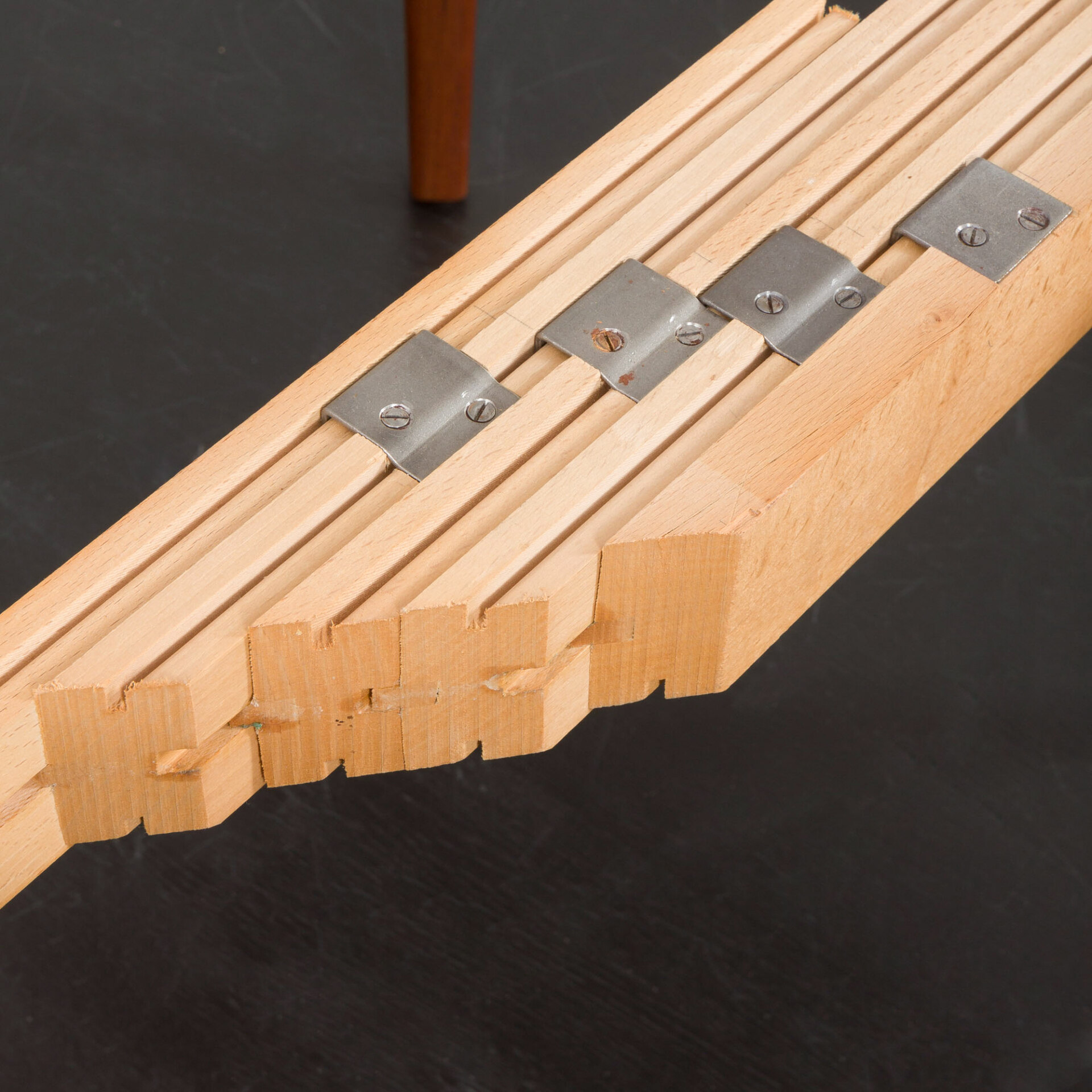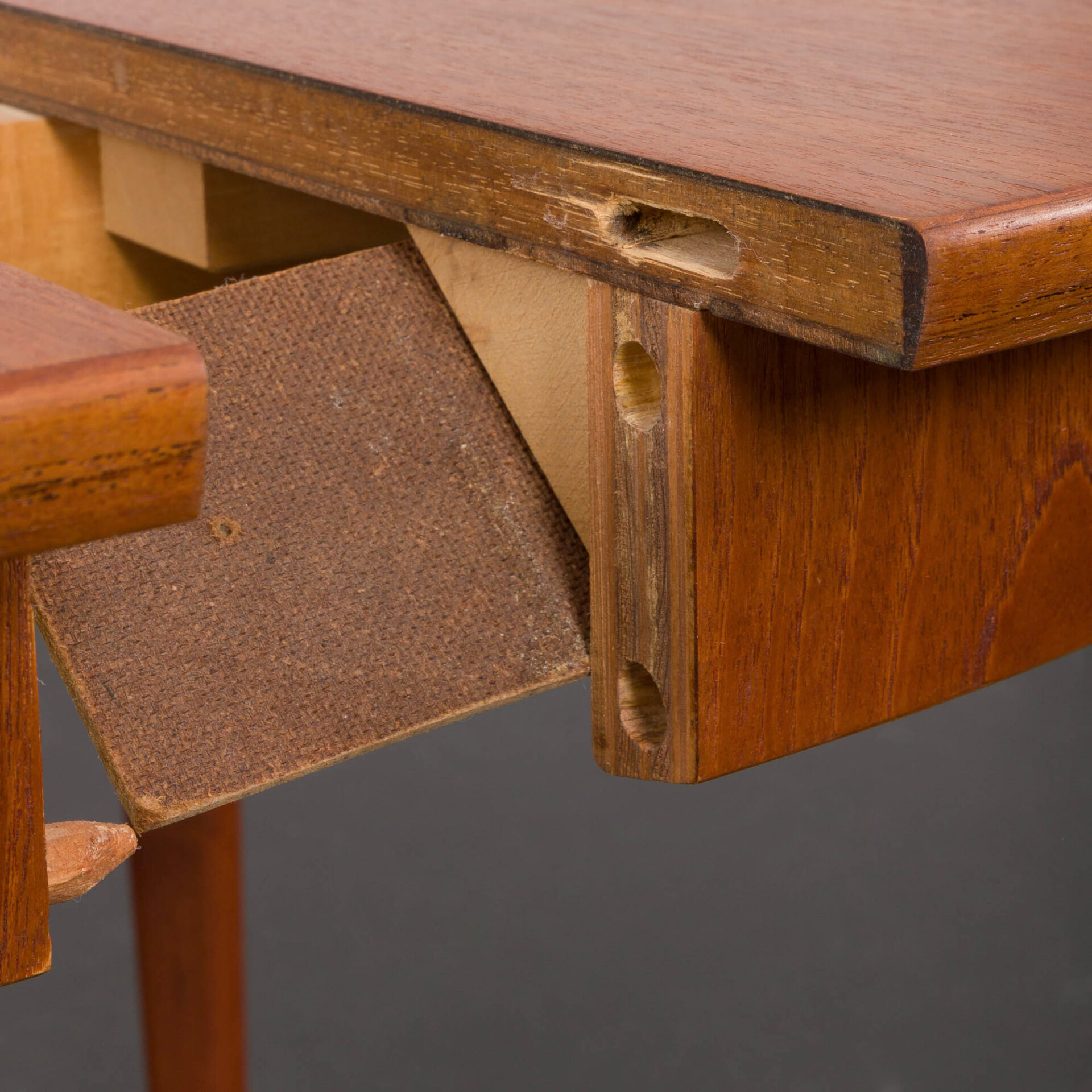 Stół został dokładnie sprawdzony przez nasz zespół, drewniane prowadnice działają płynnie. Powierzchnia została starannie wyczyszczona i pokryta nowym lakierem. Staramy się przywrócić meblom jak najlepszy wygląd, wciąż biorąc pod uwagę, że mają 60 lat.