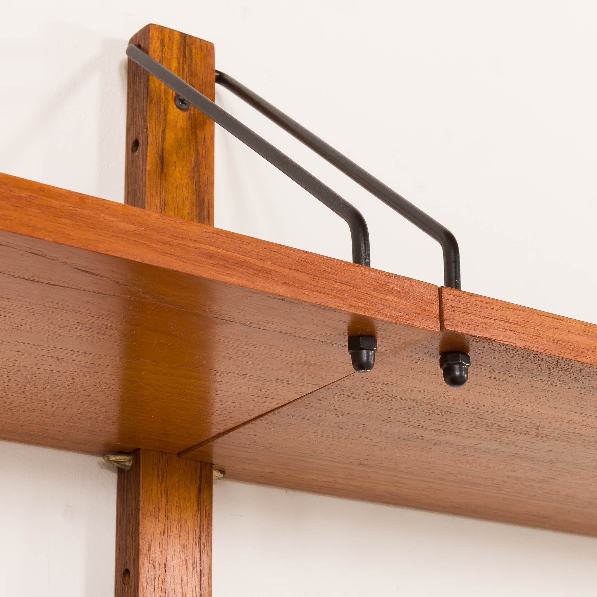 Duński regał ścienny vintage z drewna tekowego w stylu Poula Cadoviusa, lata 60.