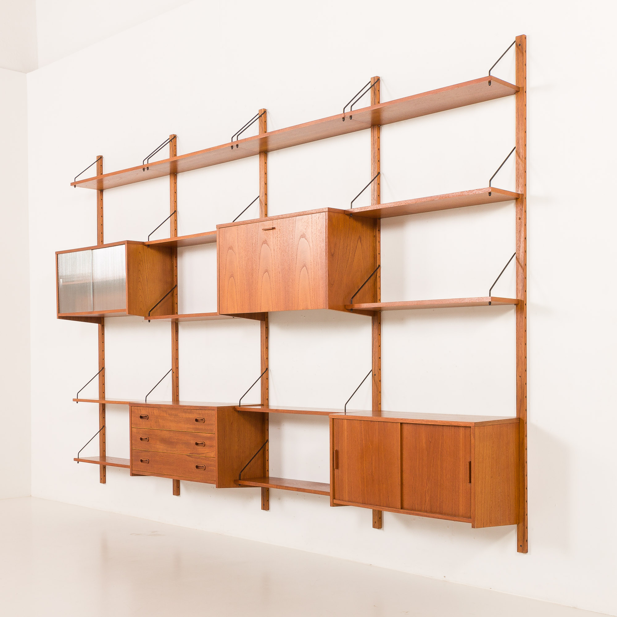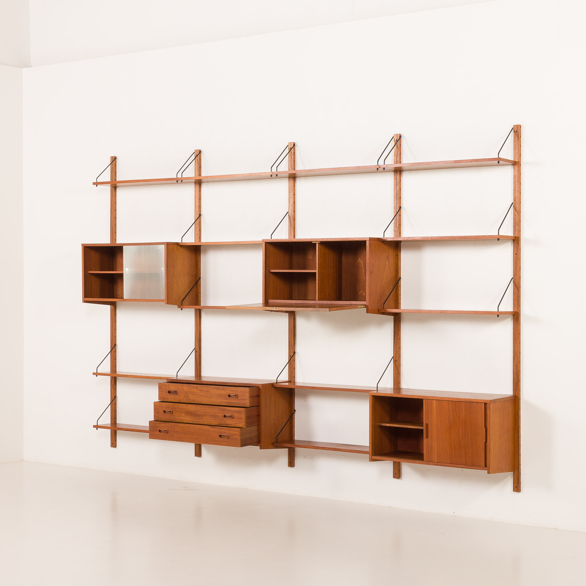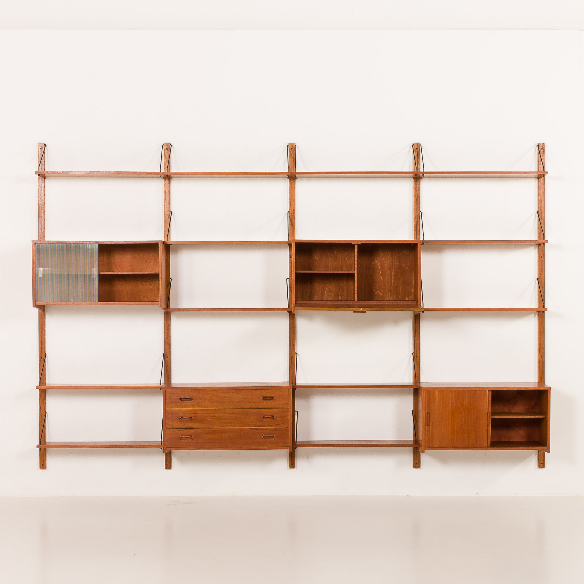 Duński tekowy zestaw ścienny projektu Kaia Kristiansena, lata 60.