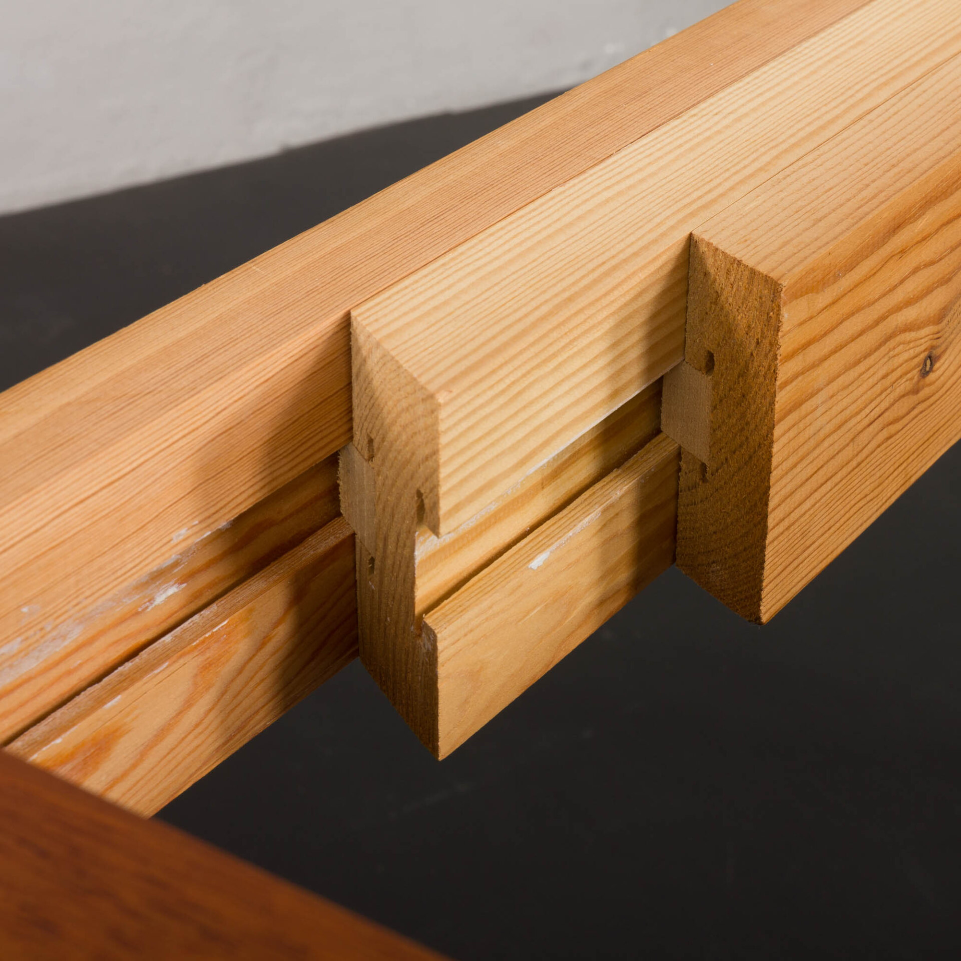 Stół został poddany renowacji i jest w doskonałym stanie. Stare wykończenie zostało usunięte, a w jego miejsce nałożono kilka warstw duńskiego oleju. Dzięki temu blat stołu ma piękny naturalny satynowy połysk, a efektowne usłojenie i detale stolarskie są wyeksponowane.