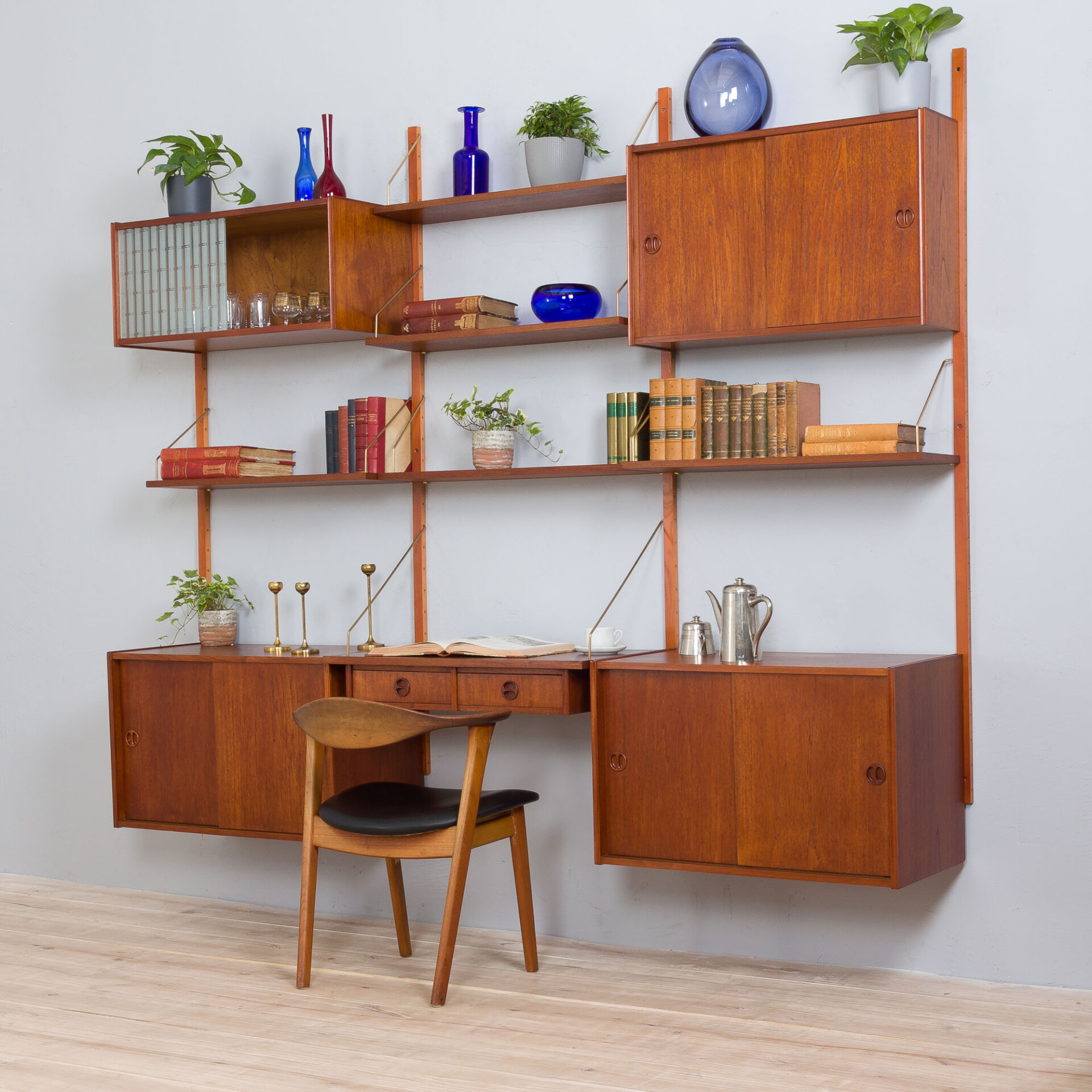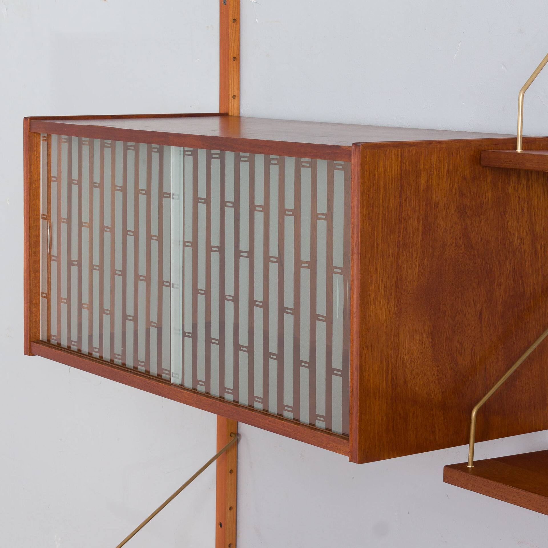 Trzy-segmentowy Duński system regałów modułowych z drewna tekowego w stylu Poula Cadoviusa wykonany w latach 60-tych.
