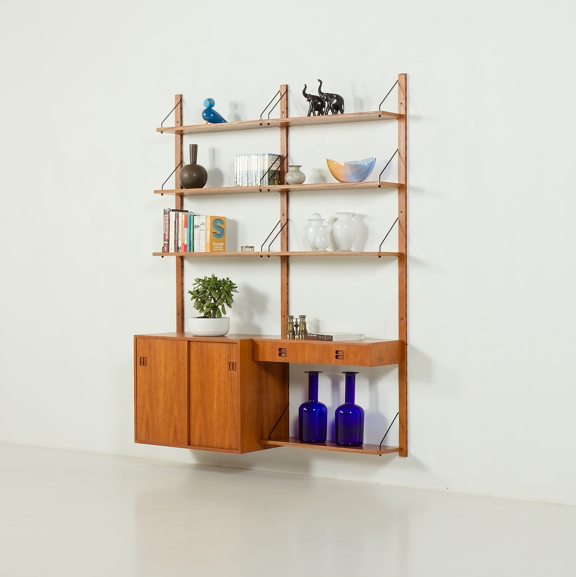 Skandynawski tekowy regał wiszący z sekretarzykiem, w stylu Poula Cadoviusa, lata 70.